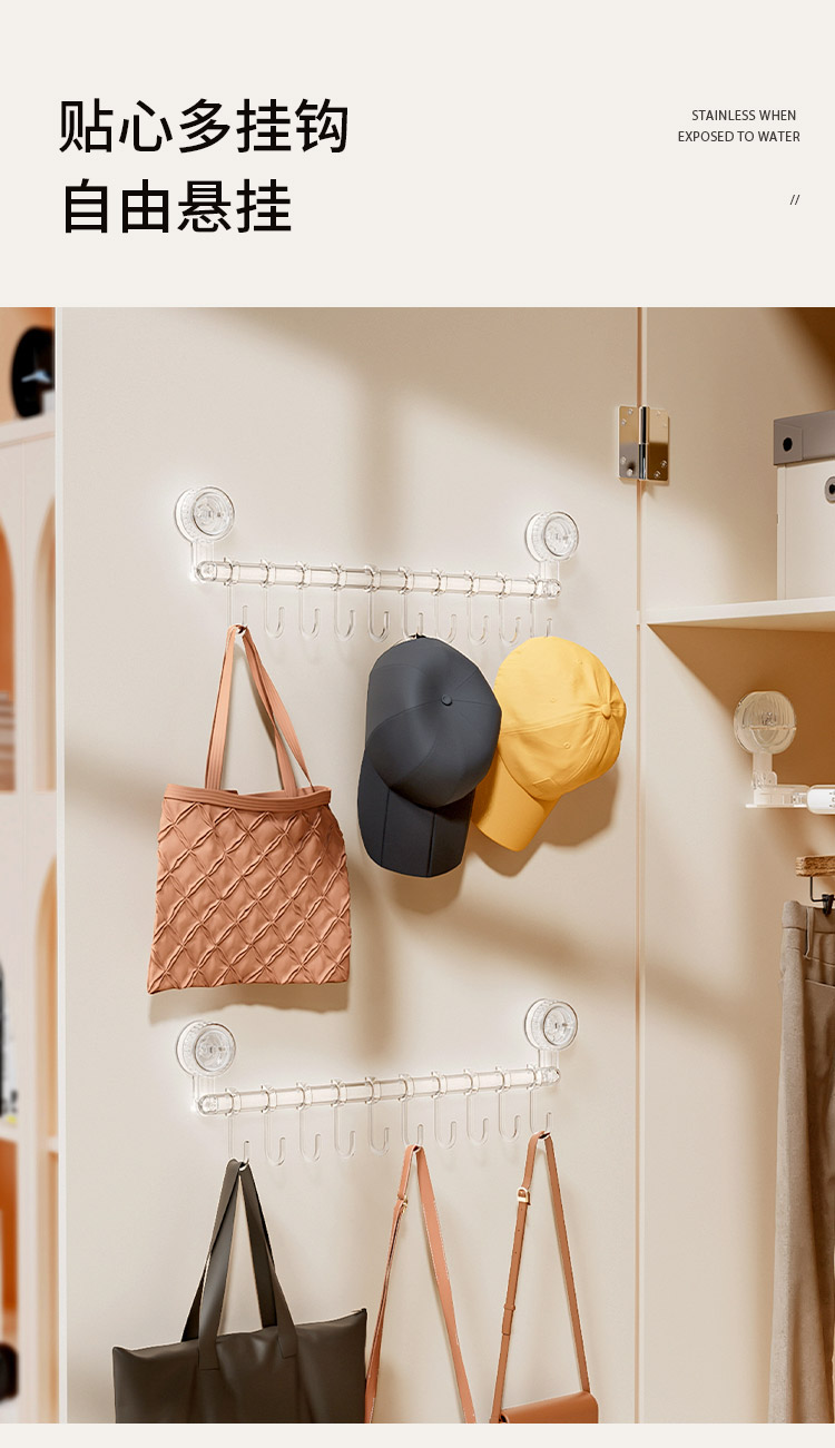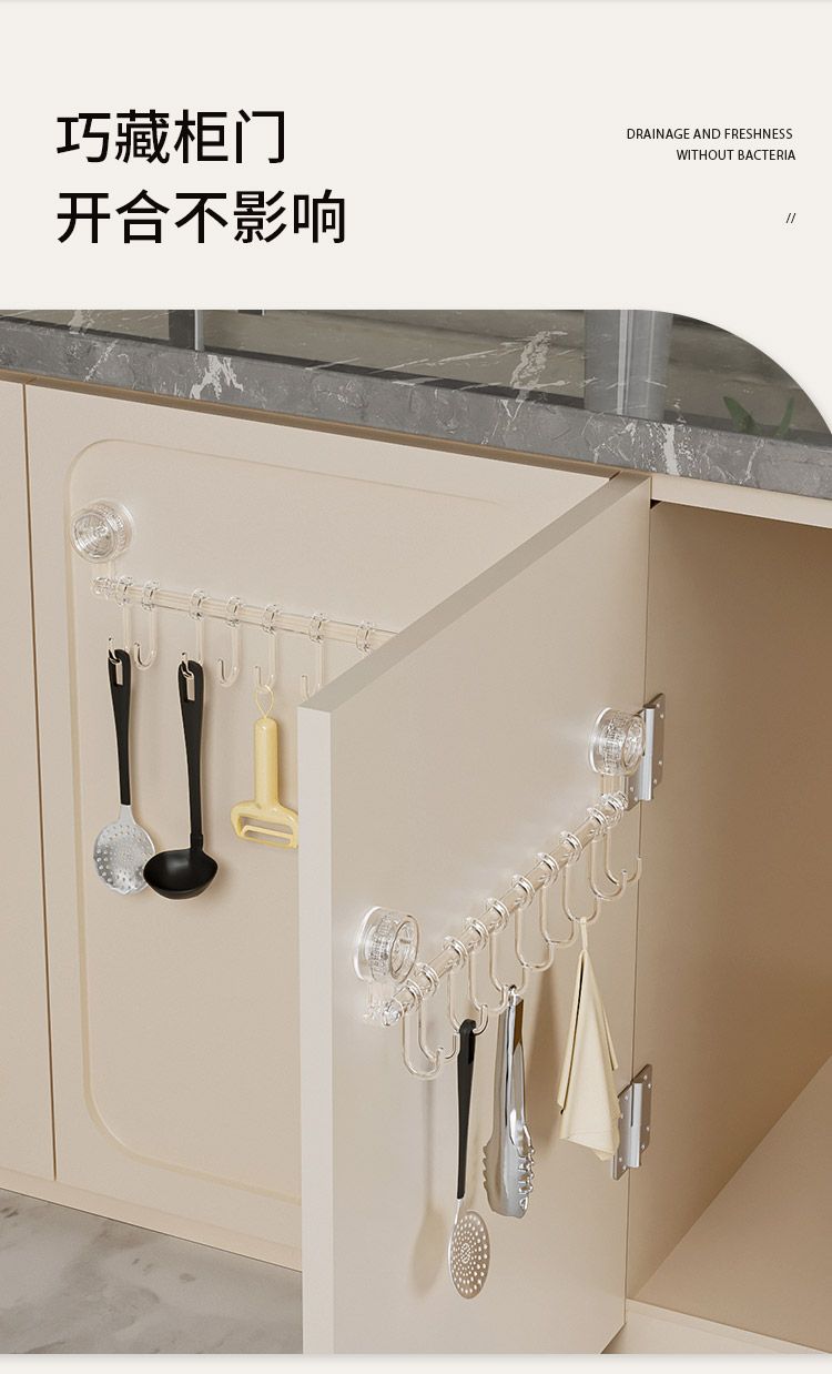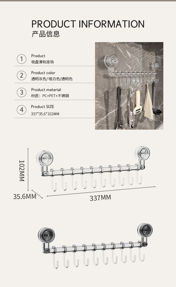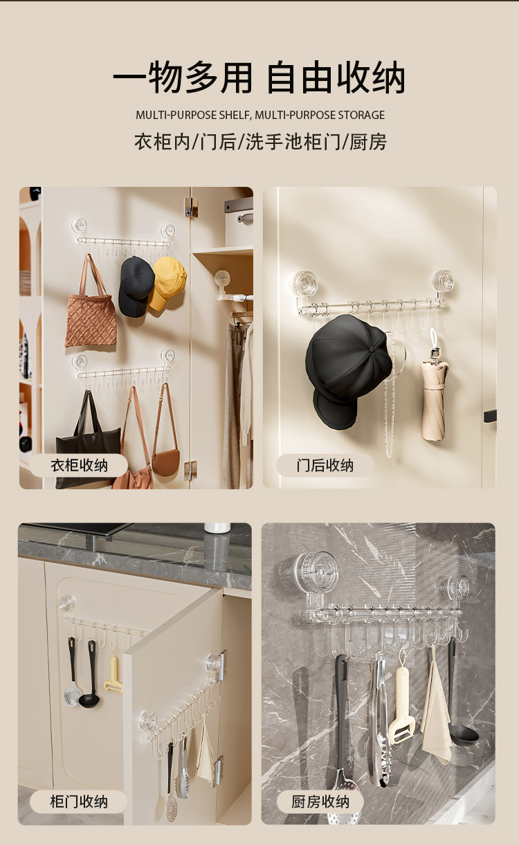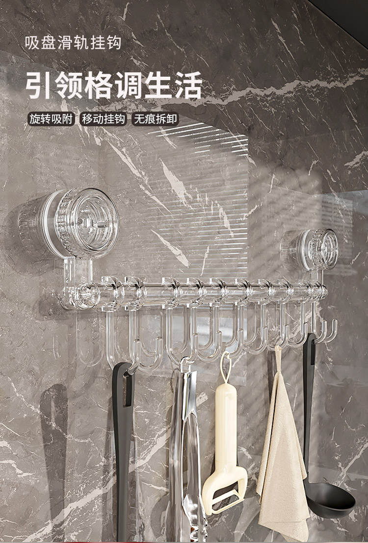 吸盘挂钩厨房免打孔,承重强力轨道挂钩,单排挂架,门后厨具收纳架