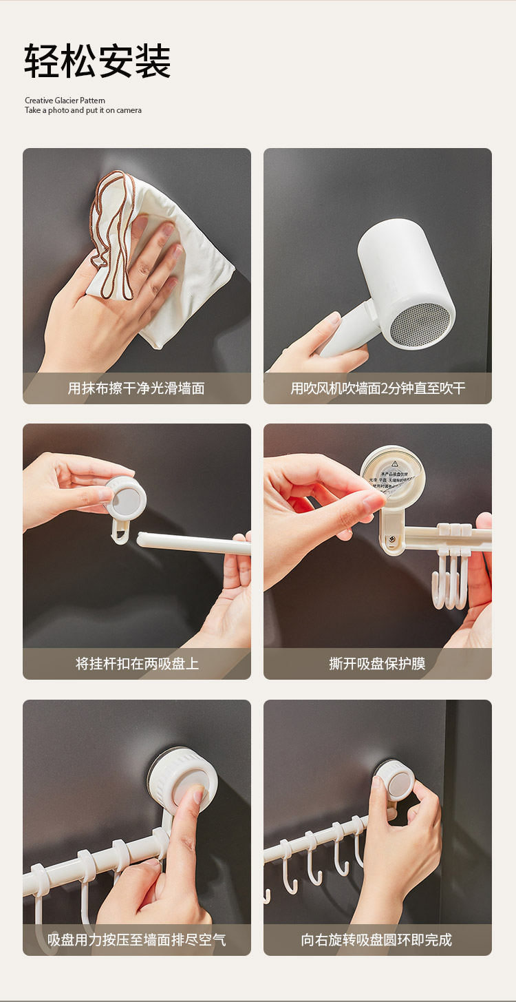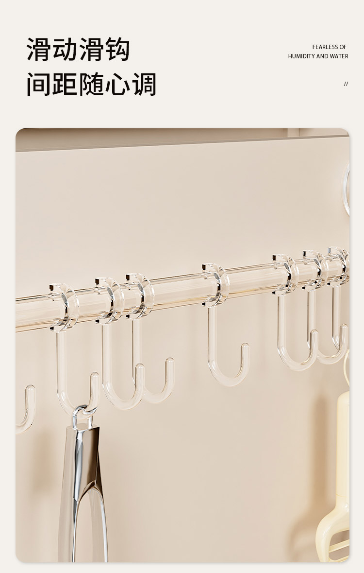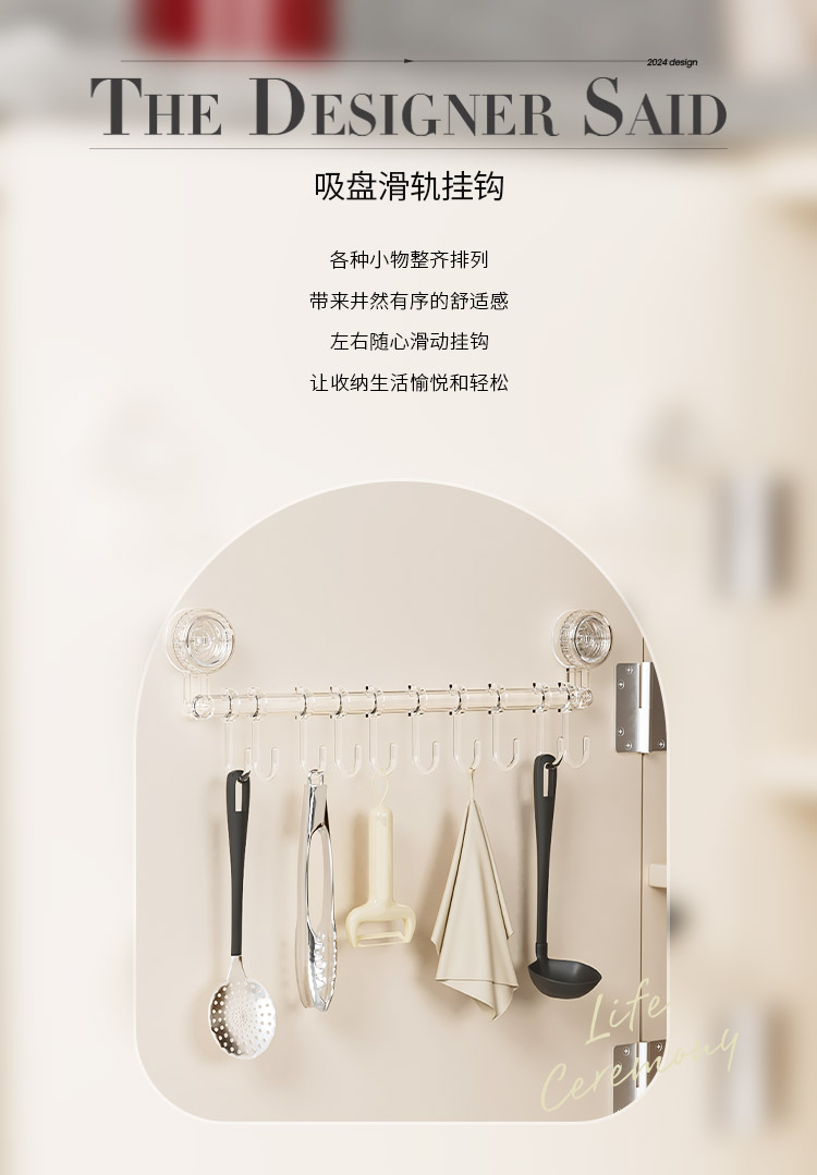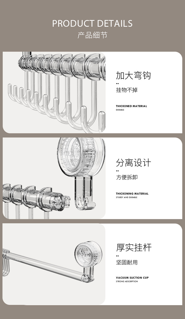 吸盘挂钩厨房免打孔,承重强力轨道挂钩,单排挂架,门后厨具收纳架