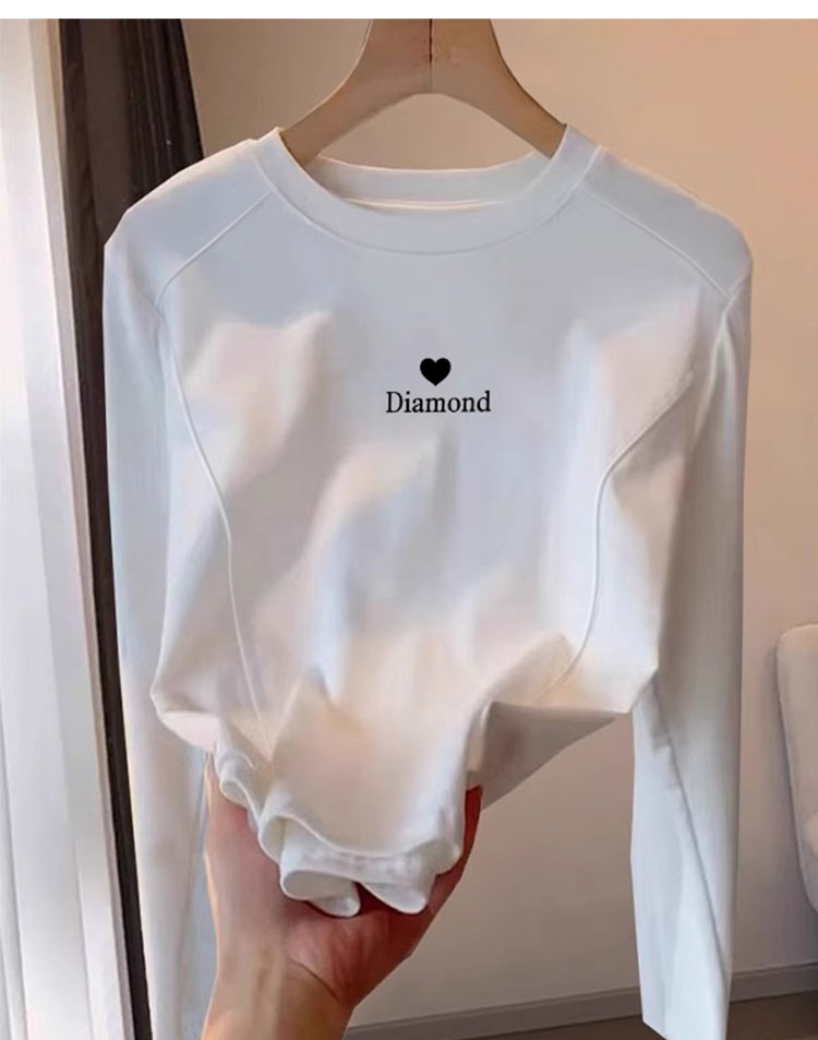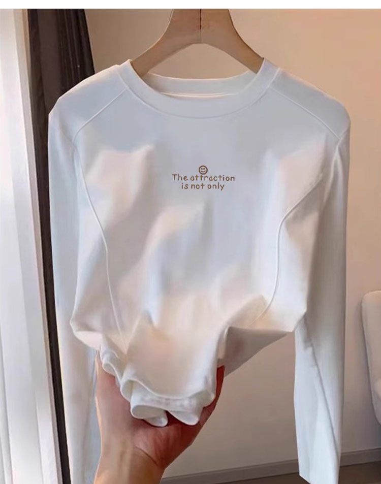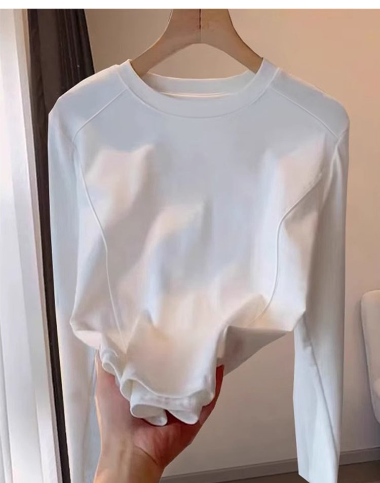 女士纯棉长袖圆领打底衫,春秋冬季百搭内搭,时尚西式风格