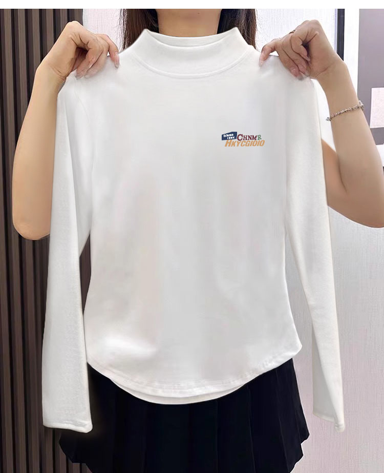 女士半高领Dralon长袖打底衫 女式秋冬季时尚弧形下摆内搭抓绒保暖T恤