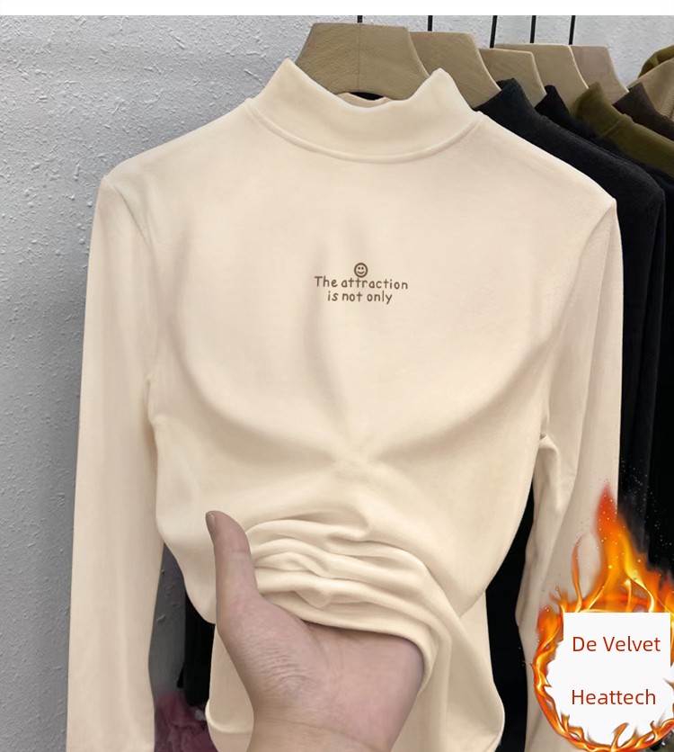 女士半高领修身Dralon打底衫 秋冬款加绒保暖科技内搭西式中领长袖T恤