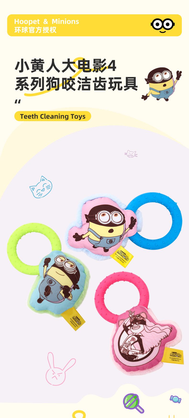 小黄伙伴联名大电影4系列狗咬牙齿清洁玩耍博美萨摩耶磨牙玩具