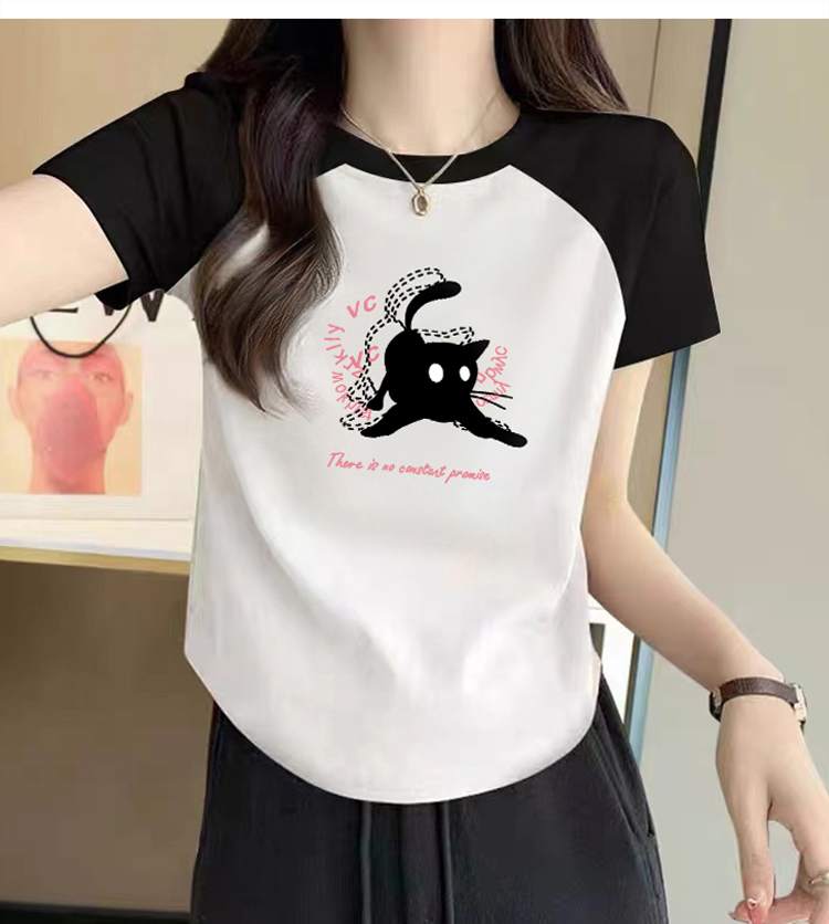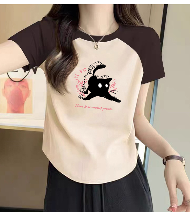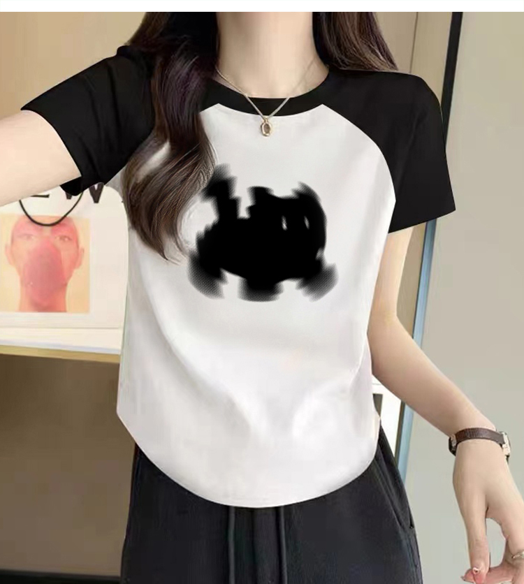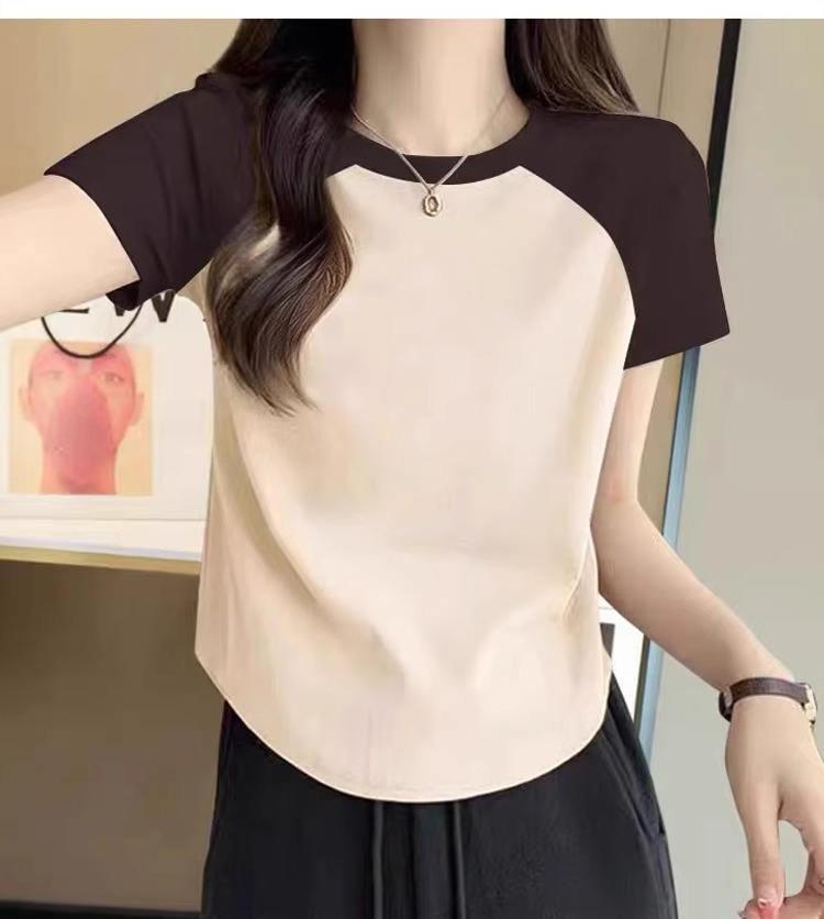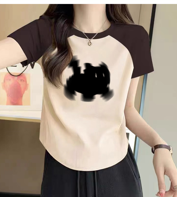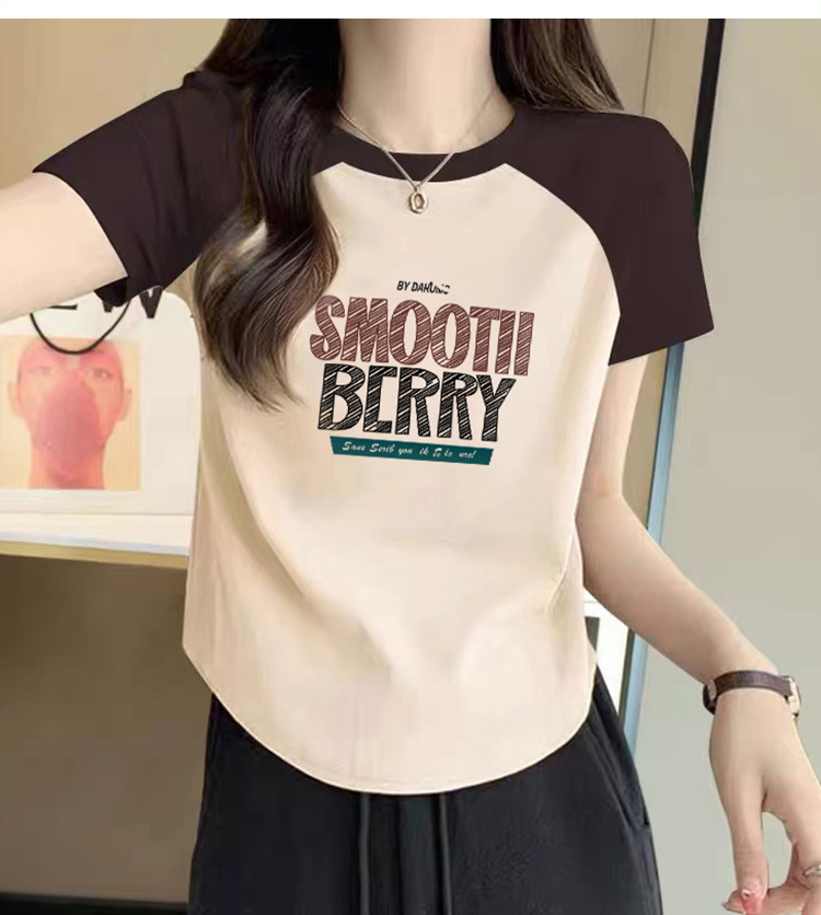 American Retro Letters Contrast Color Shoulder Short Sleeve T-Shirt Women's Summer 2025 New Arrival Niche Design Raglan Tops