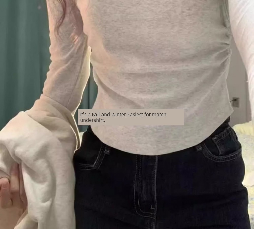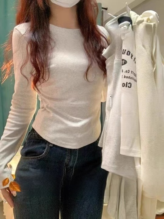 American Style Chic Sexy Shoulder Tops Women's Early Autumn Winter New Arrival Gray Long Sleeves Inner Bottoming Shirt Silm T-shirt