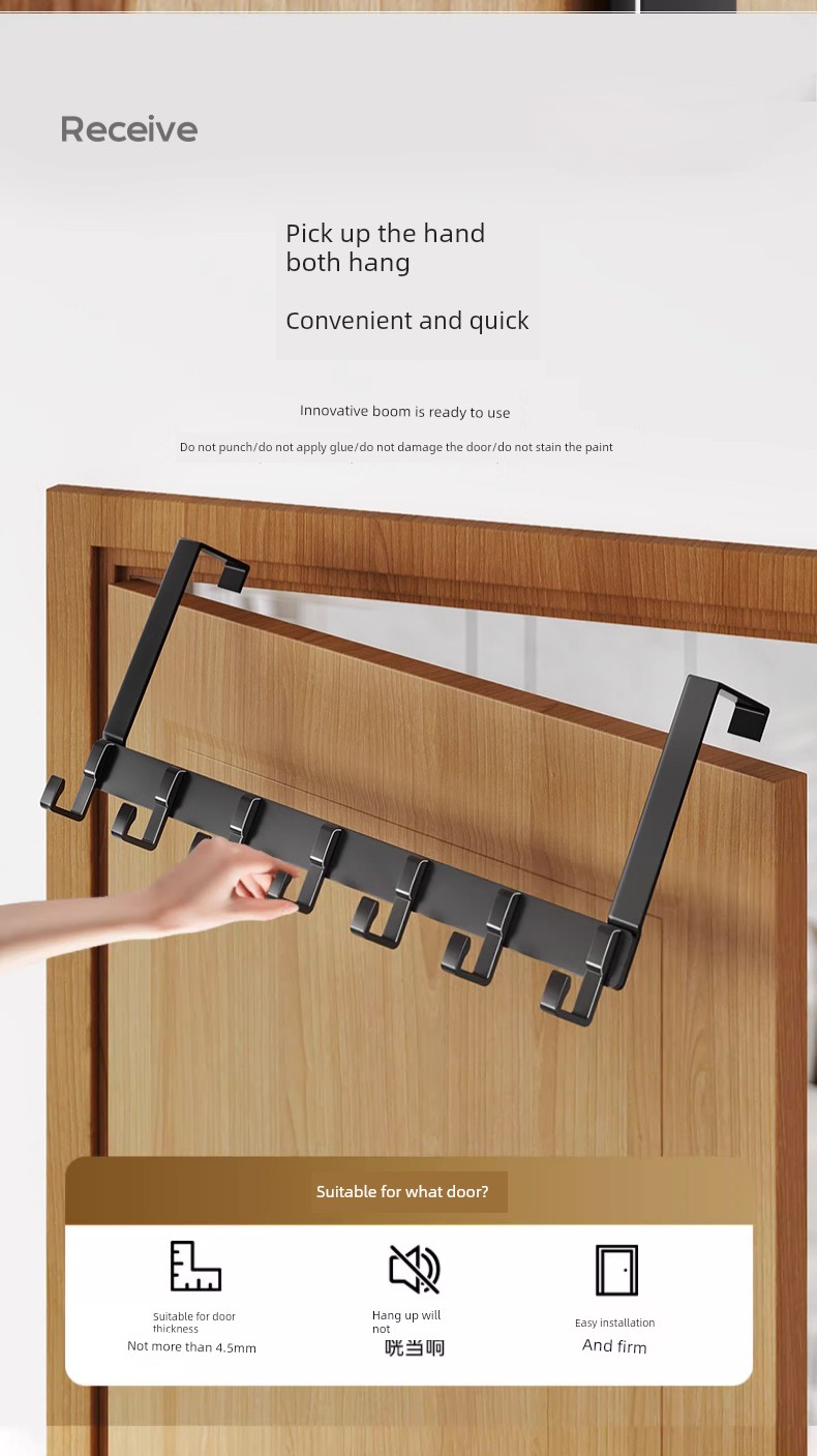 Behind the Door Hook No Punch Hanger Storage Clothes Storage Rack Entry Door Upper Rack Wall Hanger Bedroom