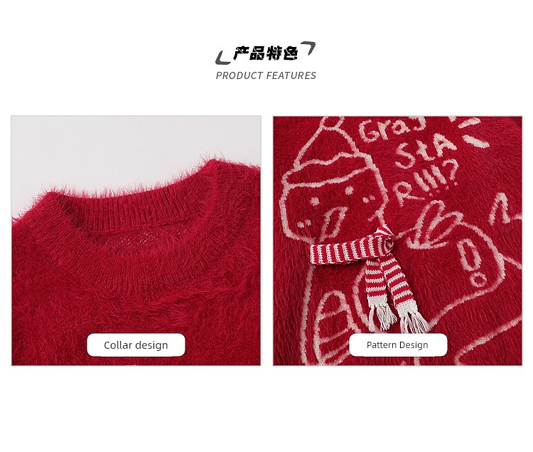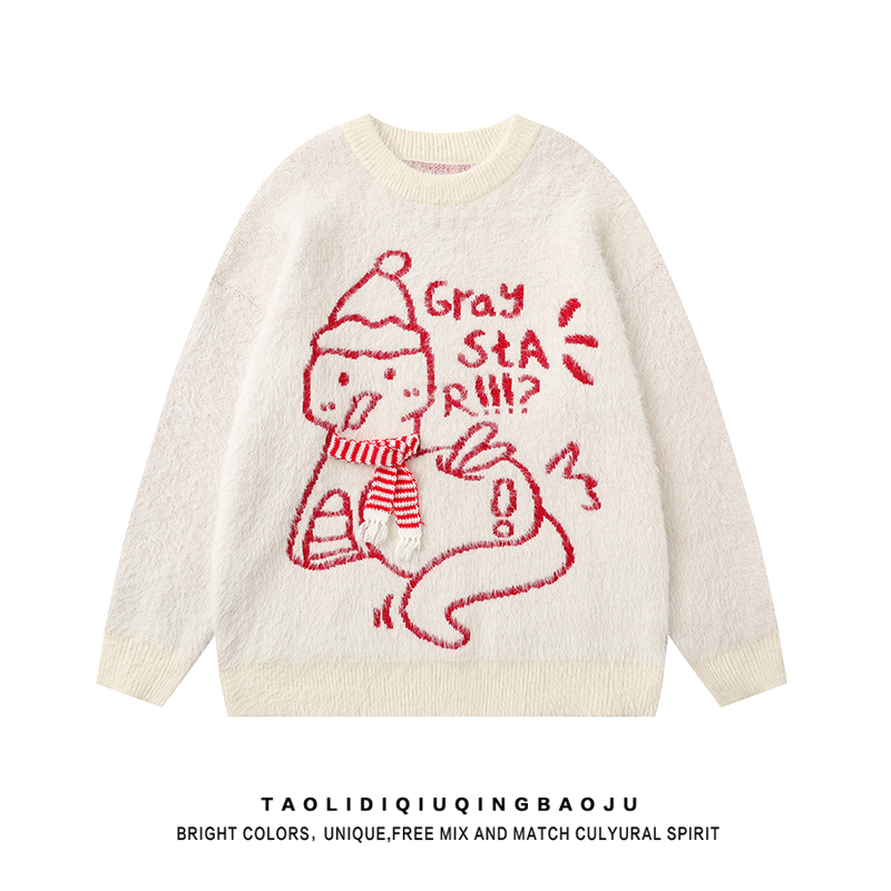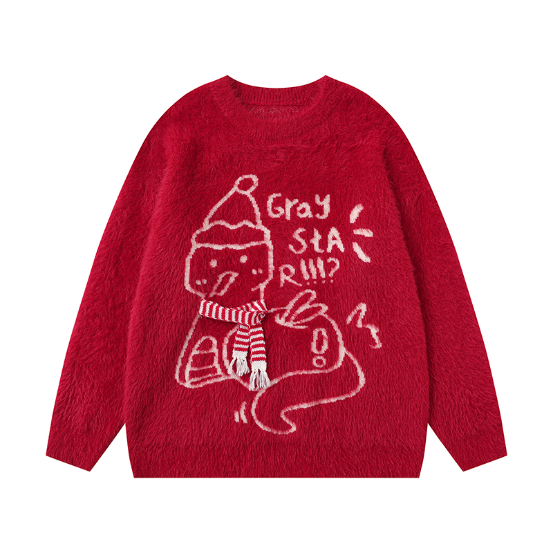 Christmas Snowman Atmosphere Red Sweater Female 2025 New Arrival Retro Loose Slim Looking Comfortable Knitwear Tops