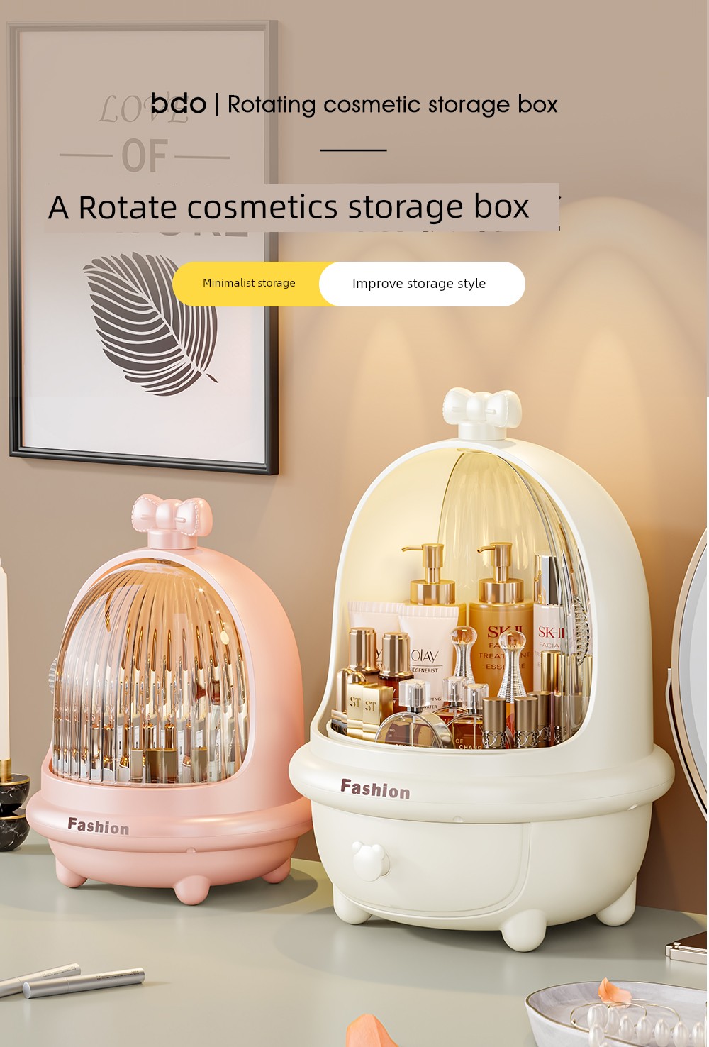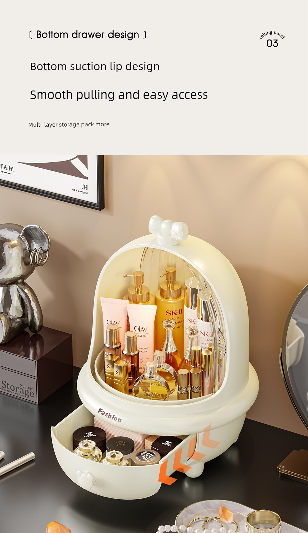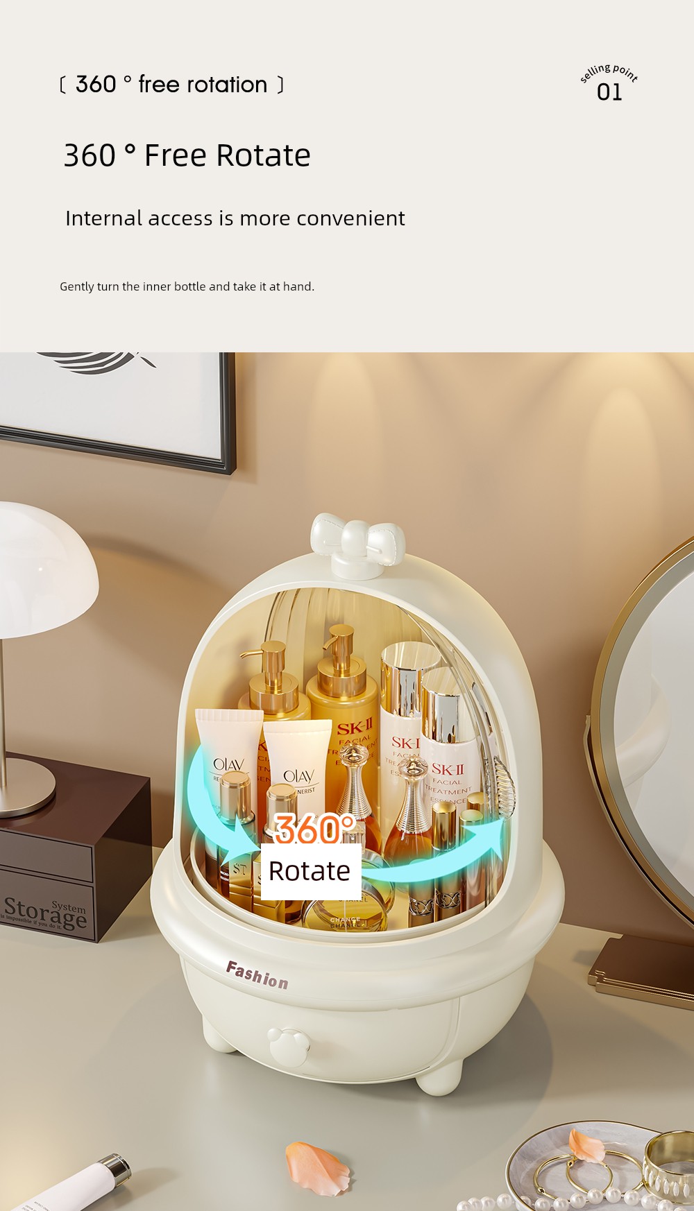 Cosmetics Storage Box Desktop High-Grade Dressing Table Storage Rack Dustproof Large Capacity Skin Care Finishing Box with Lid
