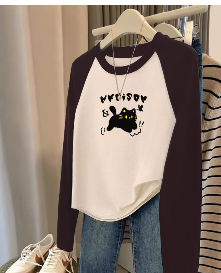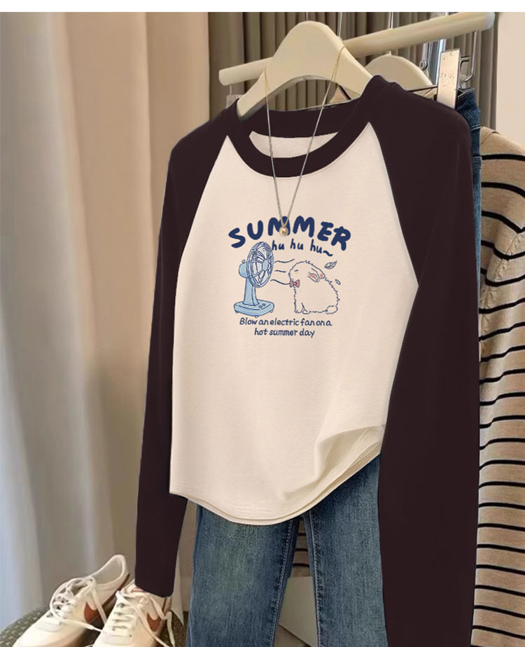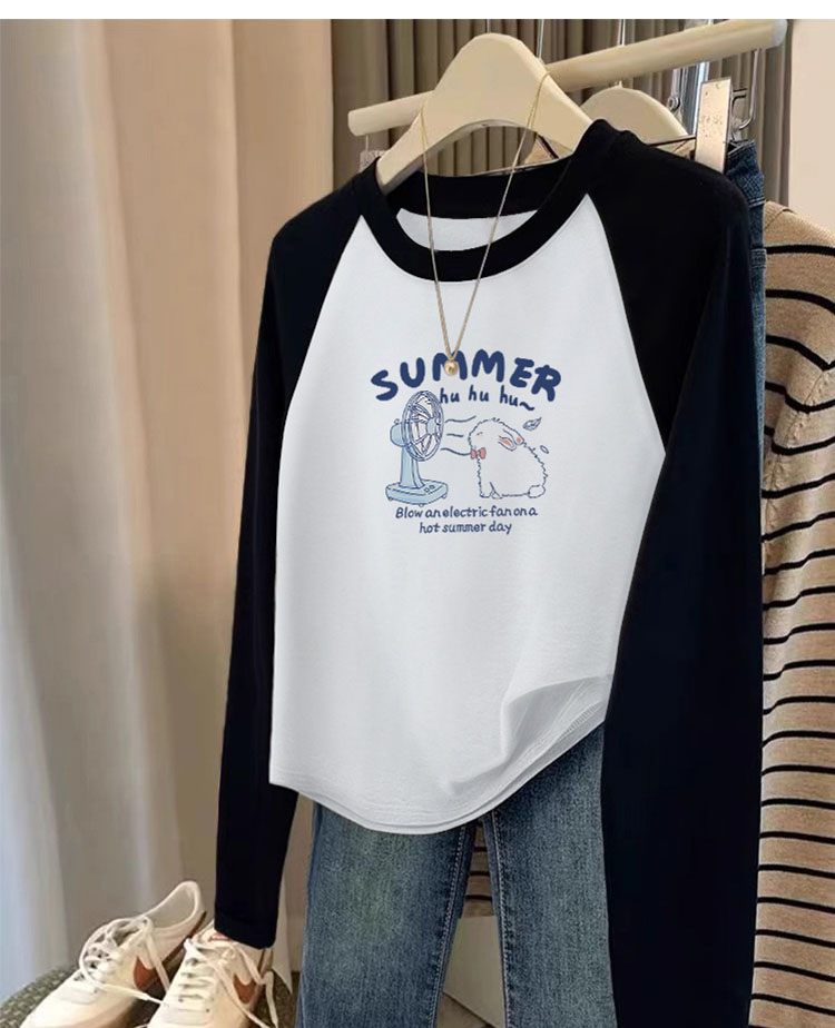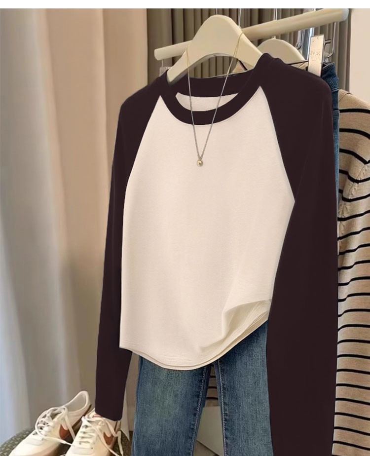Cotton Base Shirt Women's Clothing 2025 New Arrival Irregular Slim-Fit Slimming Long-Sleeved T-shirt Raglan Color Contrast Short Tops