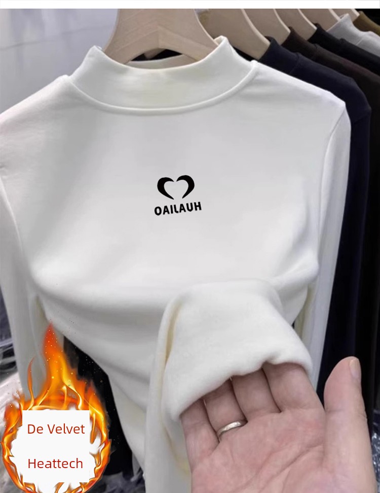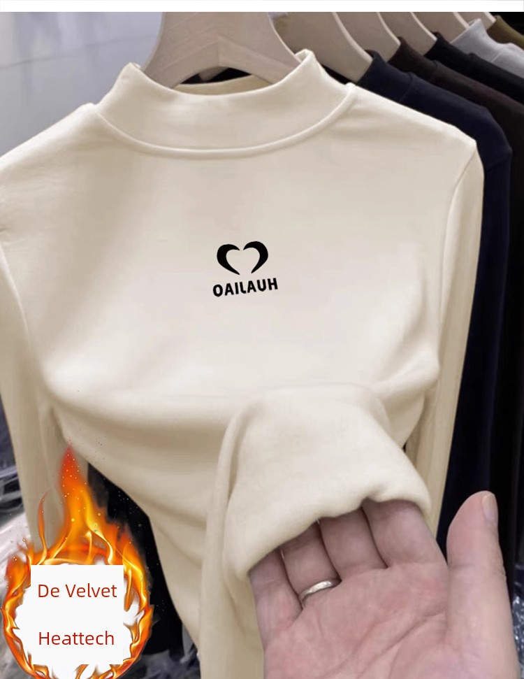 Double-Sided Dralon Half Turtleneck Bottoming Shirt Women's Clothing Fall and Winter Inner Wear Heattech Tops Plus Size Belly Covering Outwear Long Sleeves T-shirt