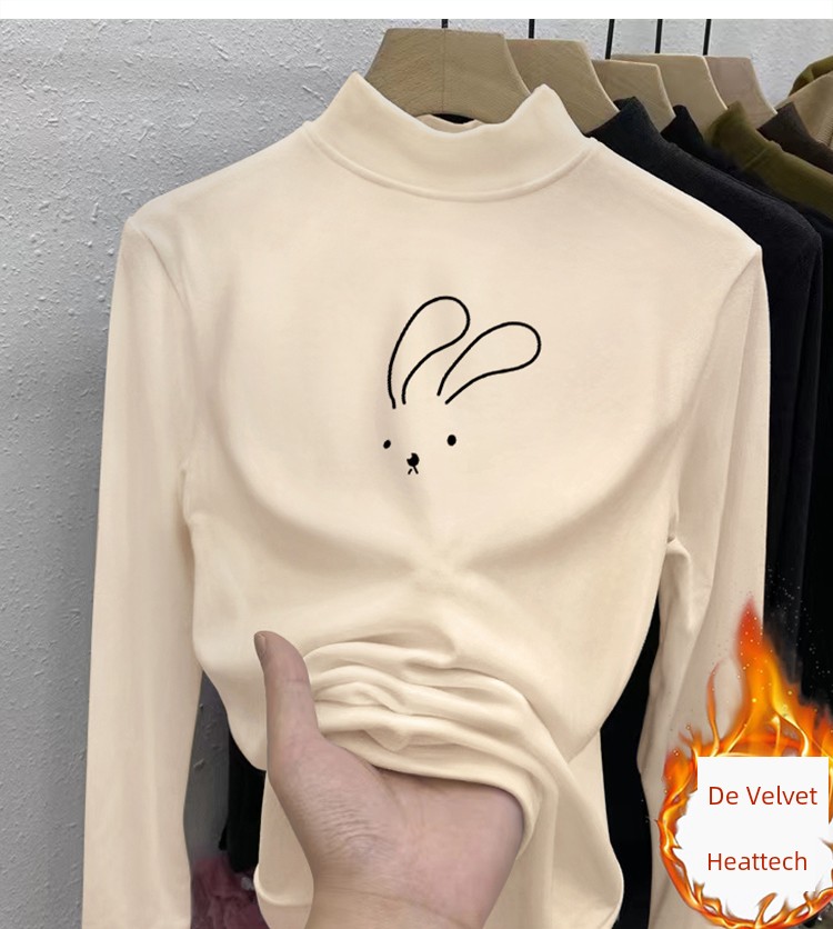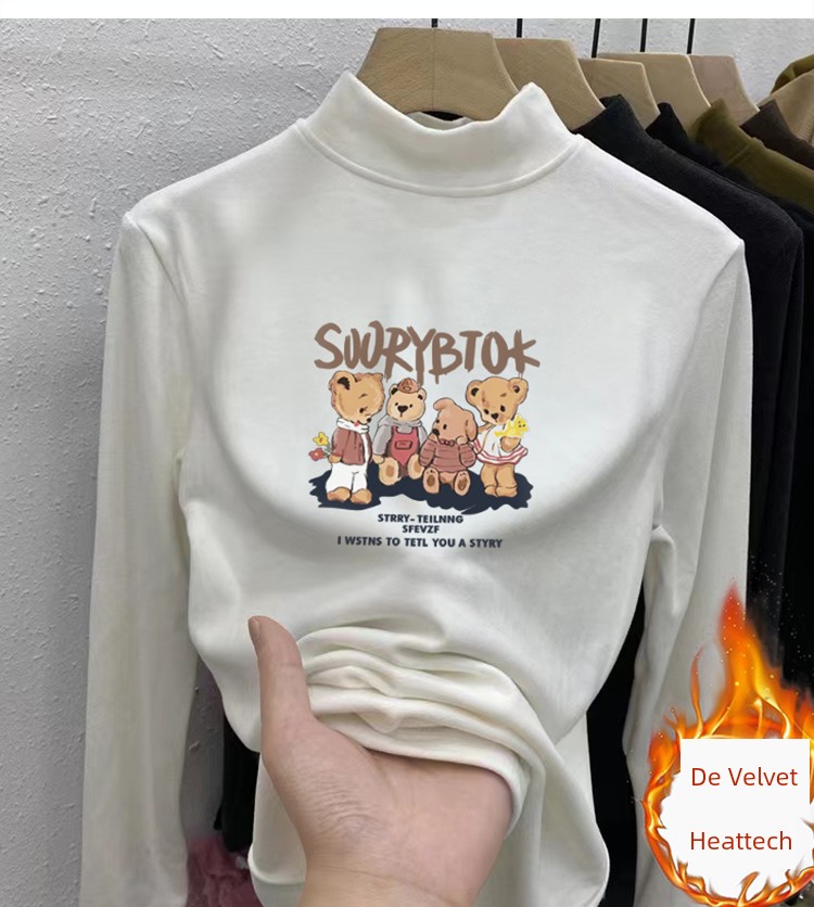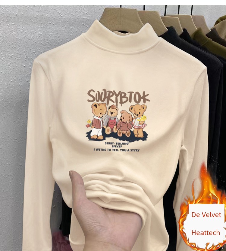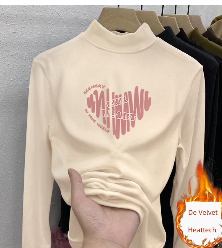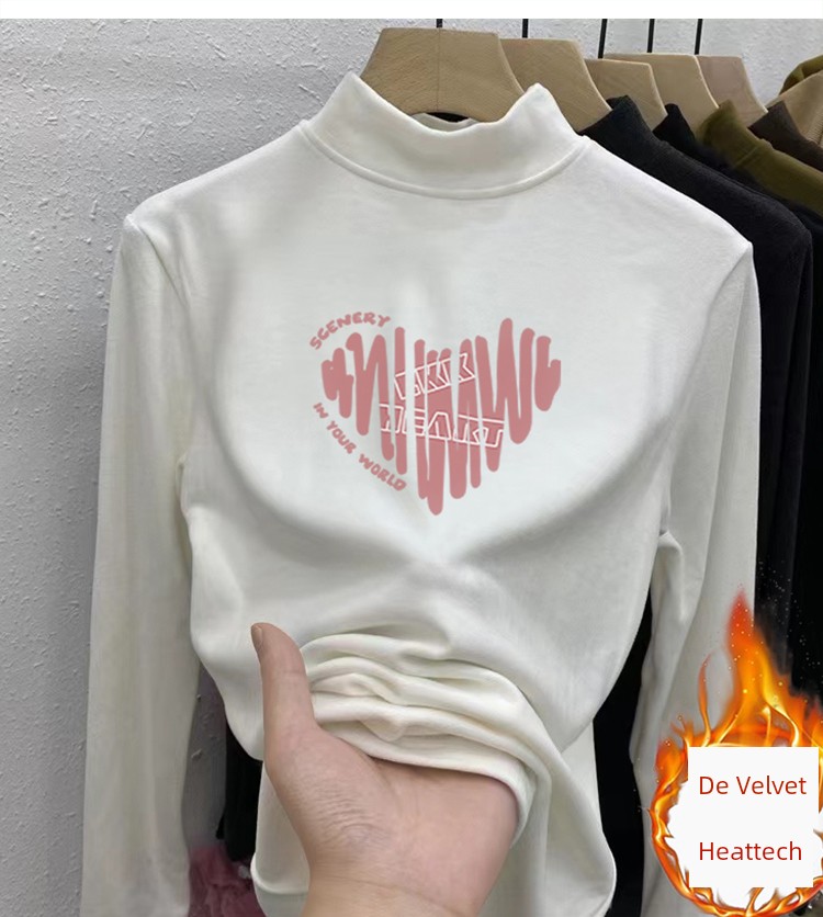 Dralon Half Turtleneck Bottoming Shirt Autumn and Winter Inner Stand Collar Tops Fashionable Fleece-Lined Thickened Warm Long Sleeve T-shirt