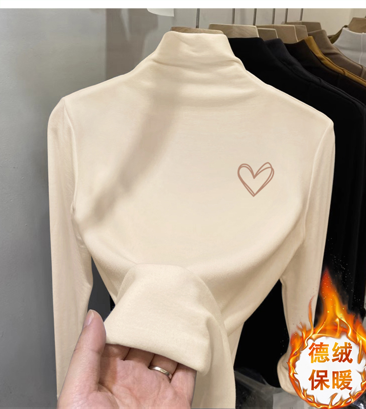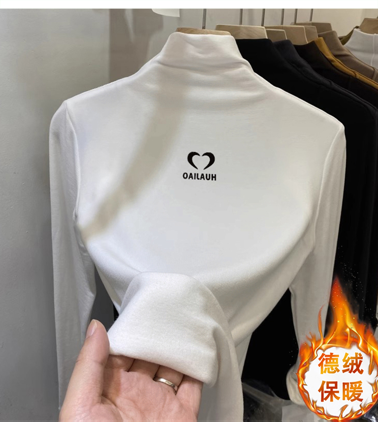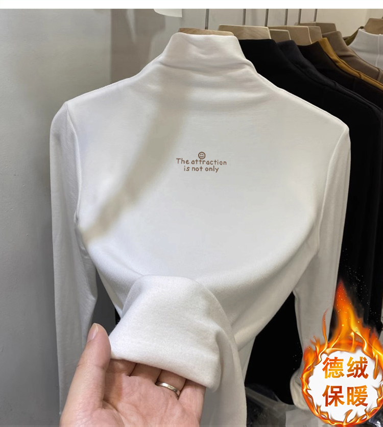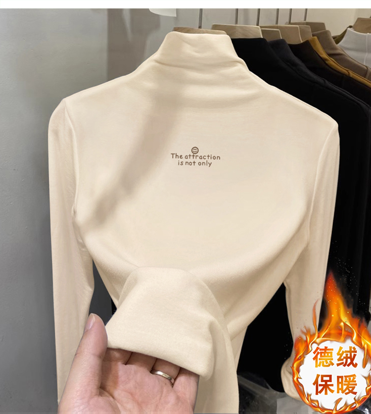 Dralon Half Turtleneck Bottoming Shirt Female 2025 Autumn and Winter Western Style Inner Wear Loose T-Shirt Fleece-lined Brushed Stand Collar Tops
