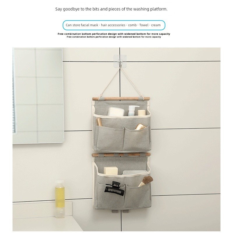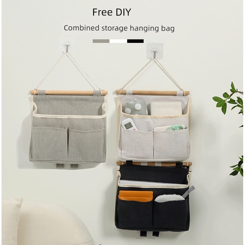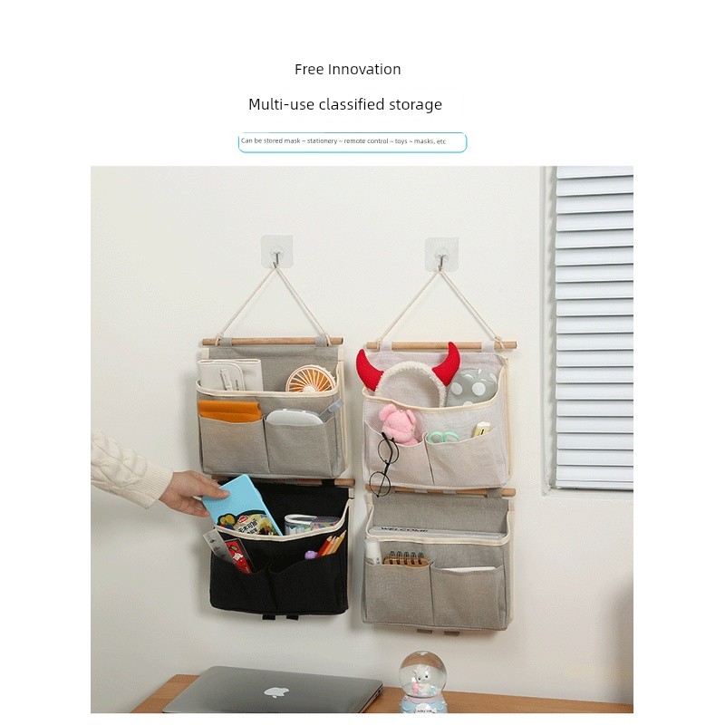 Fabric Wall Hanging Hanging Storage Bag Bed Head Bedside Hanging Shopping Bags Dormitory Wall Storage Bag Multi-Pocket Hanging Bag