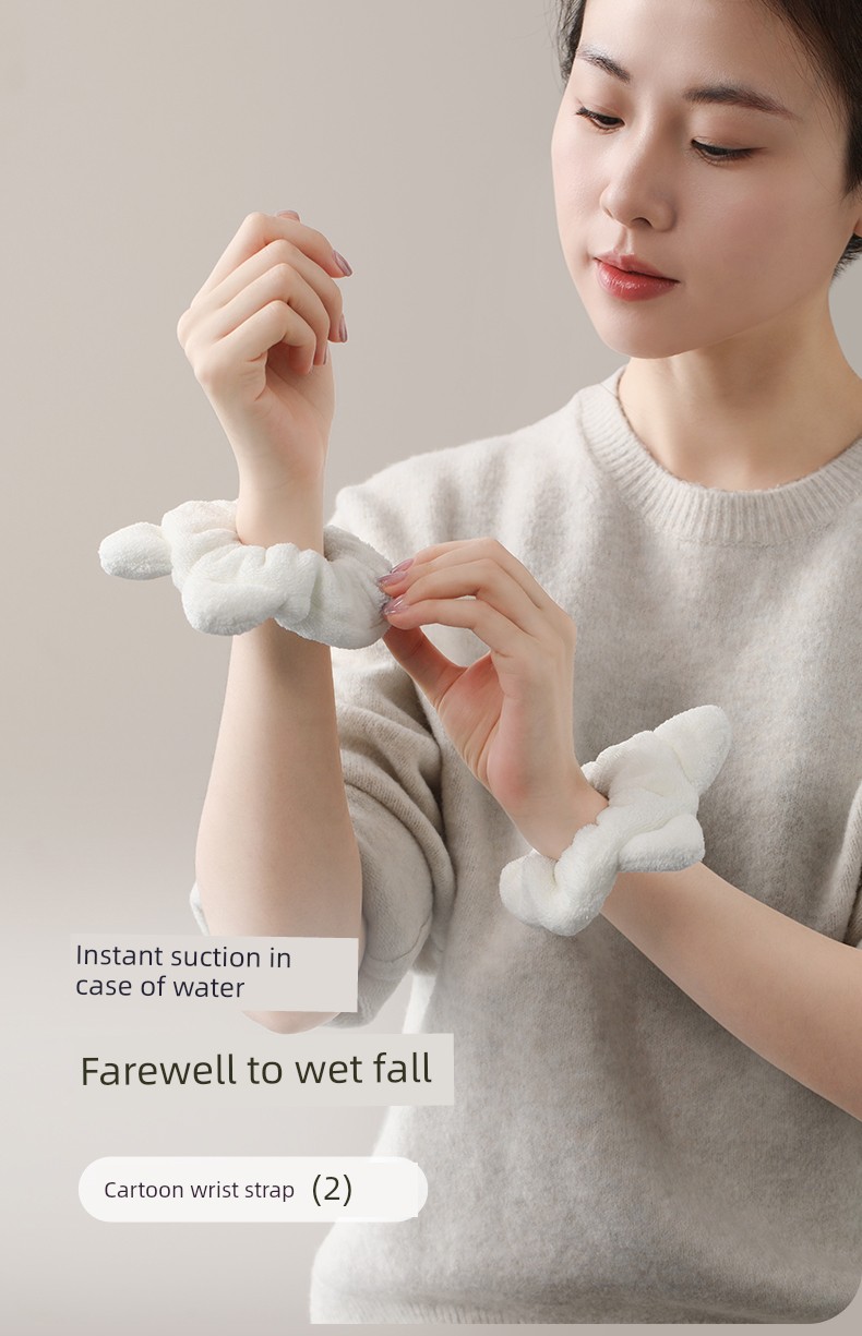 Fasola Face Wash Wrist Strap Waterproof Wrist Guard Wash Cuff Keep Dry Absorbent Water Retaining Cuff Plush Hair Ring
