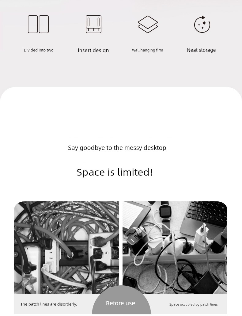 Fasola Power Strip Socket Holder Wall-Mounted Punch-Free Seamless Patch Board Router Rack Wall Sticker