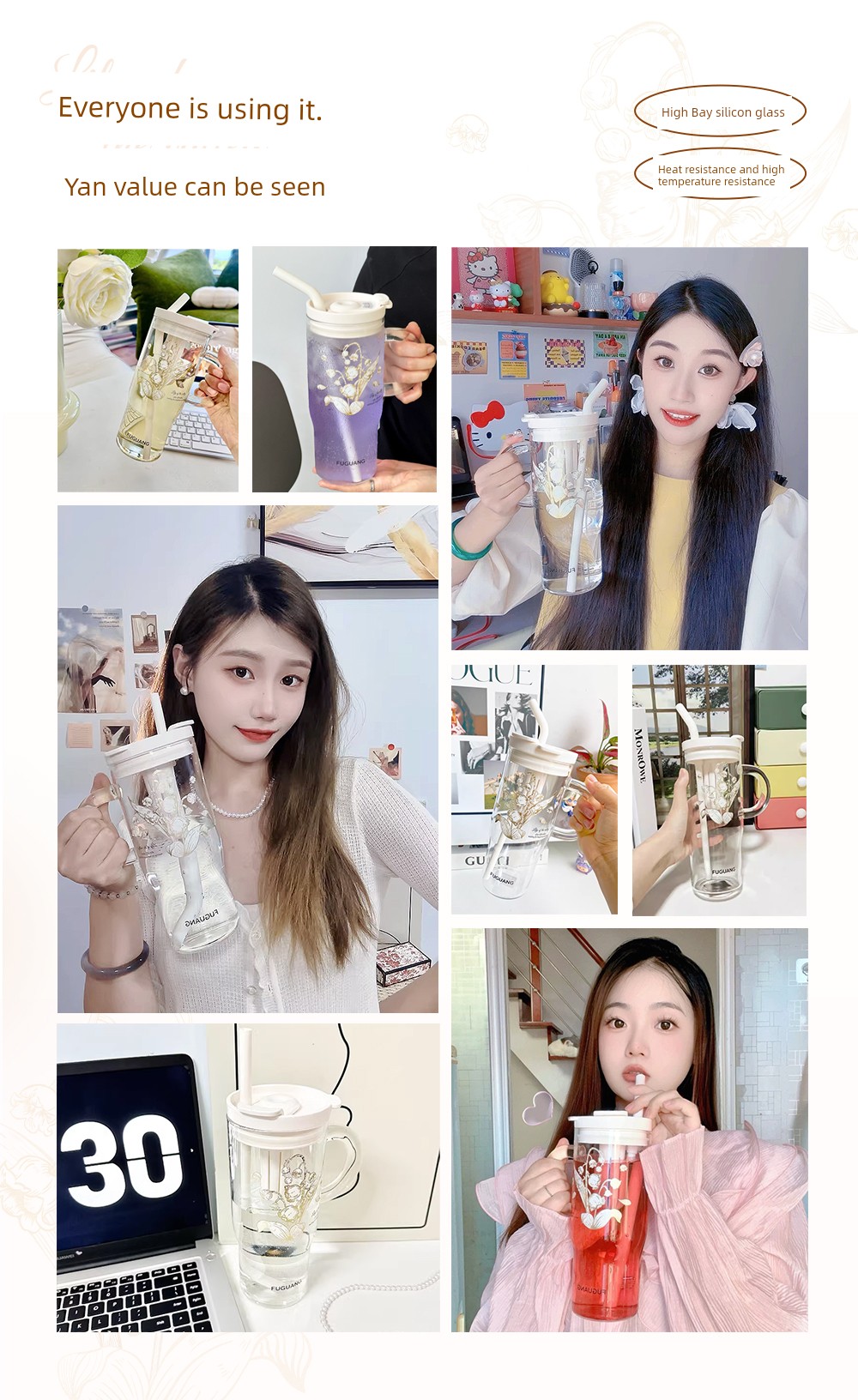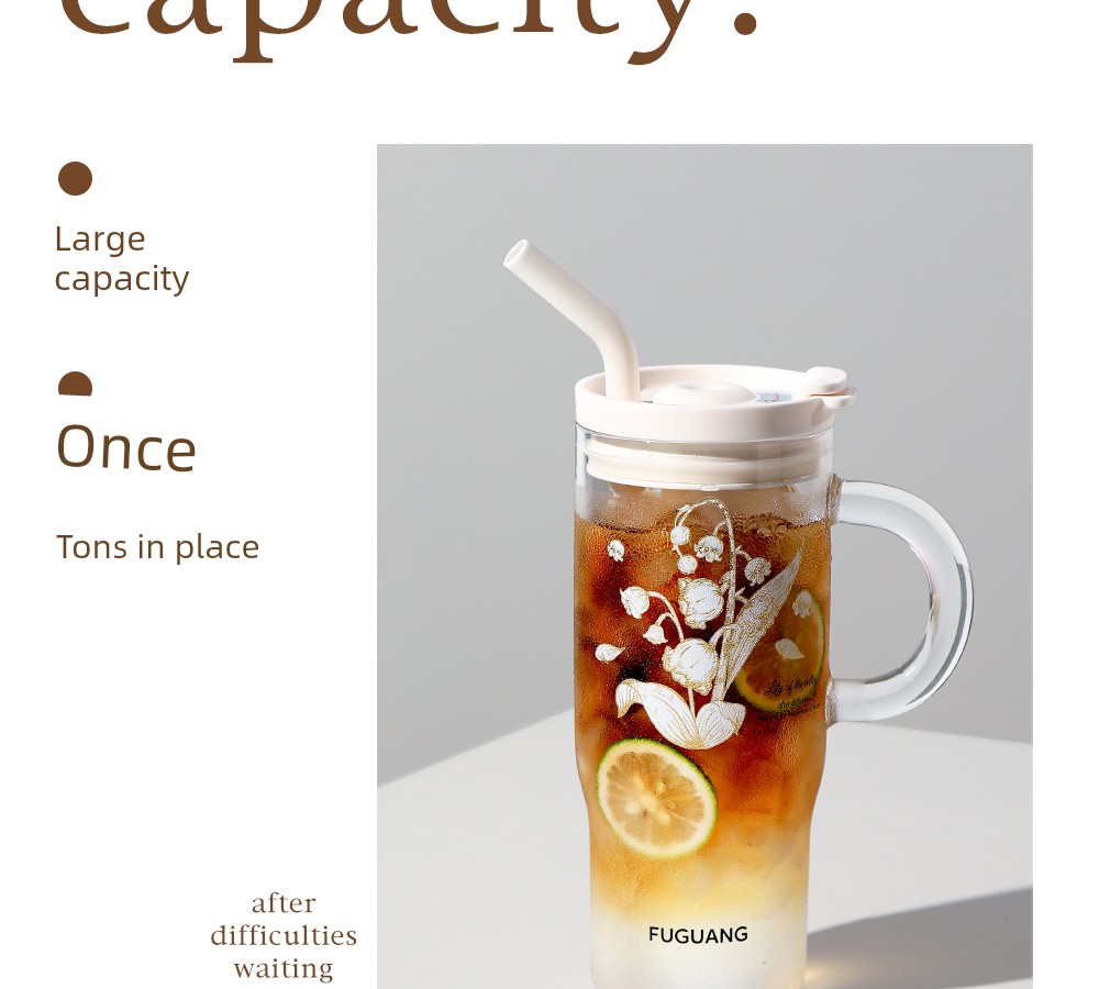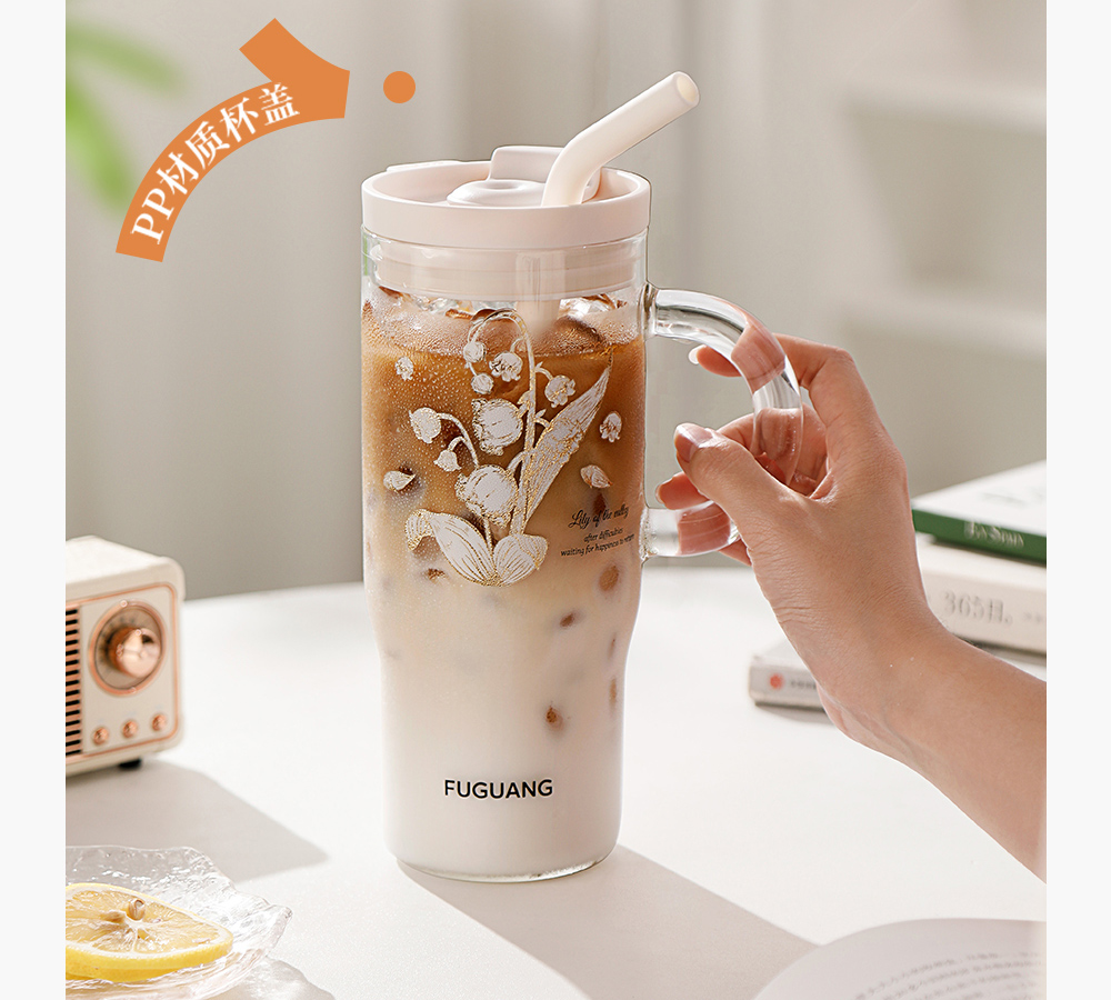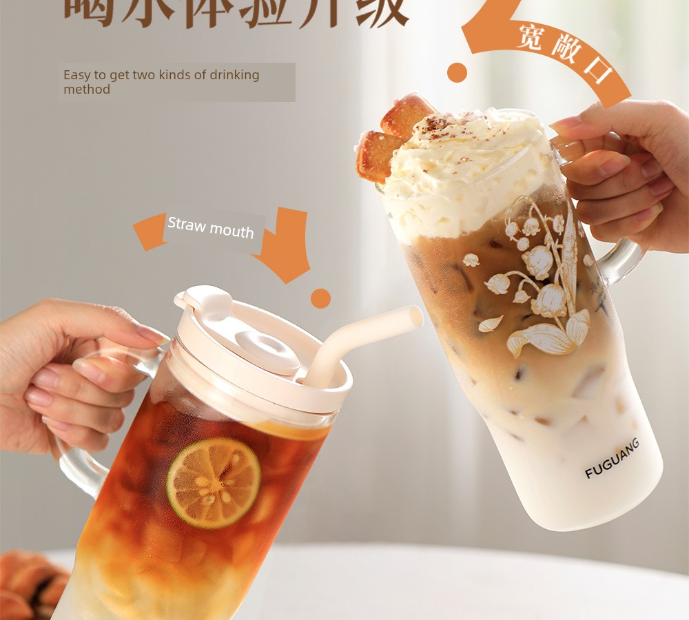 Fuguang Big Mac Glass Straw Cup Water Cup Female 2024 New Arrival Ice Cream Cup High-Looking Student's Tea Cup