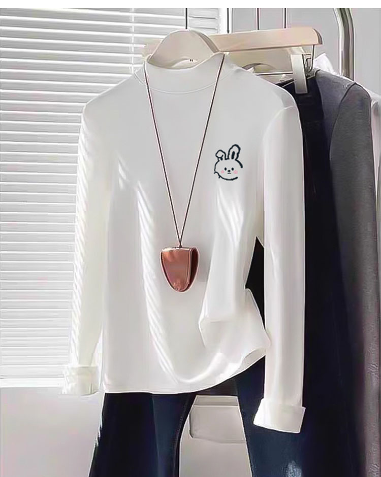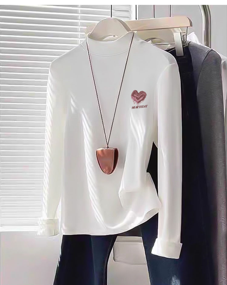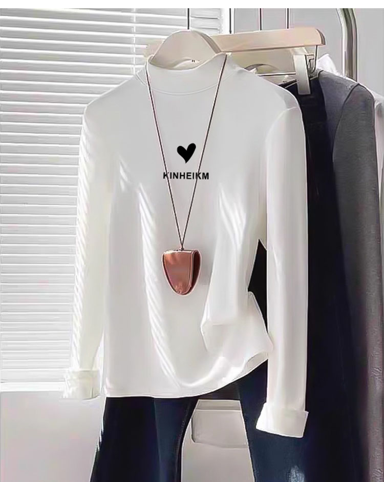 Half Turtleneck Bottoming Shirt Women's Spring Fall and Winter New Arrival White Long Sleeve T-shirt Inner Shoulder Dralon Thickened Warm Coat