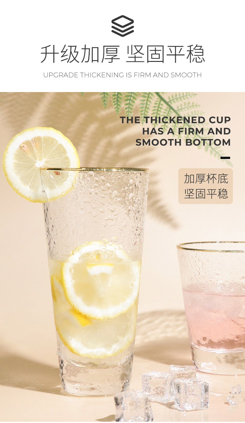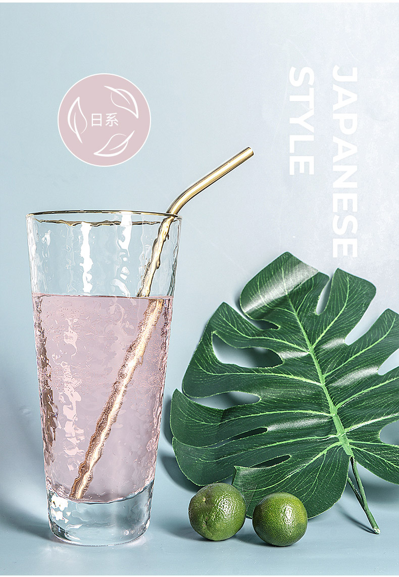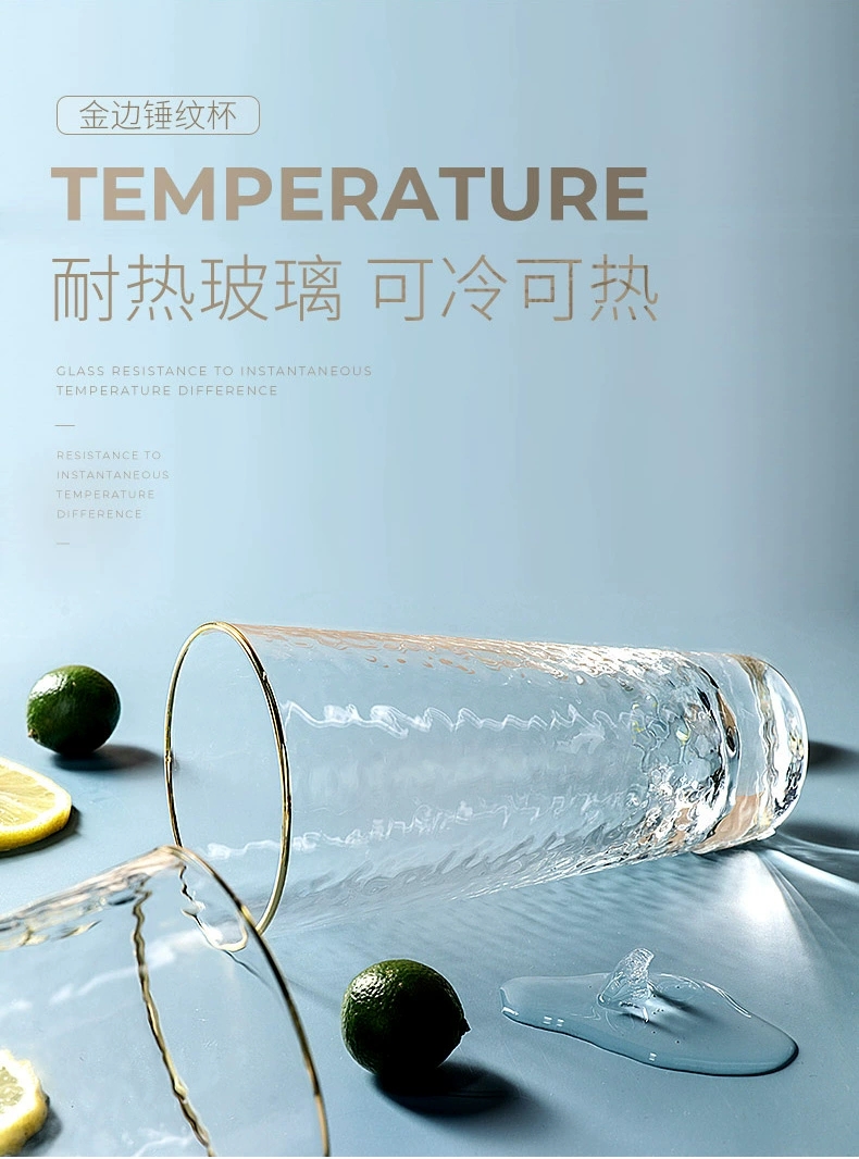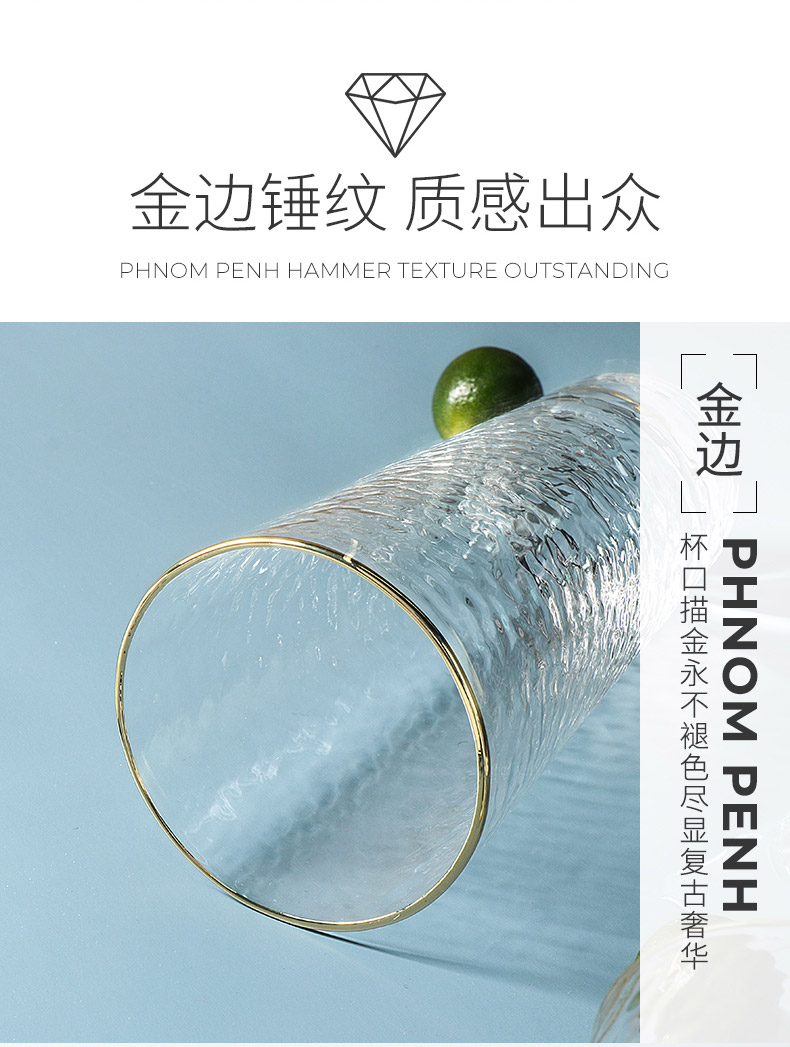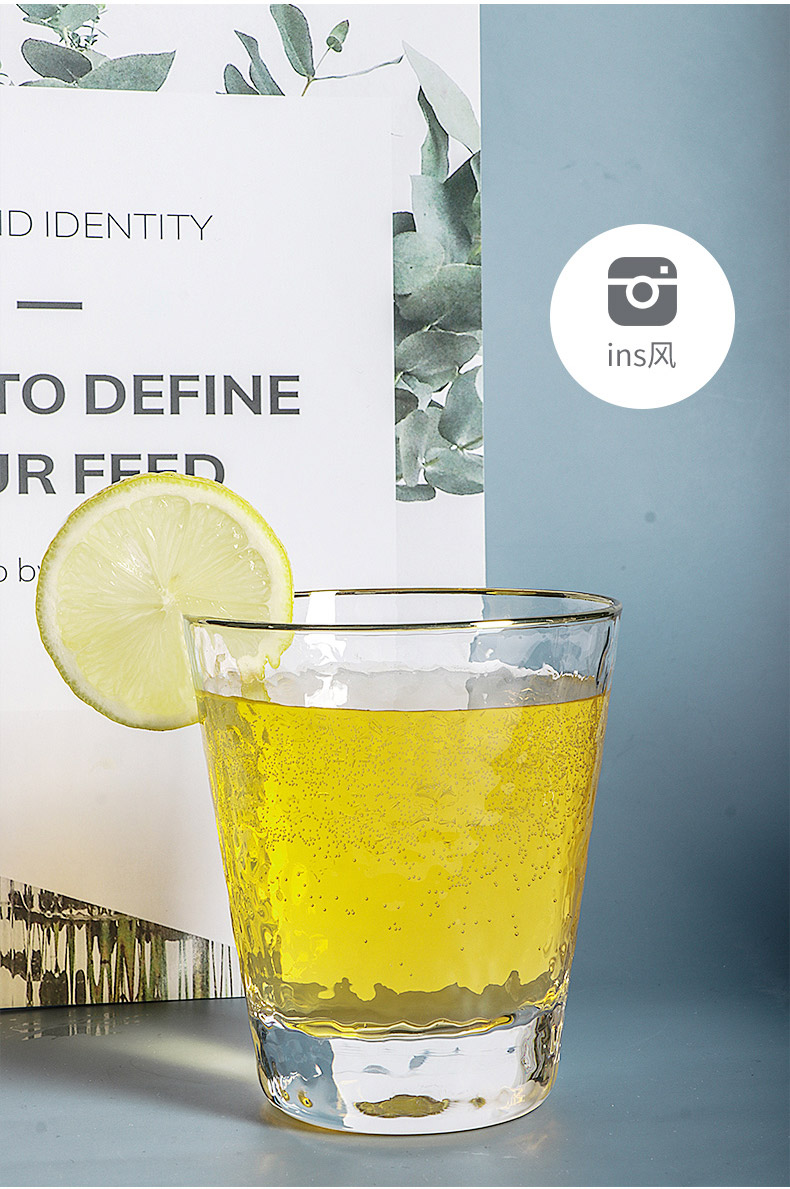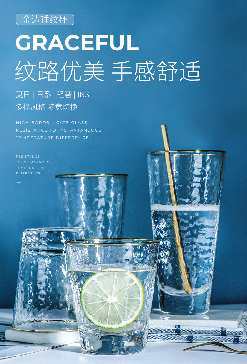 Japanese Style Golden Trim Glass Cup Set For Home Heat-Resistant Drinking Cup Women's Hammered Cup Good-looking Ins Style Milky Tea Cup