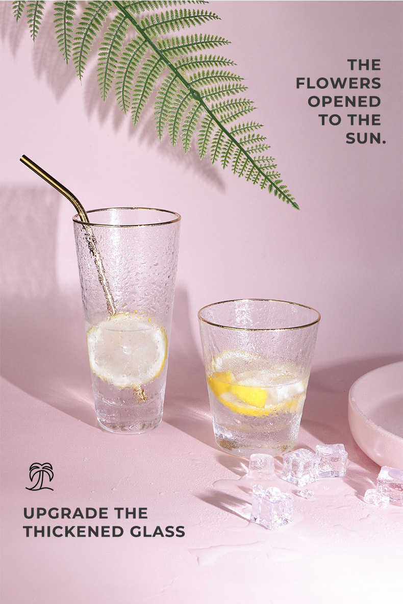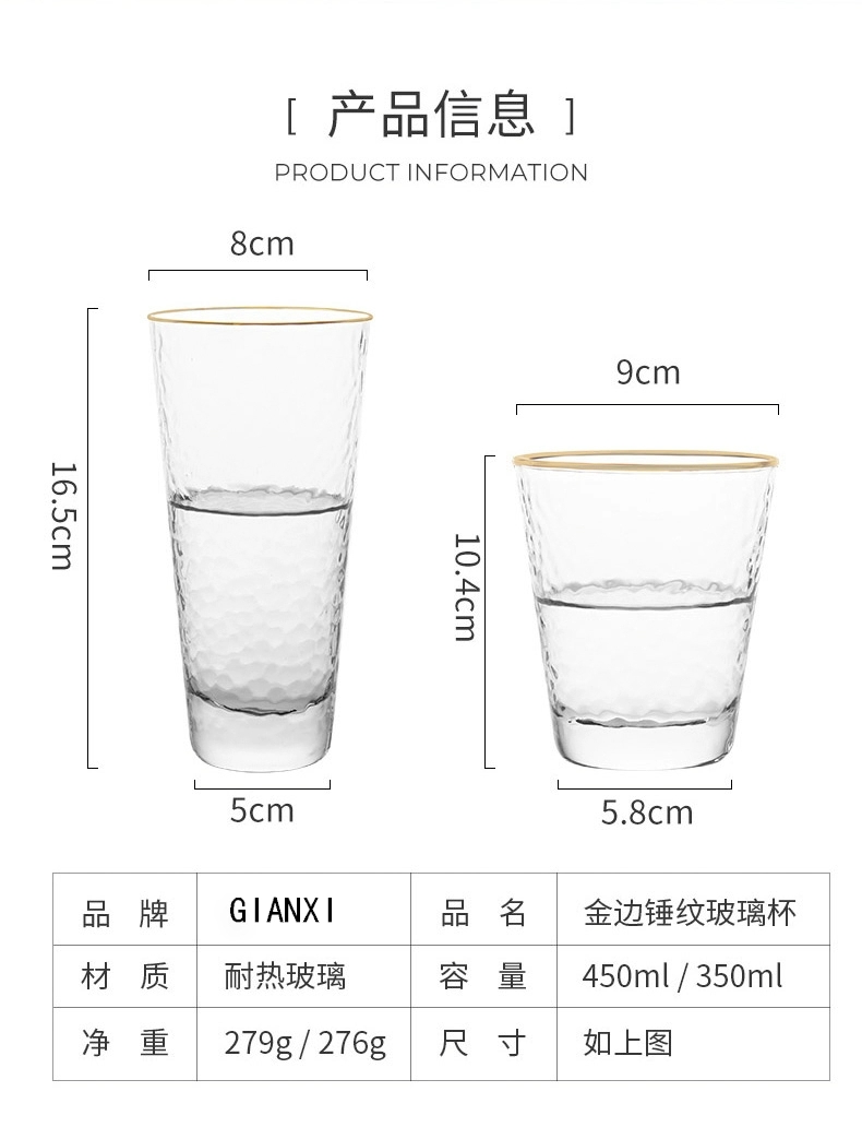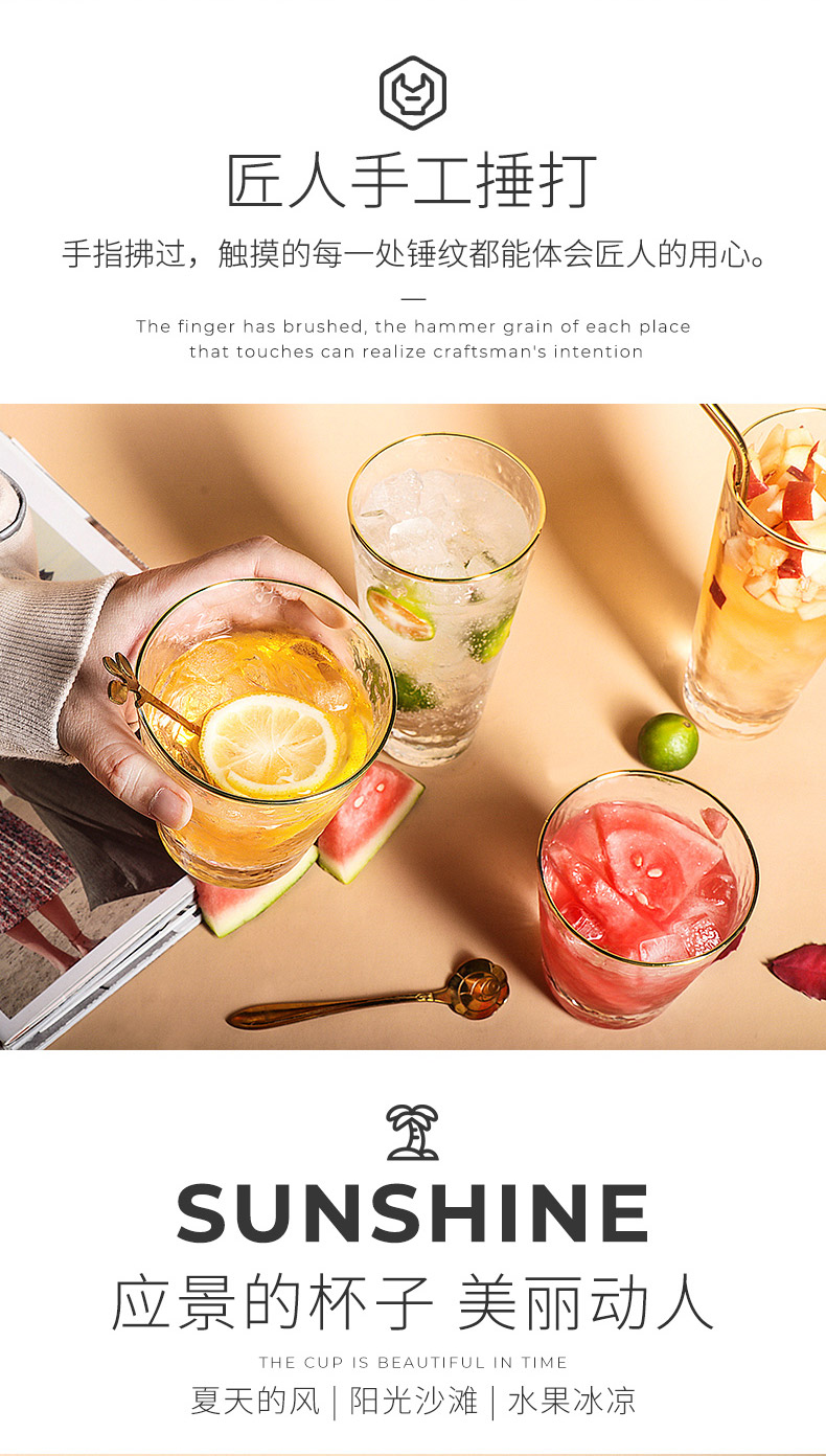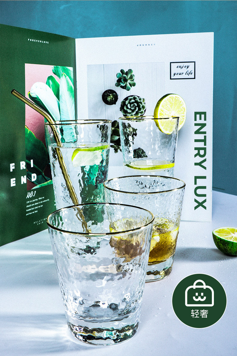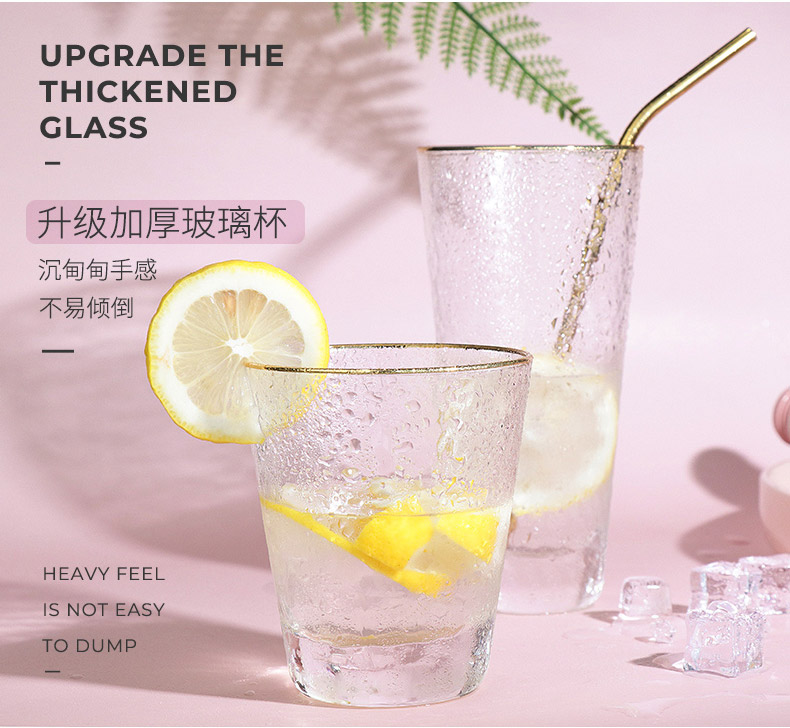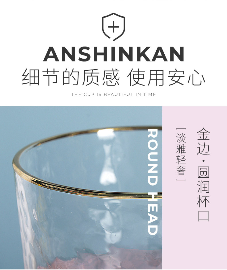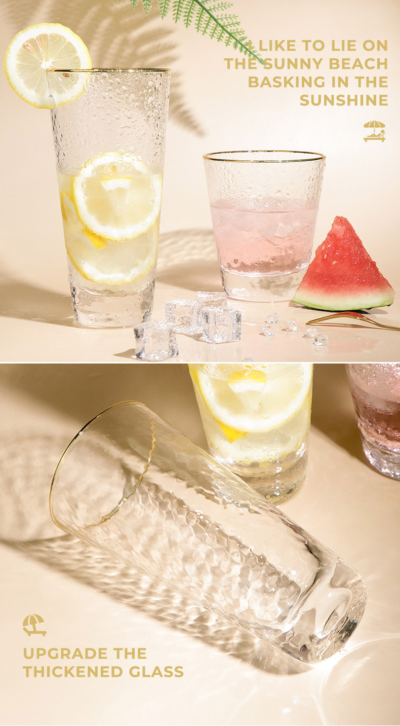Japanese Style Golden Trim Glass Cup Set For Home Heat-Resistant Drinking Cup Women's Hammered Cup Good-looking Ins Style Milky Tea Cup