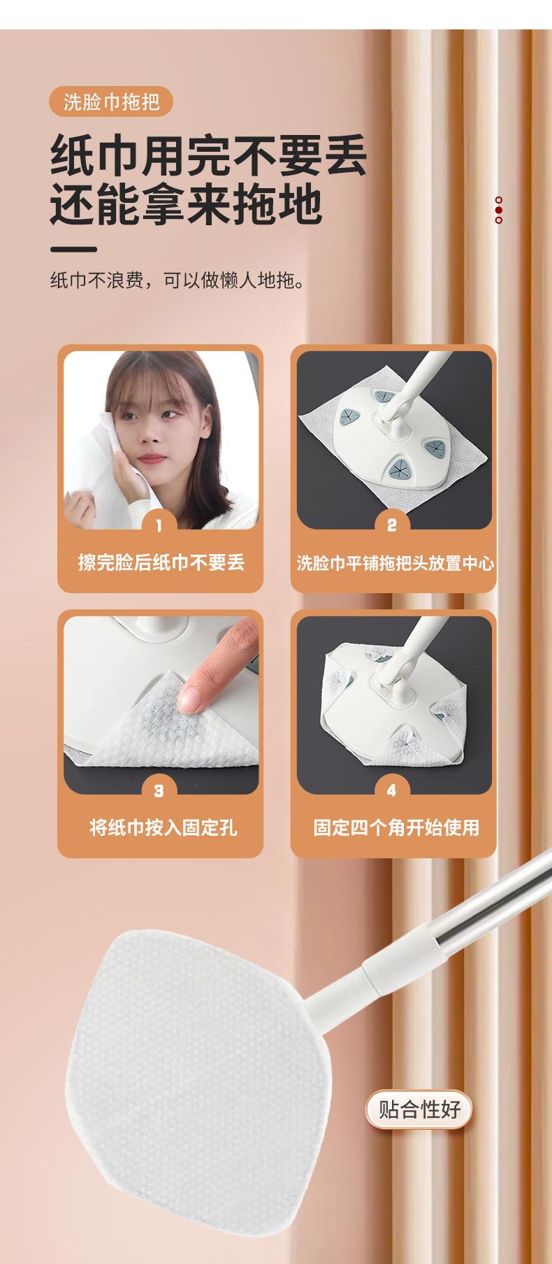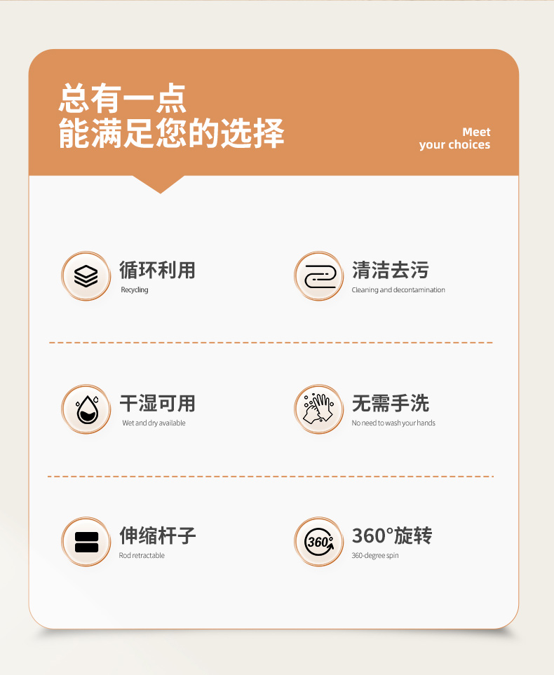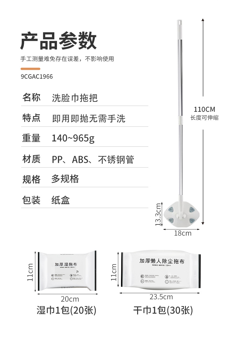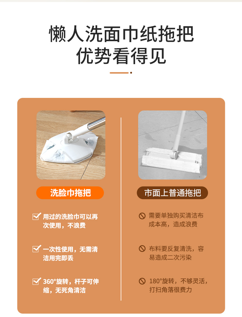 Jujiajia Face Cloth Mop Disposable For Home Hand Wash-Free Wet and Dry Mop Rotate Mop Cleaning Flat Mop