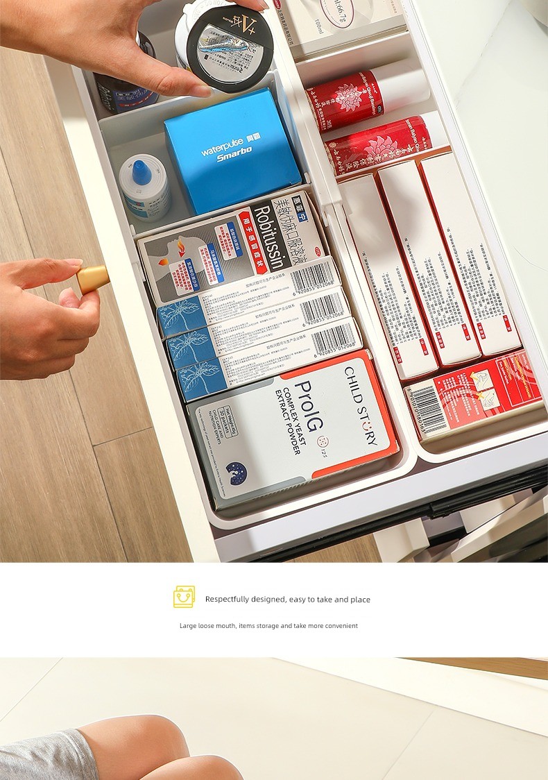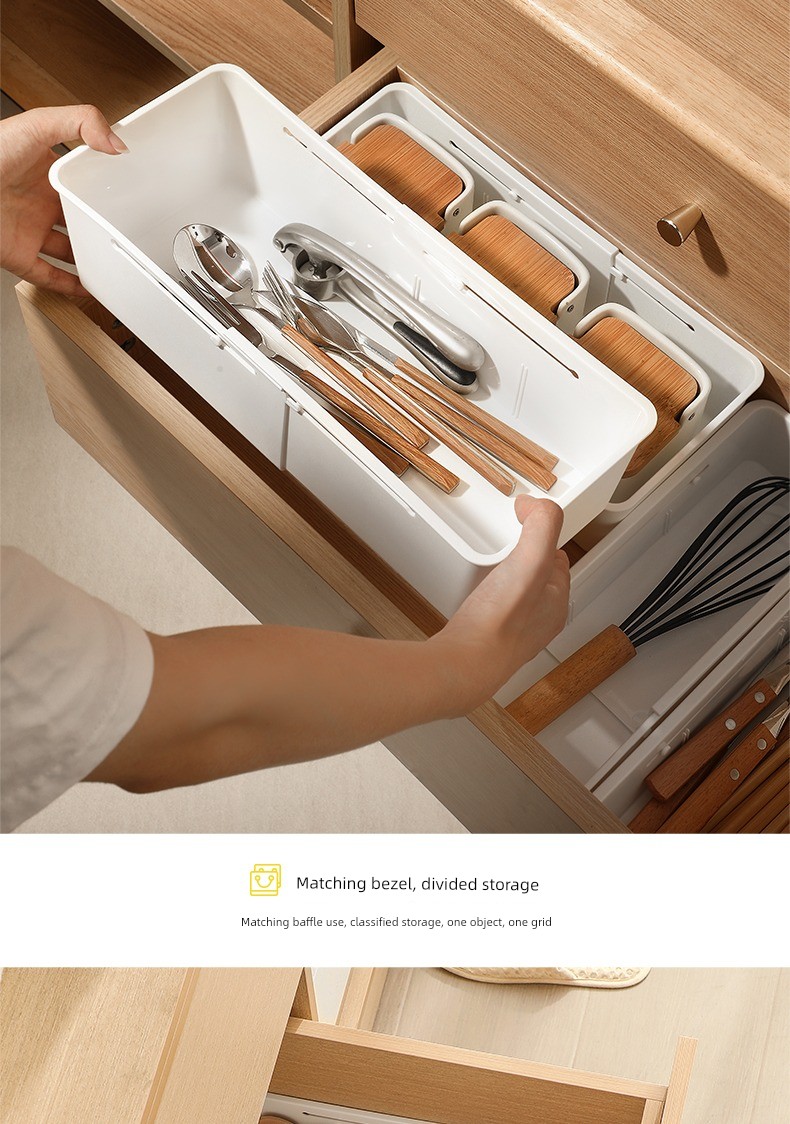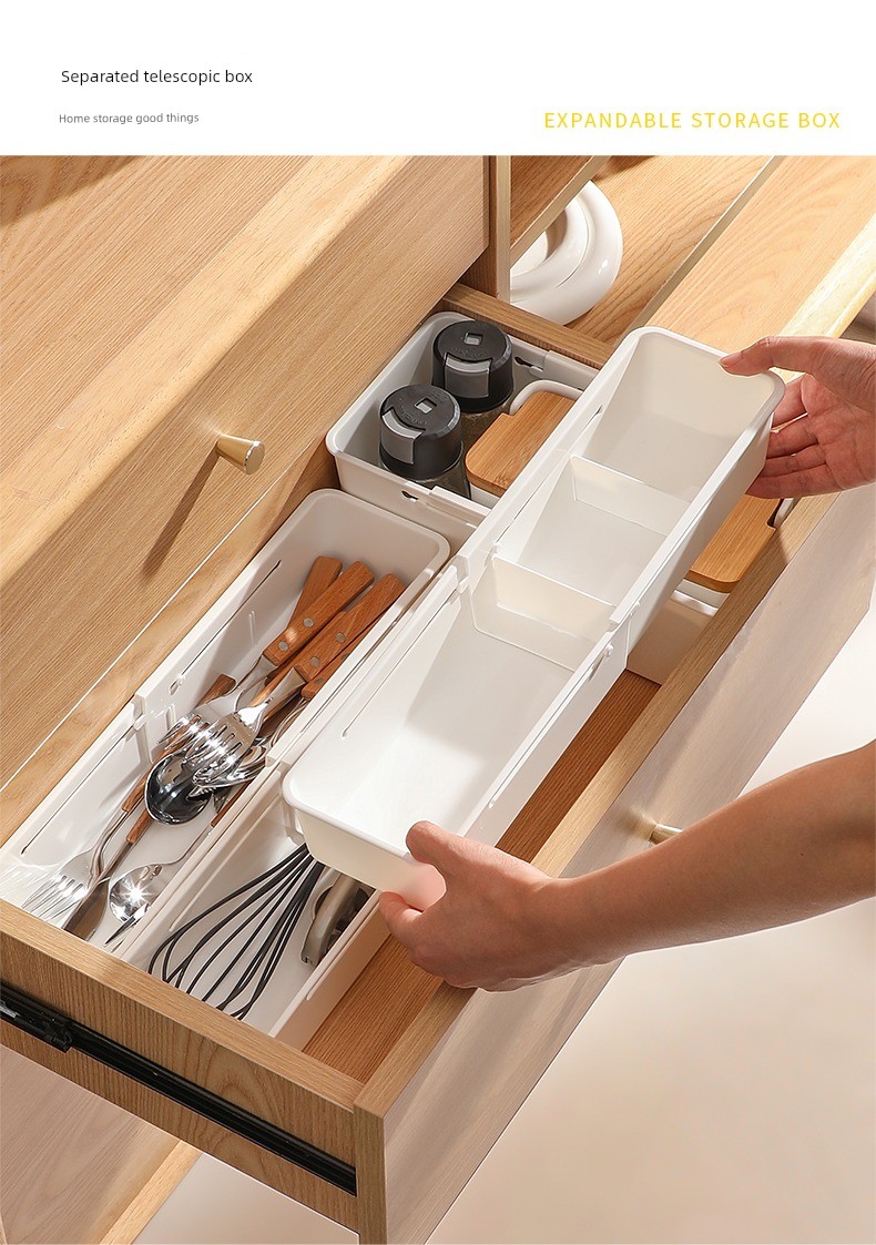 Jujiajia Retractable Drawer Storage Box Household Kitchen Tableware Storage Box Cosmetics Sundries Stationery Organizing Box