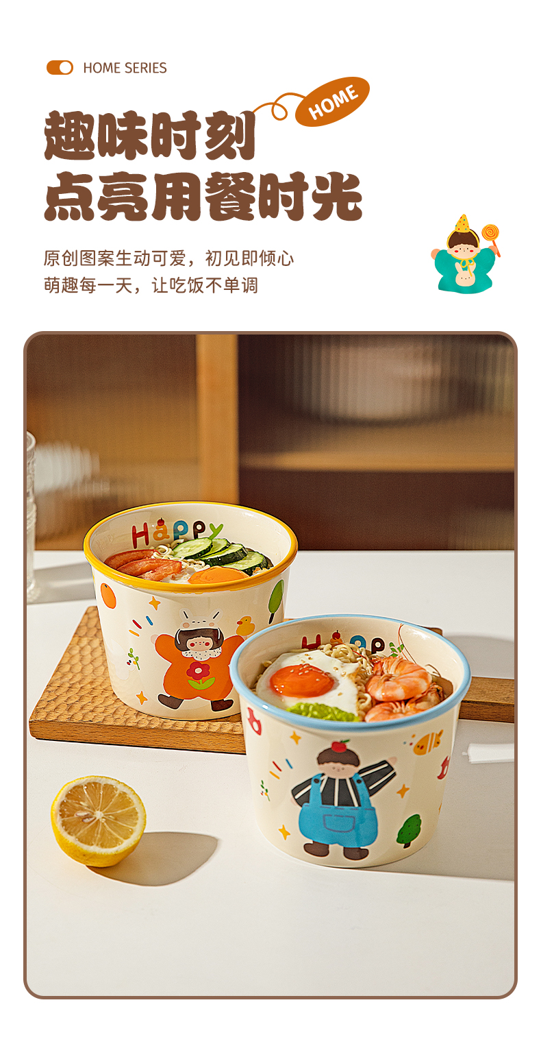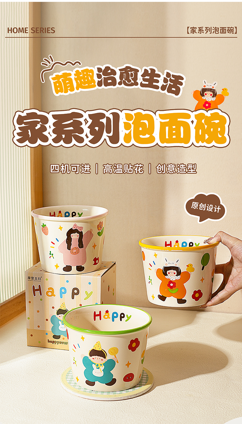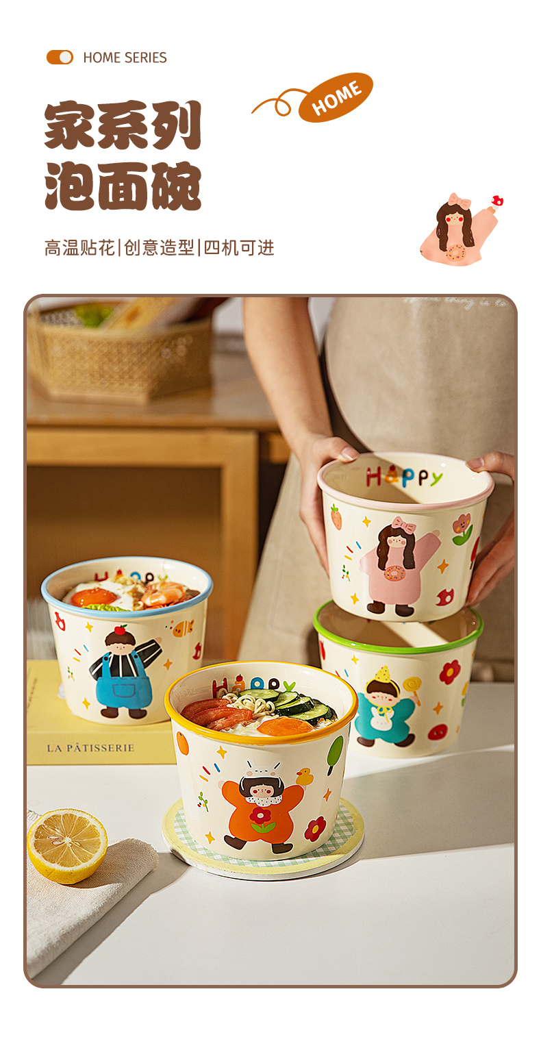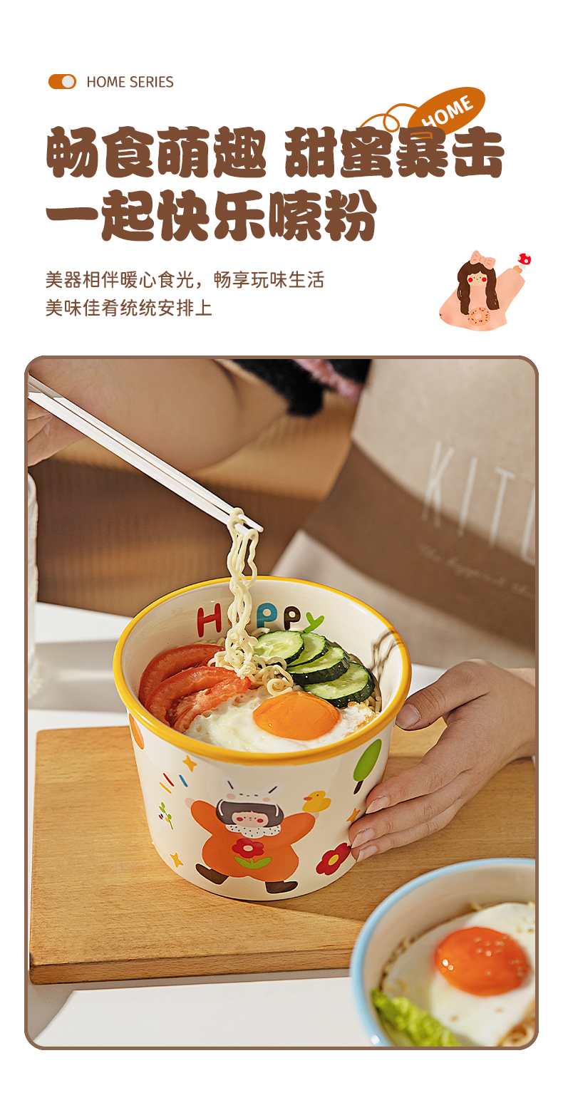Modern Housewife's Three-Mouth Instant Noodle Bowl 2025 New Tableware Bowl for Student Dormitory Soup Noodle Ramen Bowl
