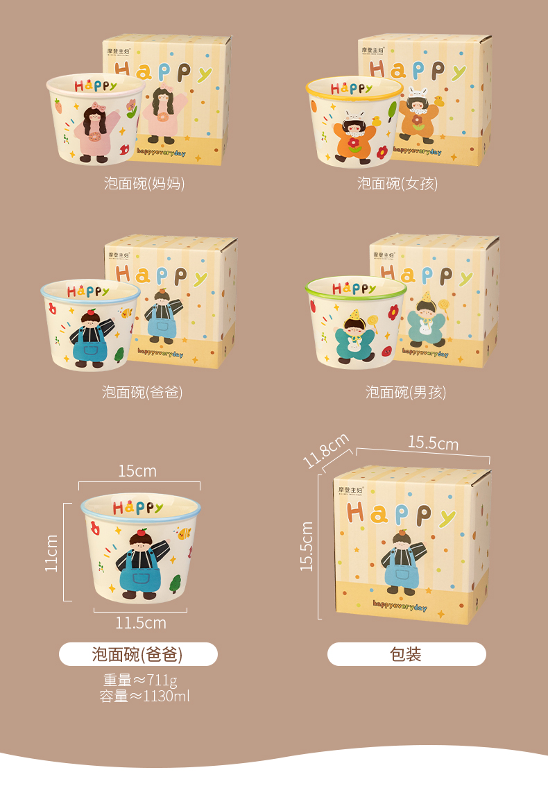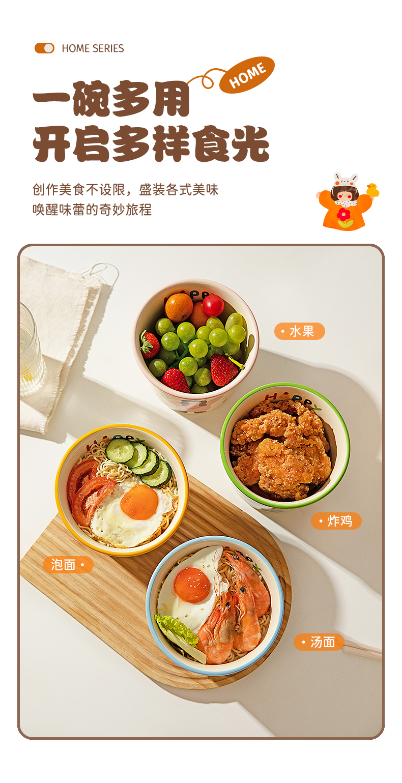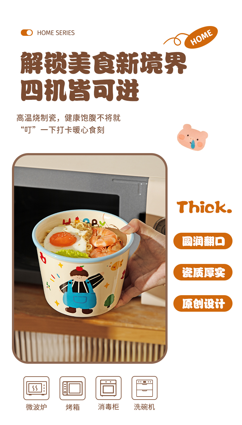 Modern Housewife's Three-Mouth Instant Noodle Bowl 2025 New Tableware Bowl for Student Dormitory Soup Noodle Ramen Bowl