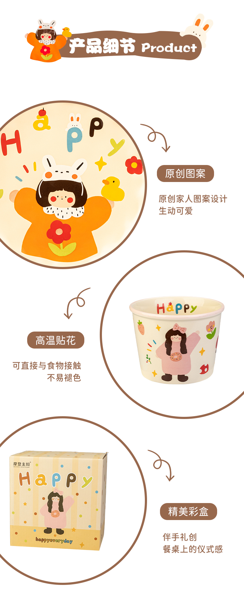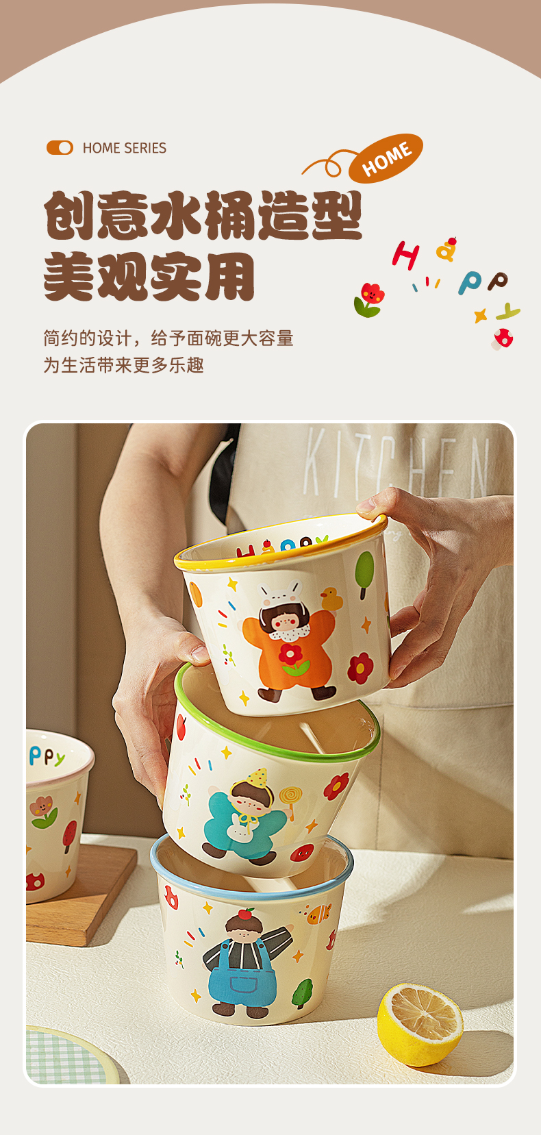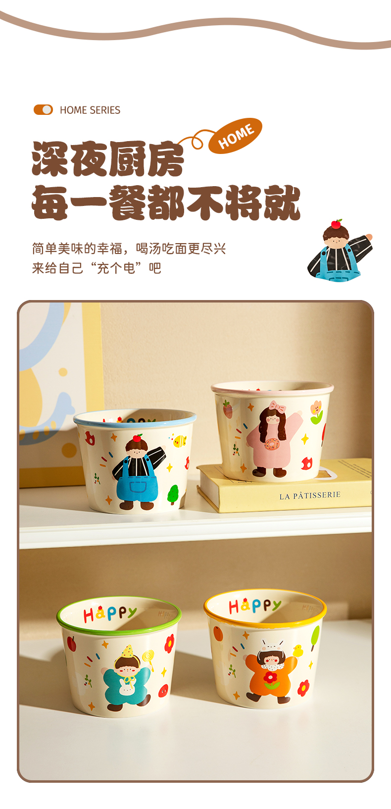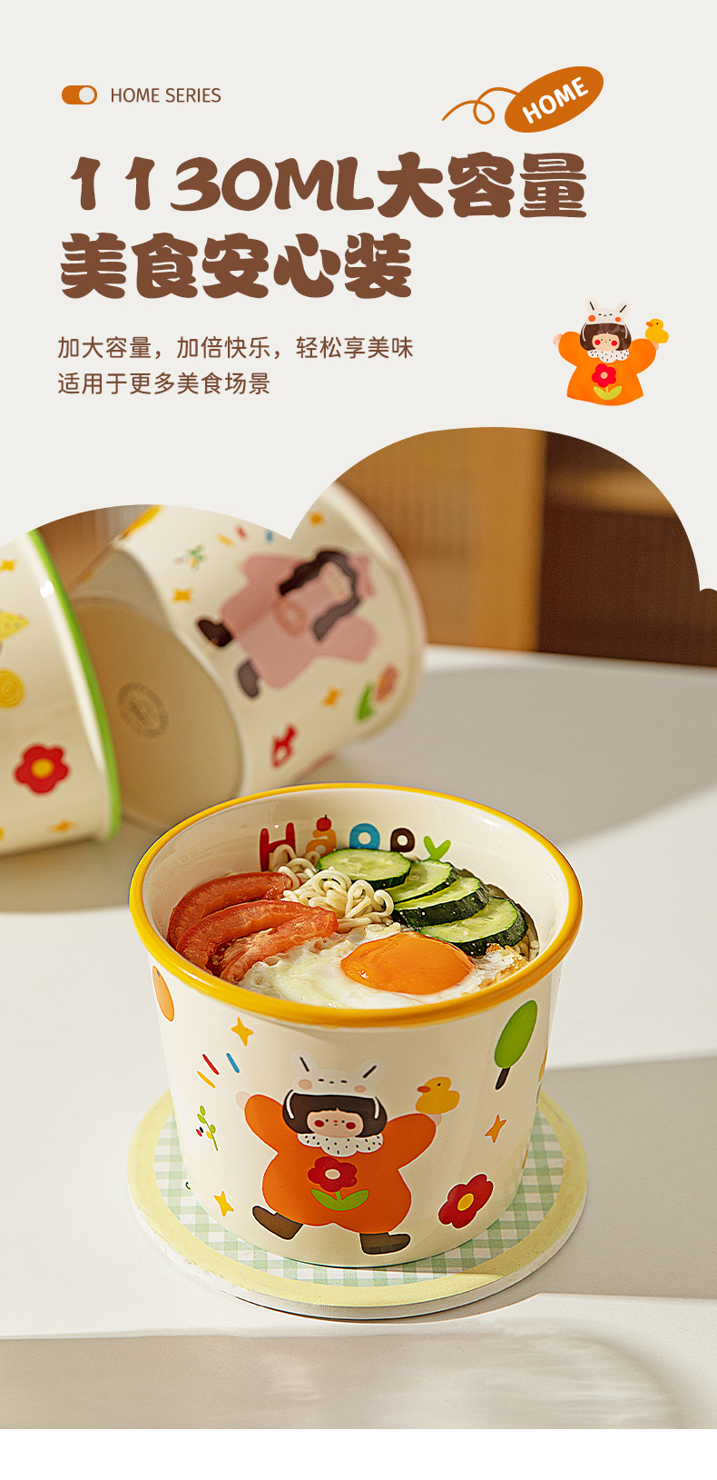 Modern Housewife's Three-Mouth Instant Noodle Bowl 2025 New Tableware Bowl for Student Dormitory Soup Noodle Ramen Bowl
