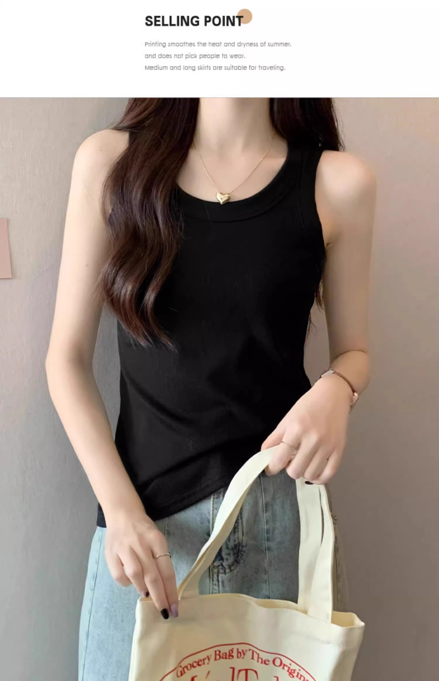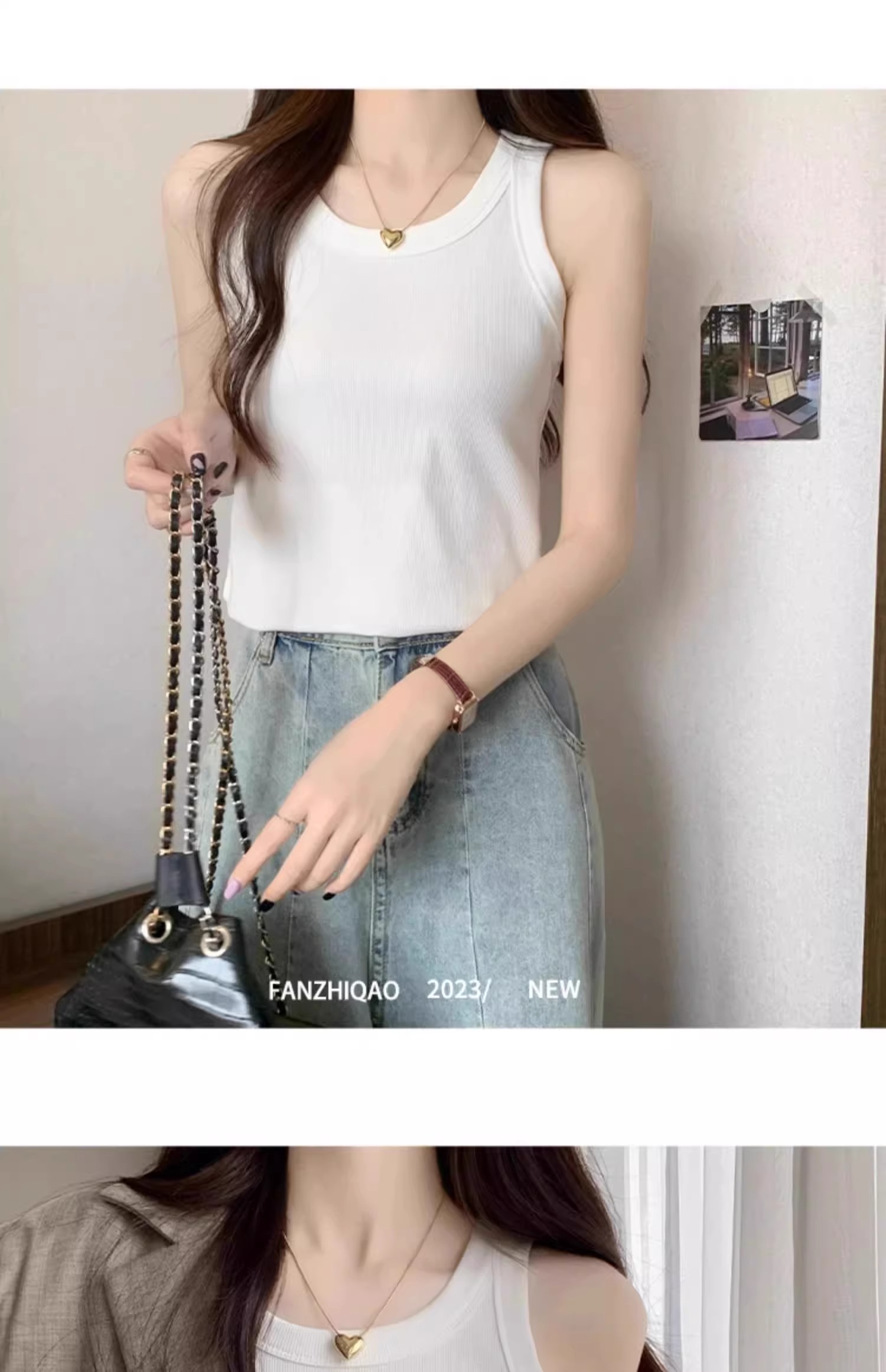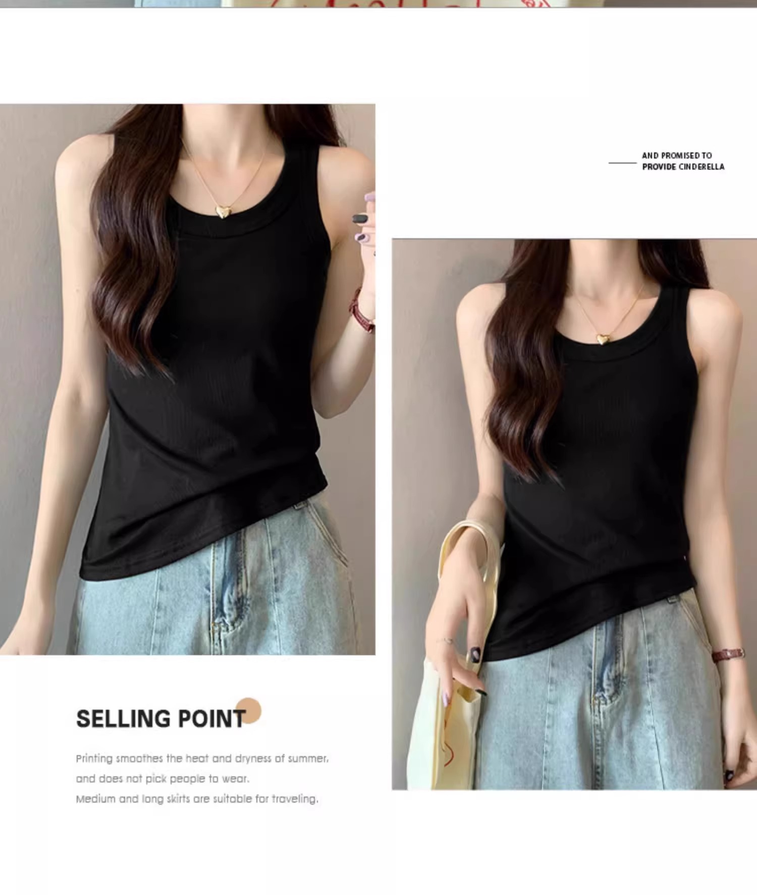 Pure Cotton White Slip Top Women's Summer Inner Wear Outer Wear Bottoming Shirt Sleeveless Fashion Tape Wide Shoulder Strap I-Shaped Tops