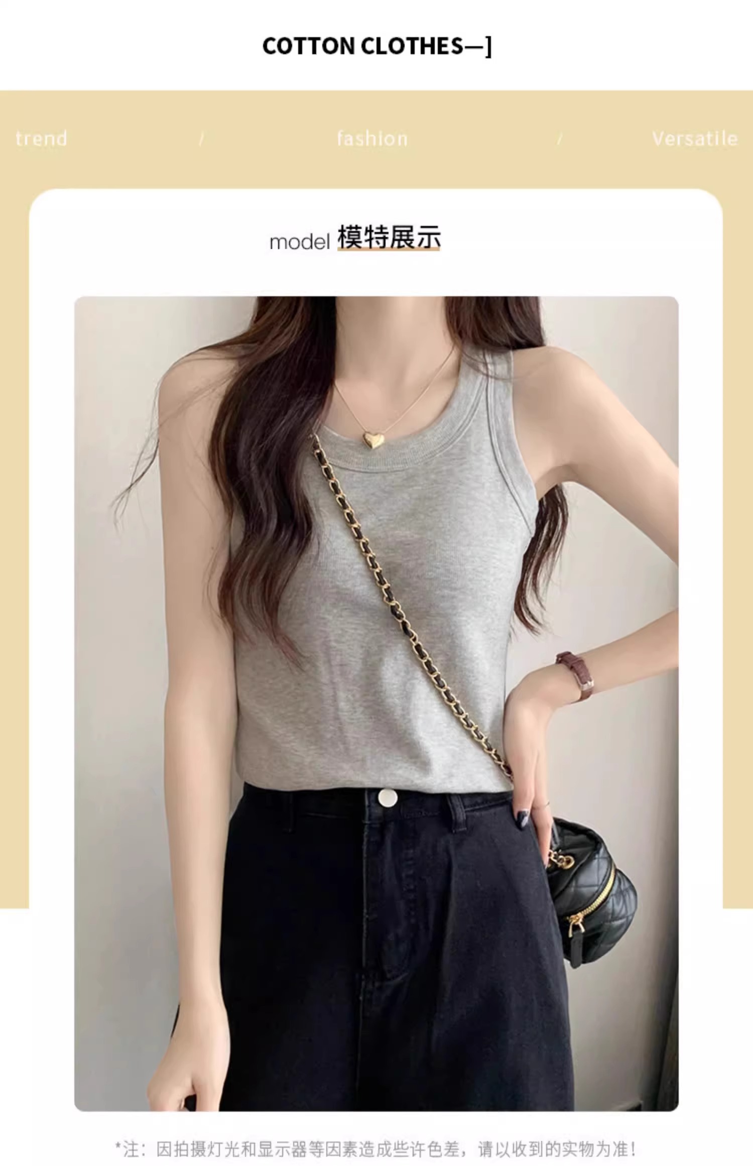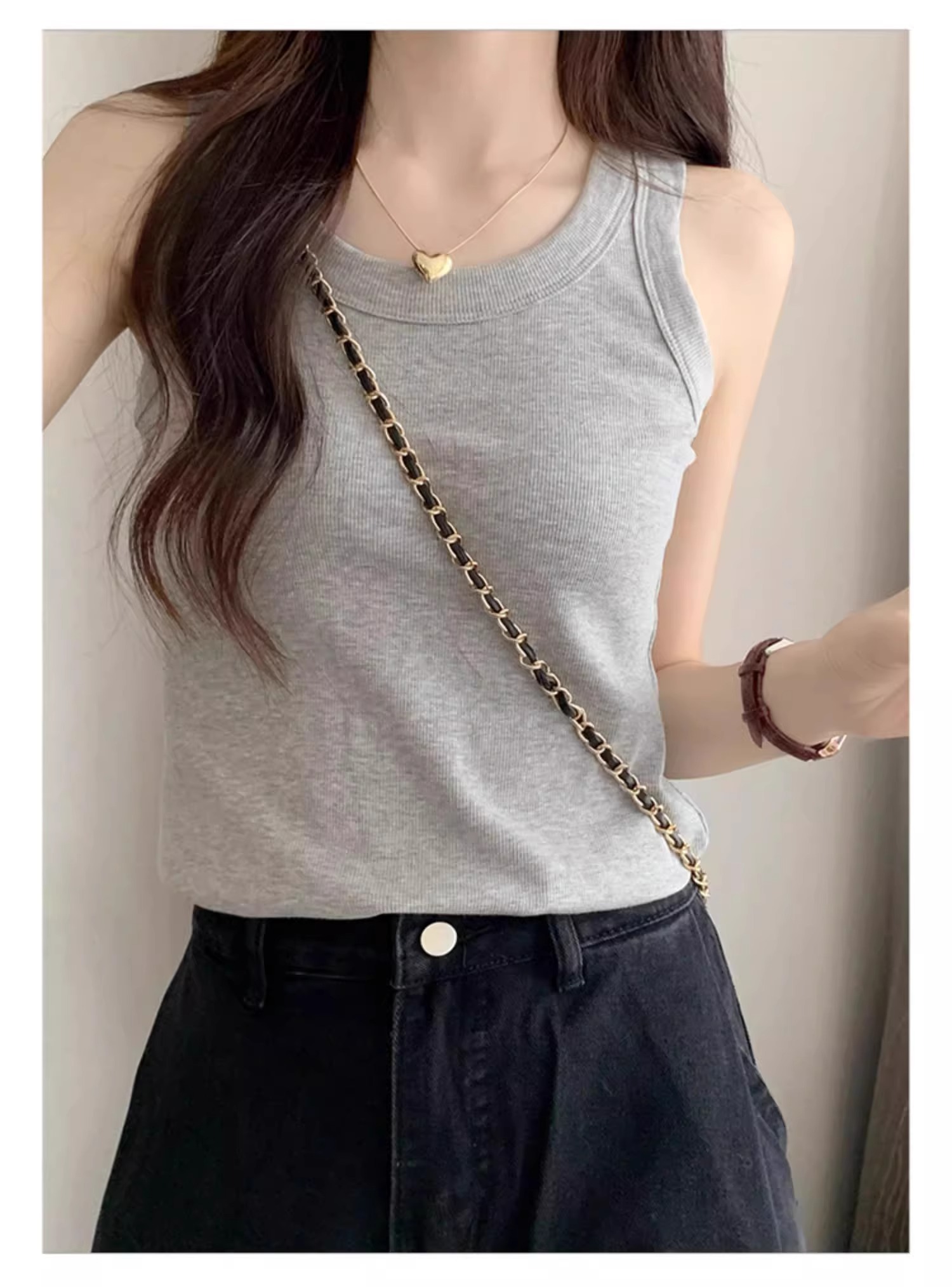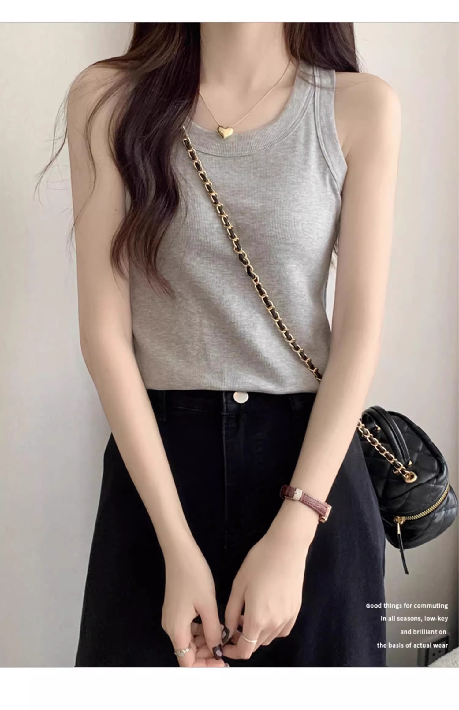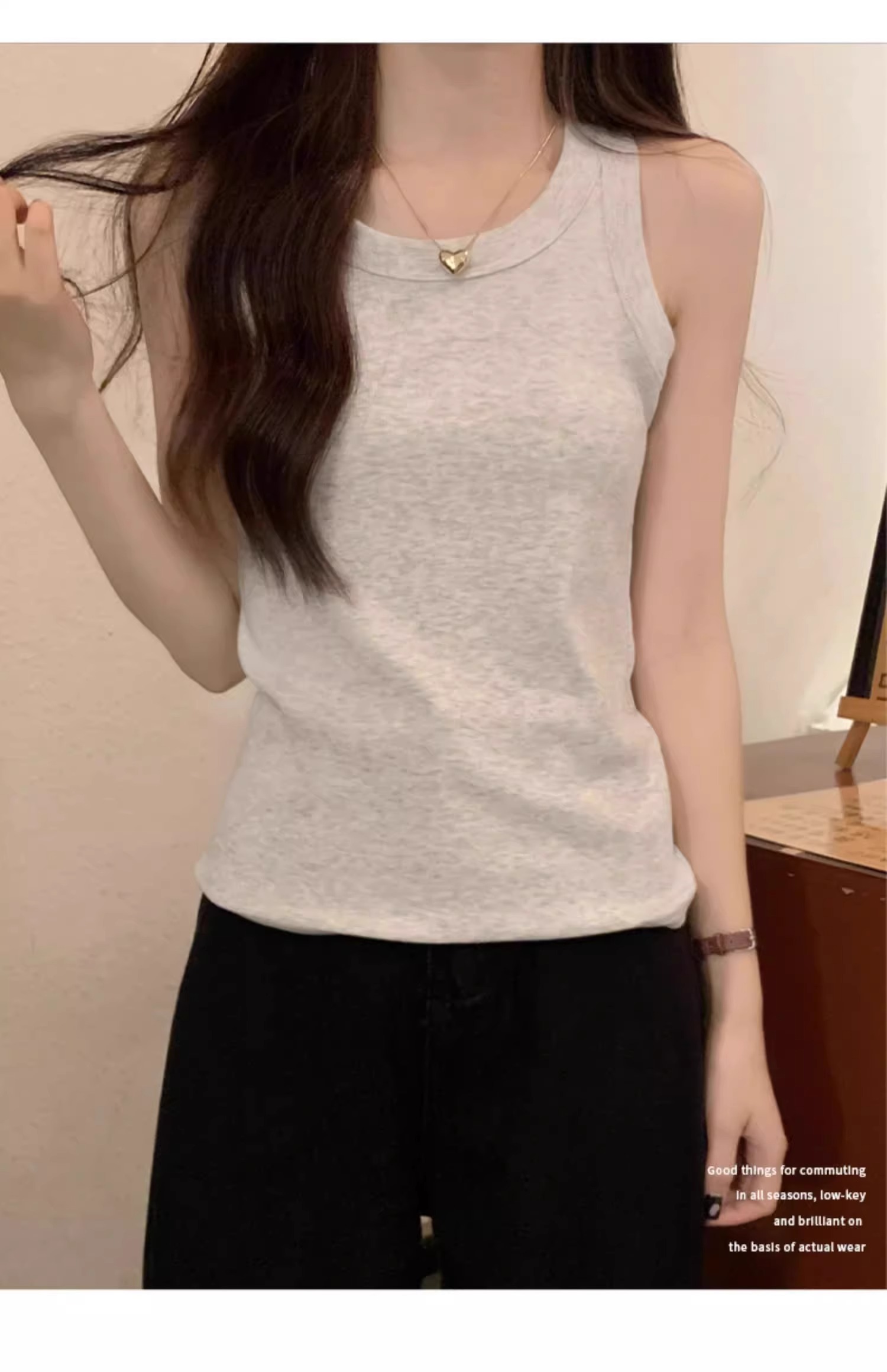 Pure Cotton White Slip Top Women's Summer Inner Wear Outer Wear Bottoming Shirt Sleeveless Fashion Tape Wide Shoulder Strap I-Shaped Tops