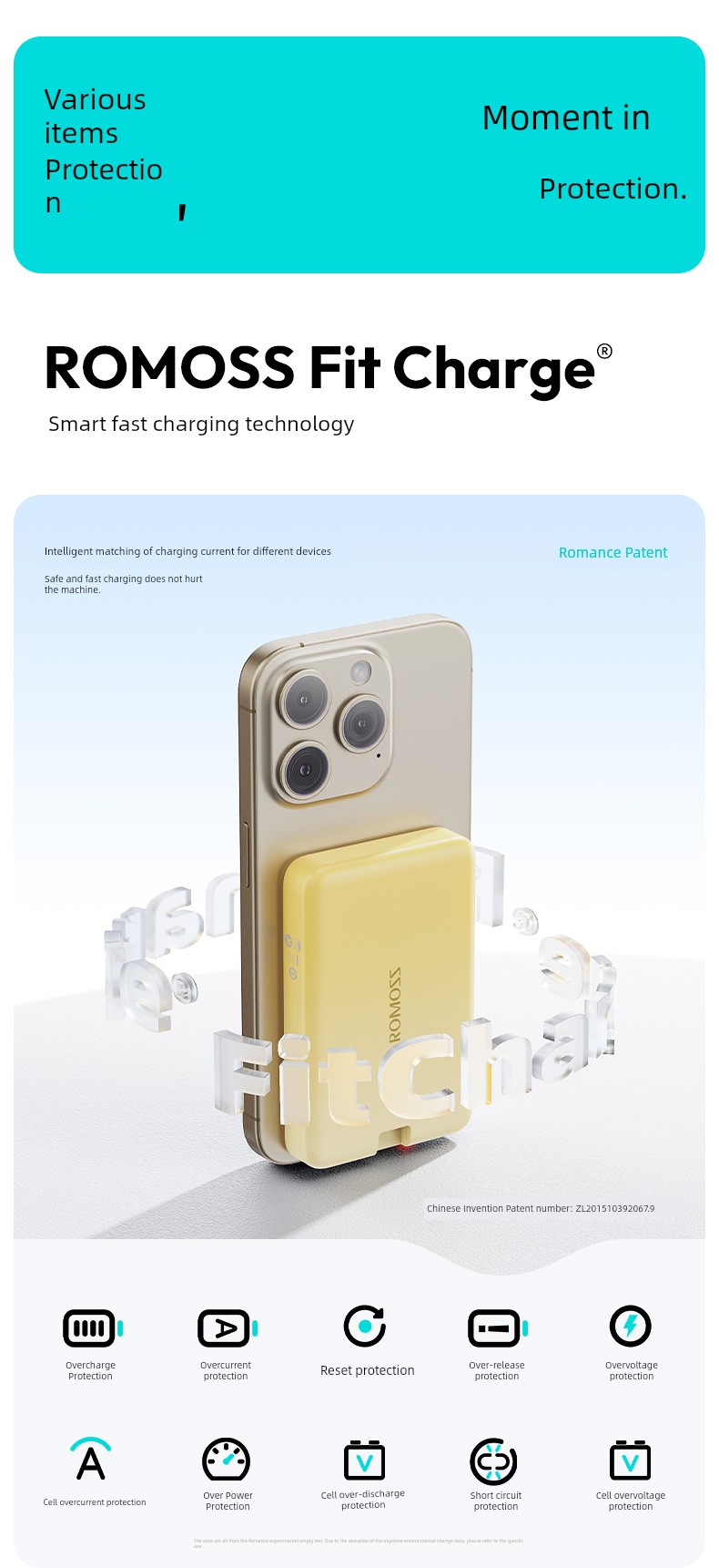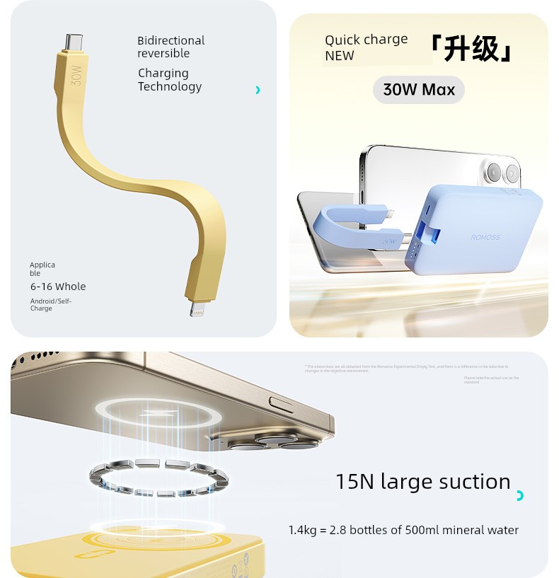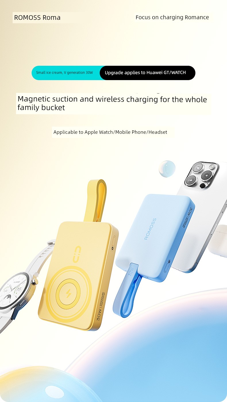 Romoss Power Bank with Cable Portable Watch Magnetic Suction