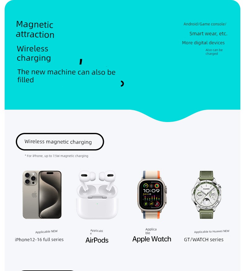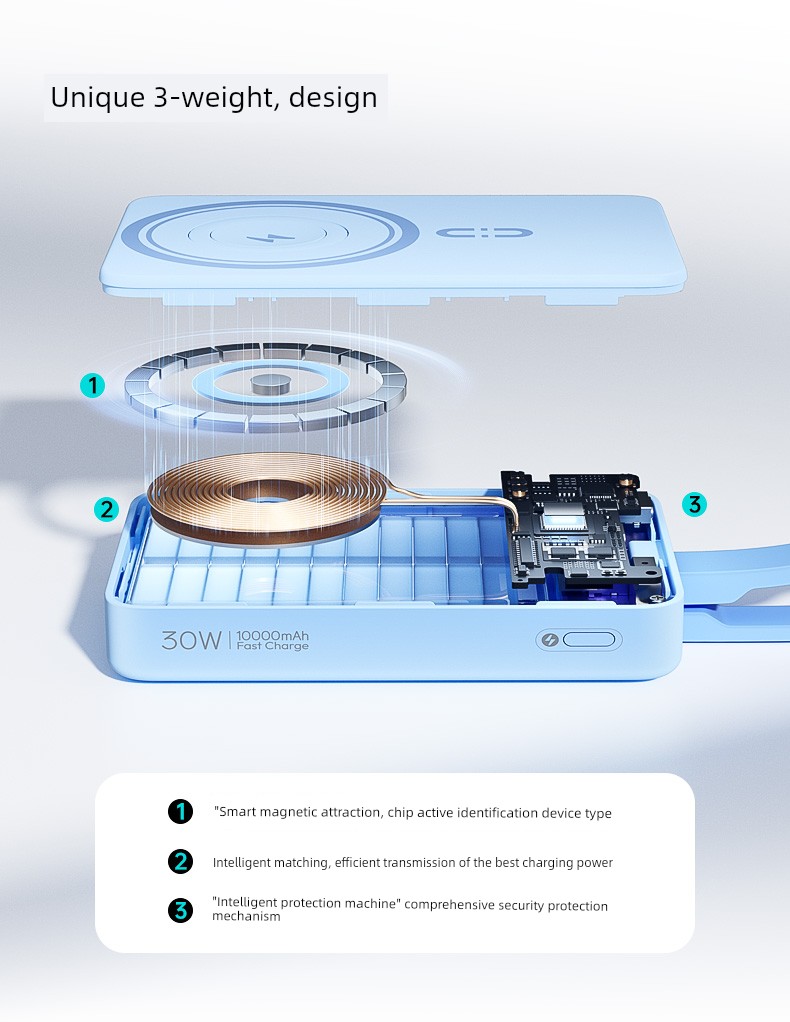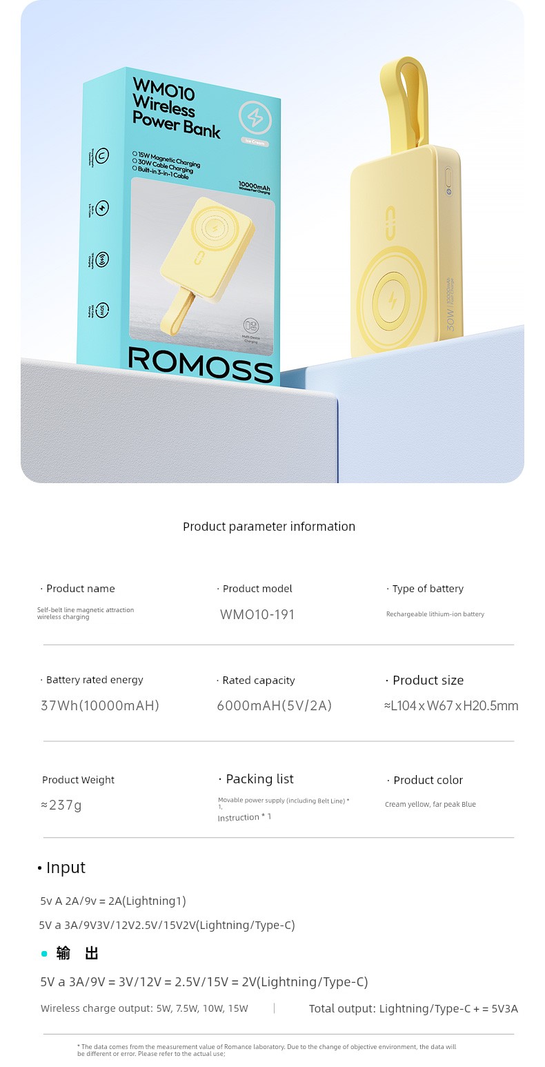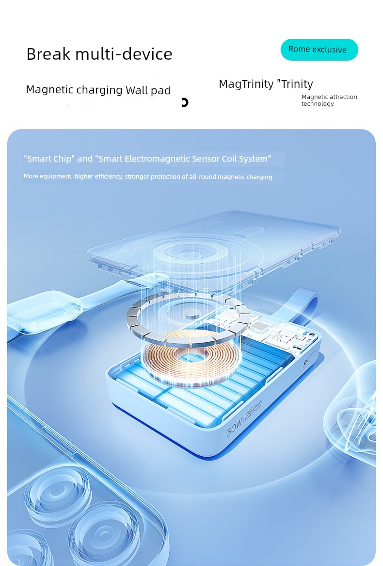 Romoss Power Bank with Cable Portable Watch Magnetic Suction
