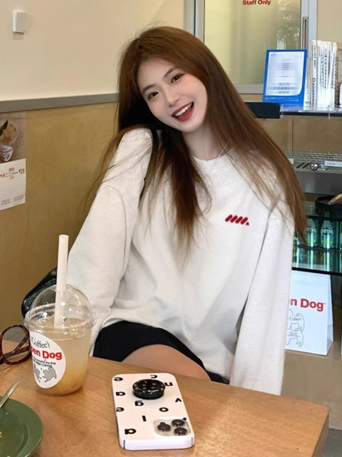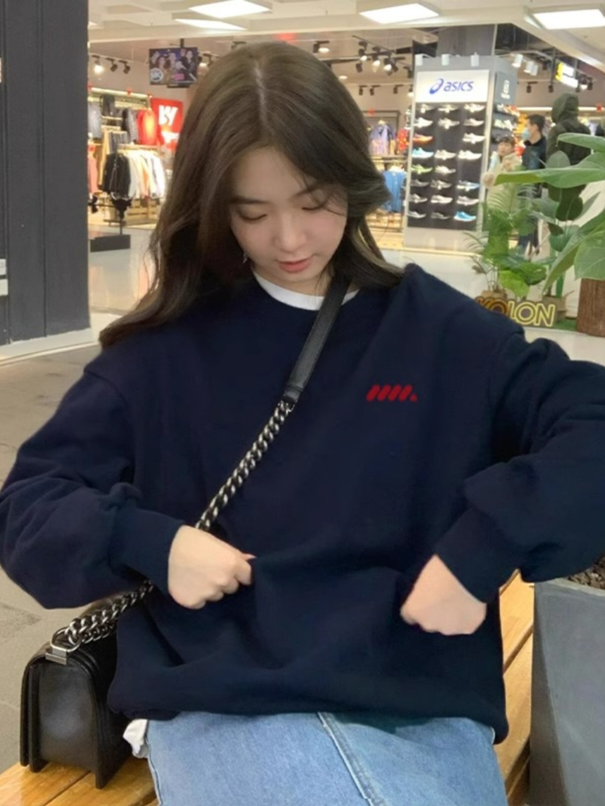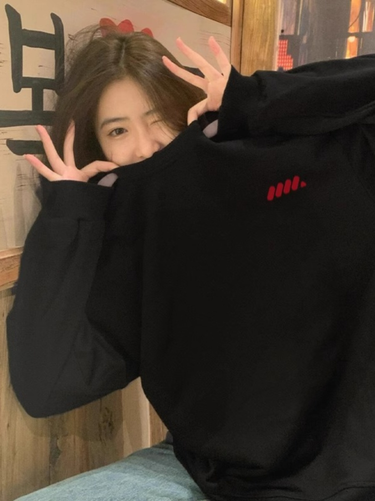 2025春秋冬新款韓版寬鬆圓領抓絨連帽衛衣女