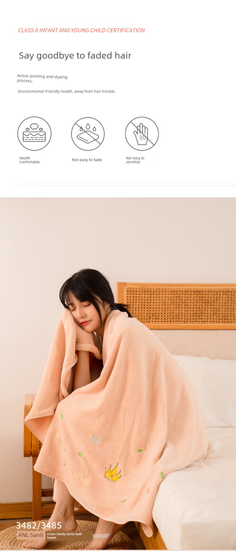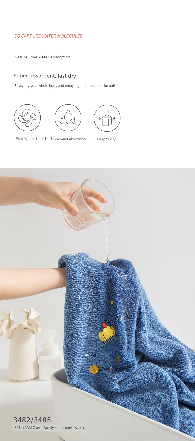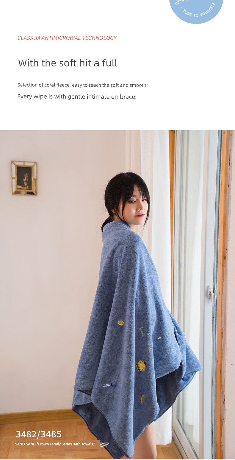 Sanli Women's Extra Large Bath Towel Pure Cotton Soft Water-Absorbing