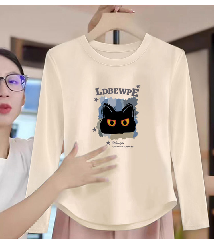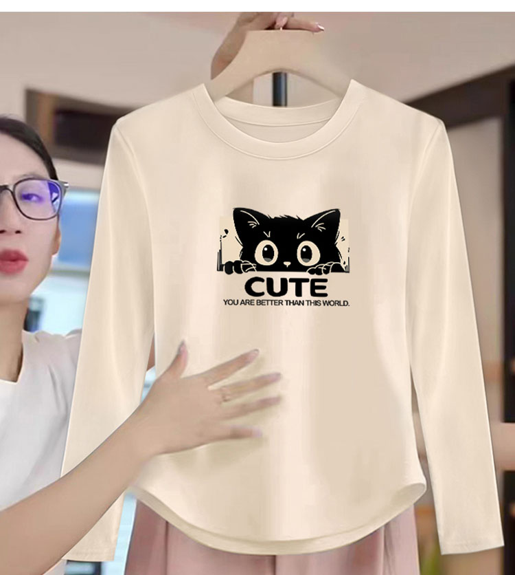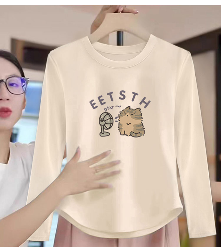 Shoulder Round Neck Long Sleeves T-shirt Female Fall and Winter New Arrival Dralon Thickened Asymmetrical Short Inner Wear Slim Looking Fashion Tops