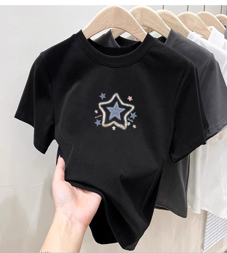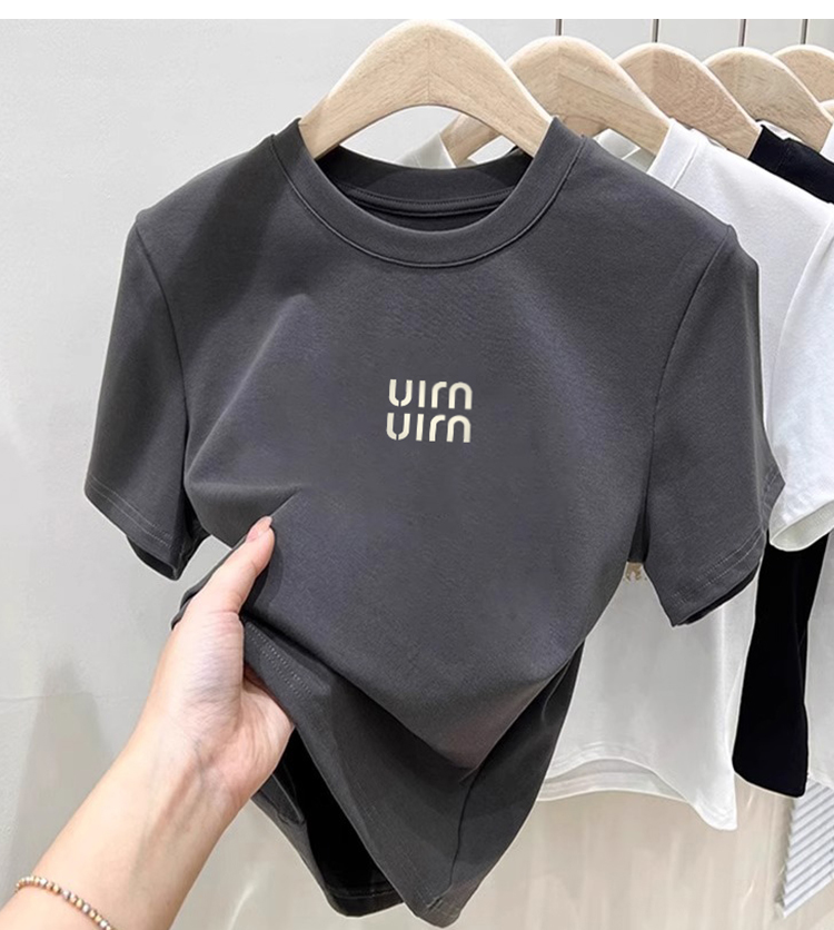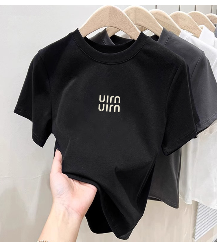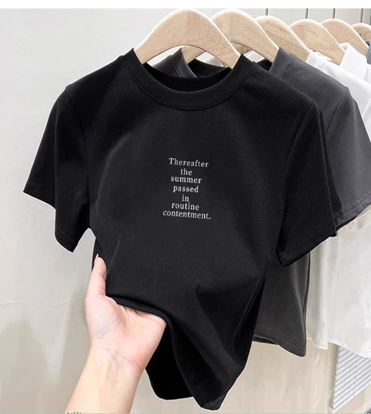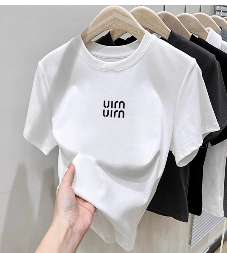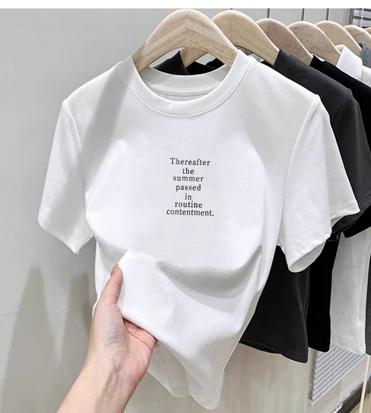 Shoulder T-Shirt Women's Summer 2025 New Arrival Minimalist Short Letters White Pure Cotton Short-Sleeved Silm T-shirt Tops