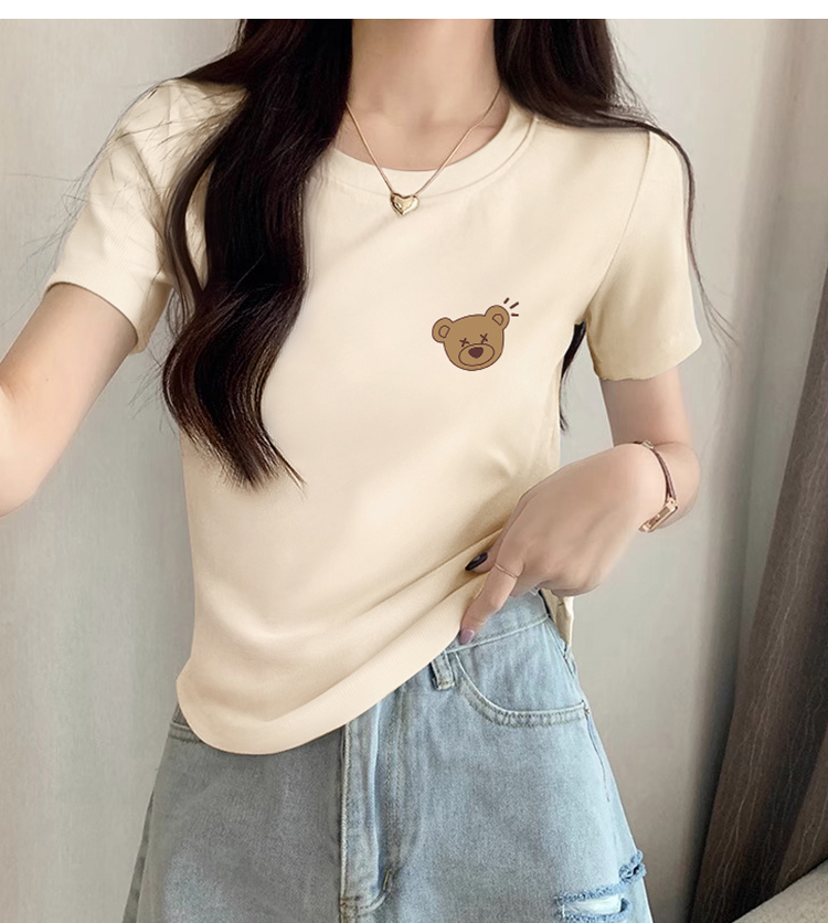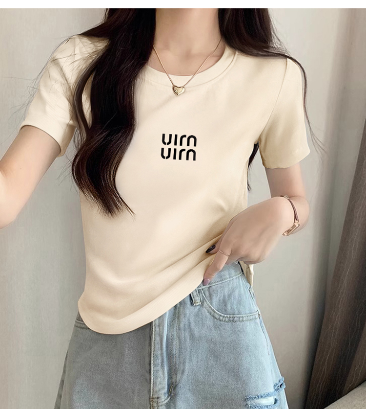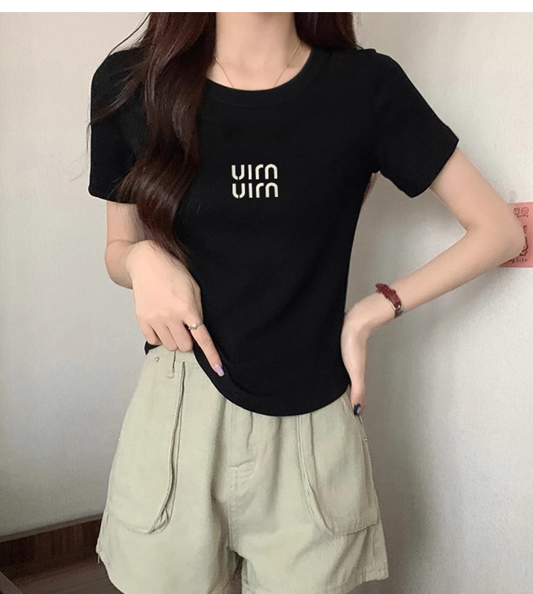 Shoulder White Short Sleeve T-Shirt Women's Summer New Arrival Slim Looking Silm round Neck Cotton Half Sleeve Bottoming Shirt Top Tide