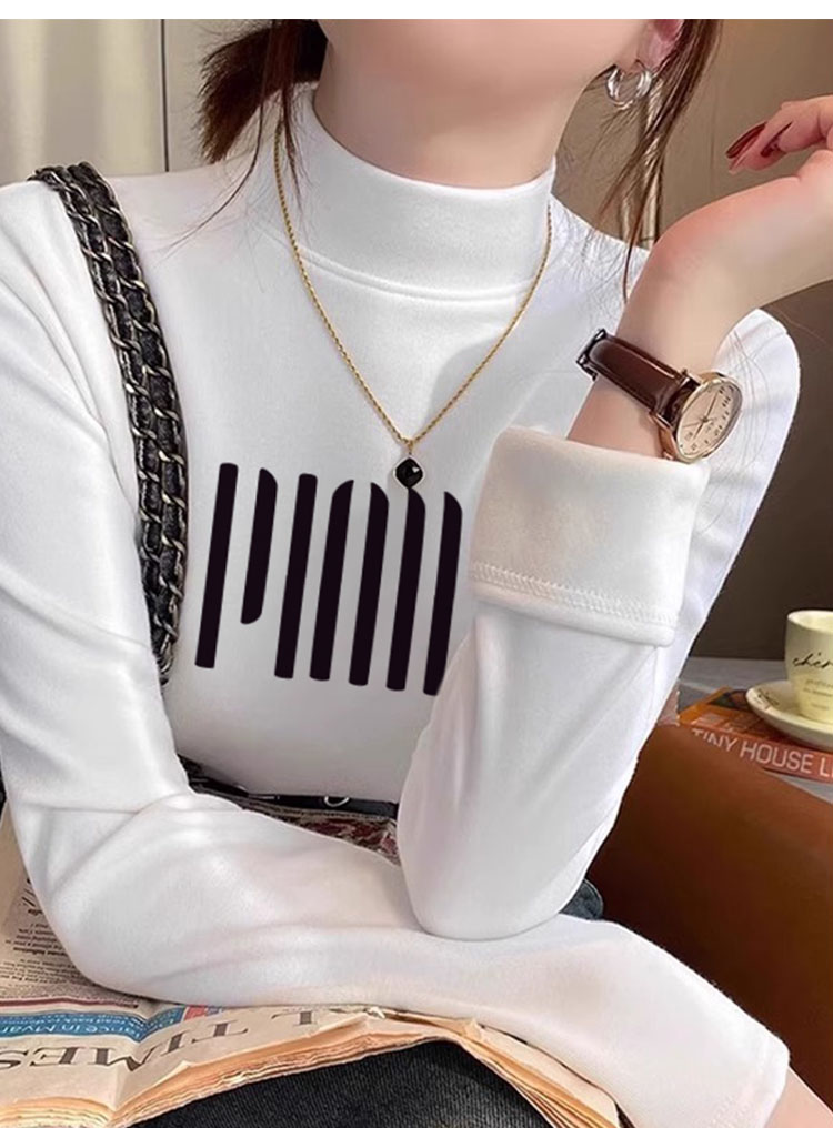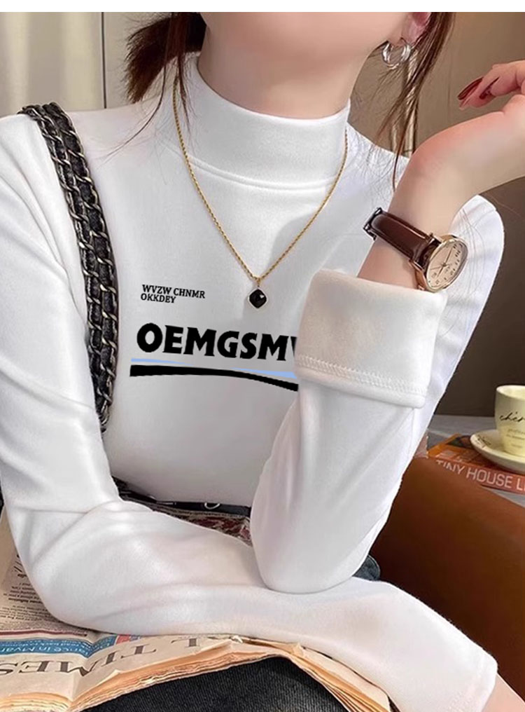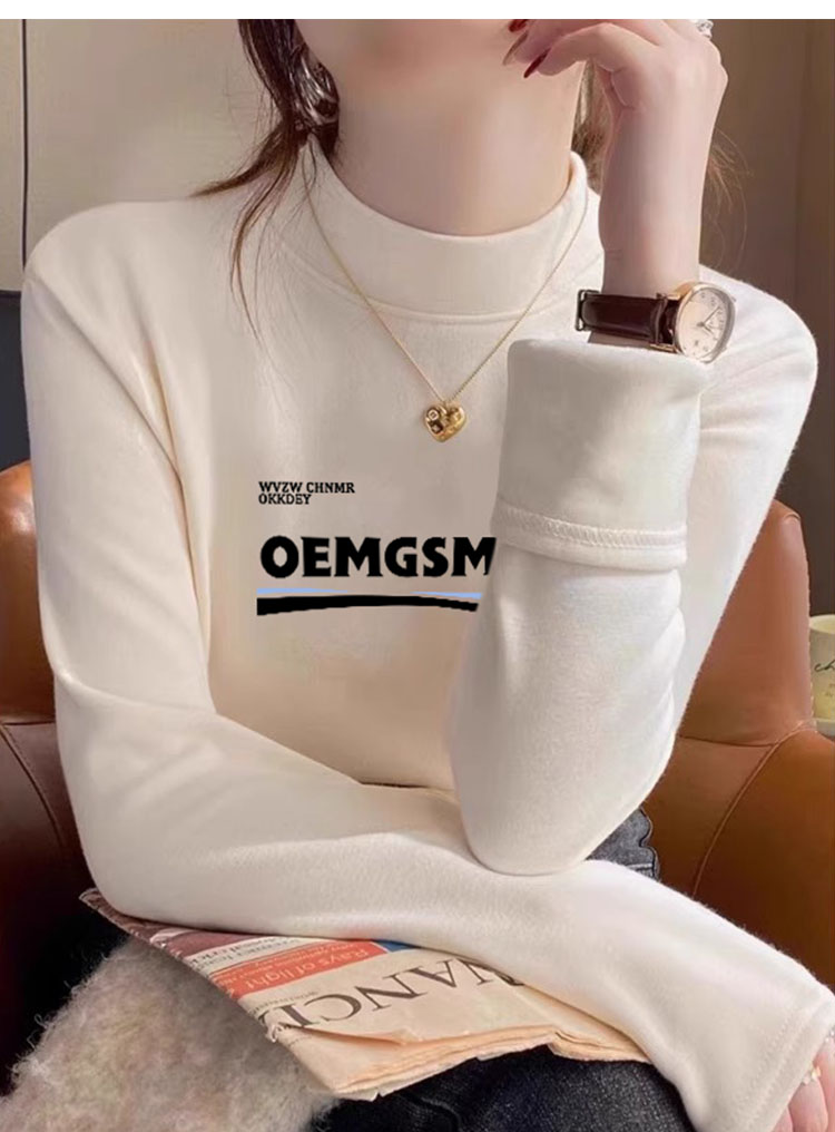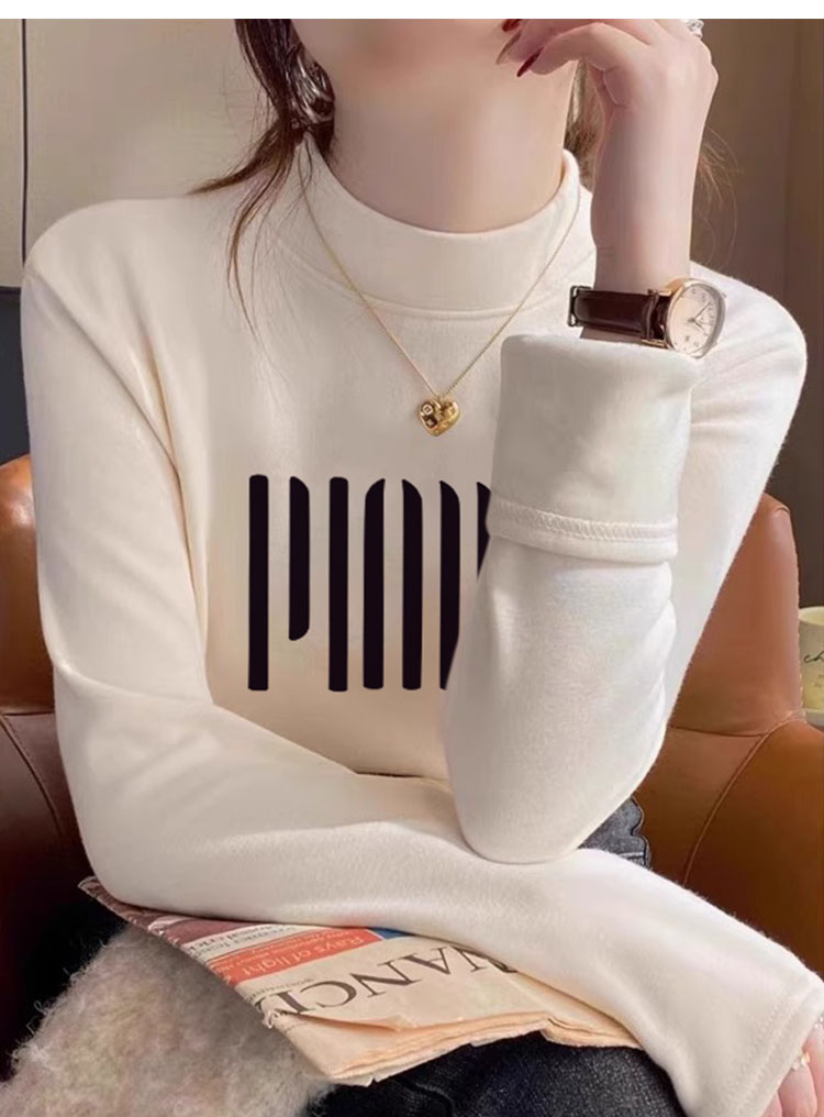 Small Stand-up Base Shirt Women's Inner Fall and Winter Cream Color Dralon Long Sleeves T-Shirt Bandage Dress Half Turtleneck Silm Tops