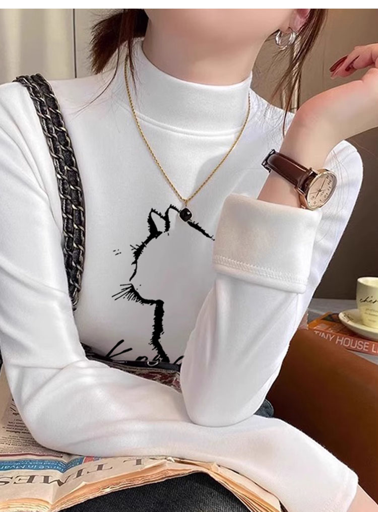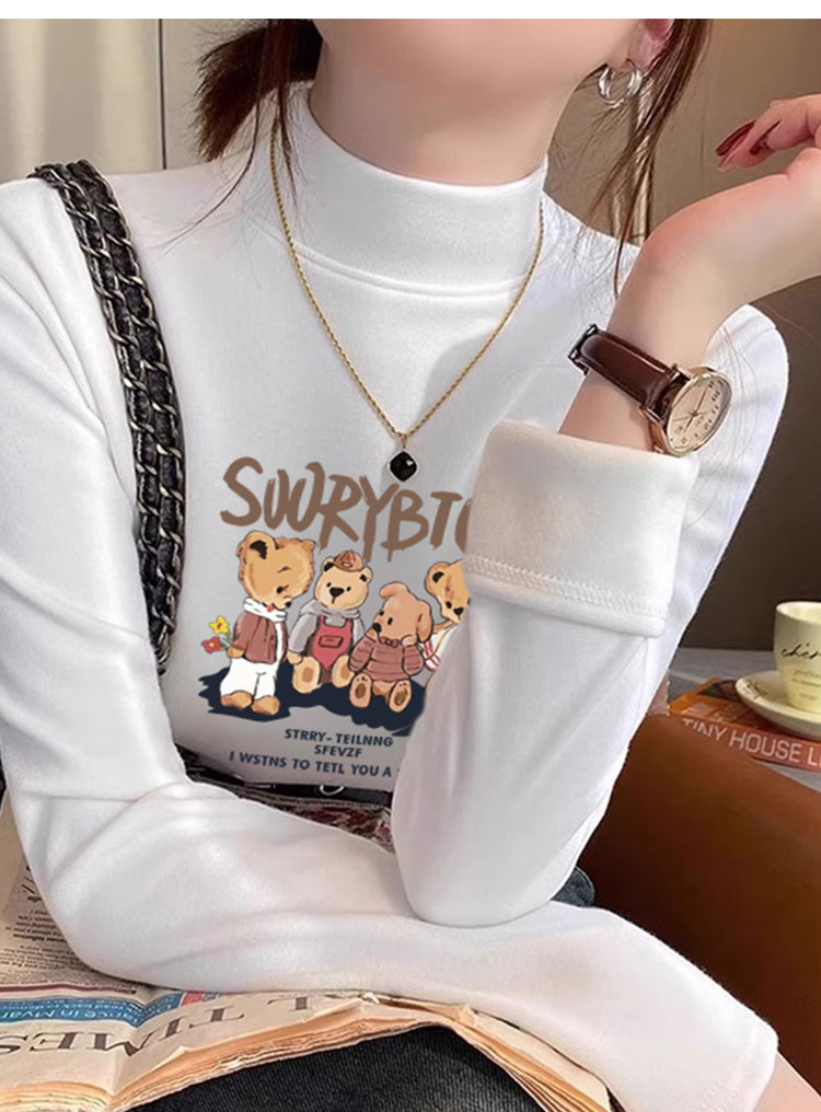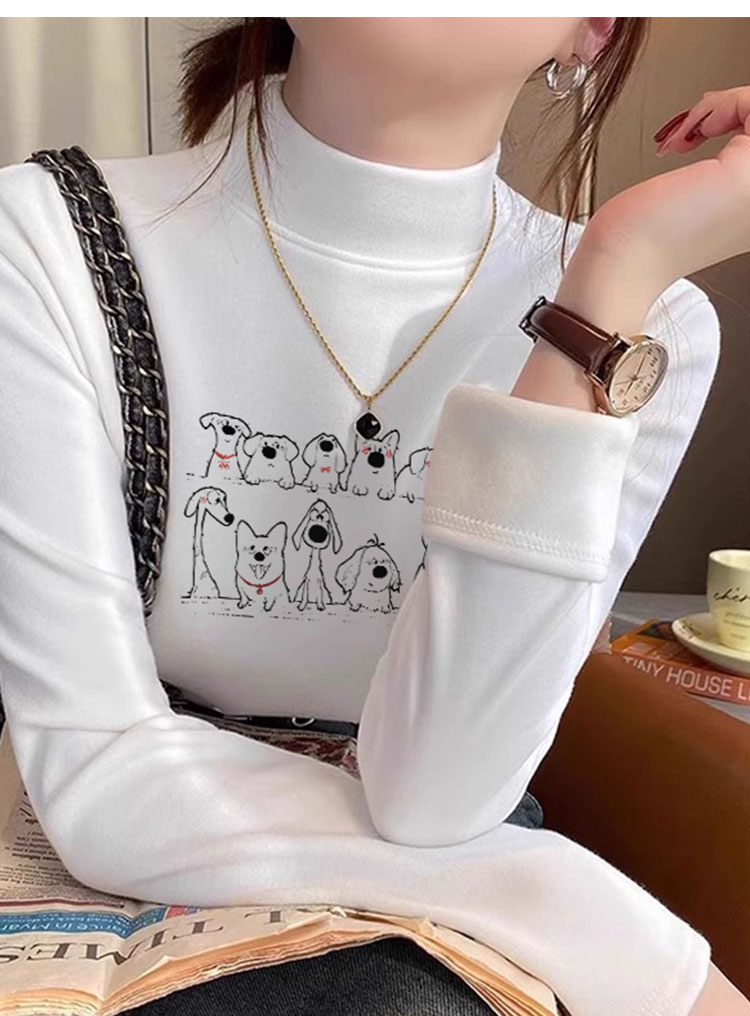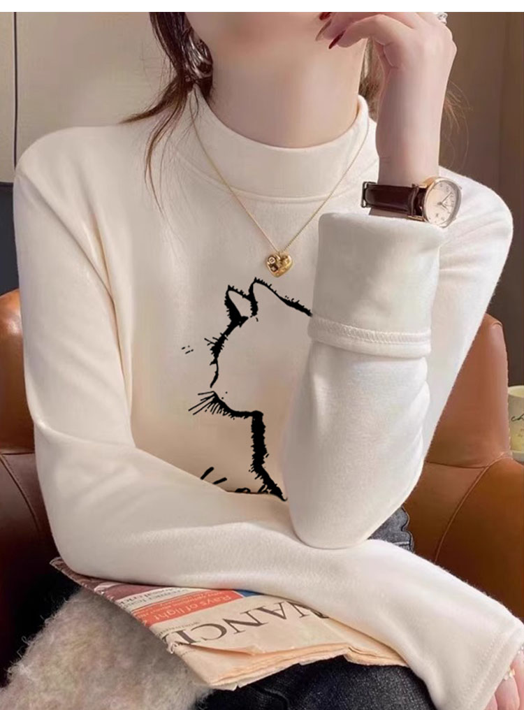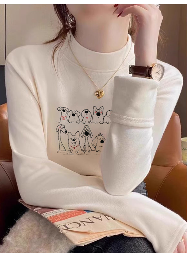 Small Stand-up Base Shirt Women's Inner Fall and Winter Cream Color Dralon Long Sleeves T-Shirt Bandage Dress Half Turtleneck Silm Tops
