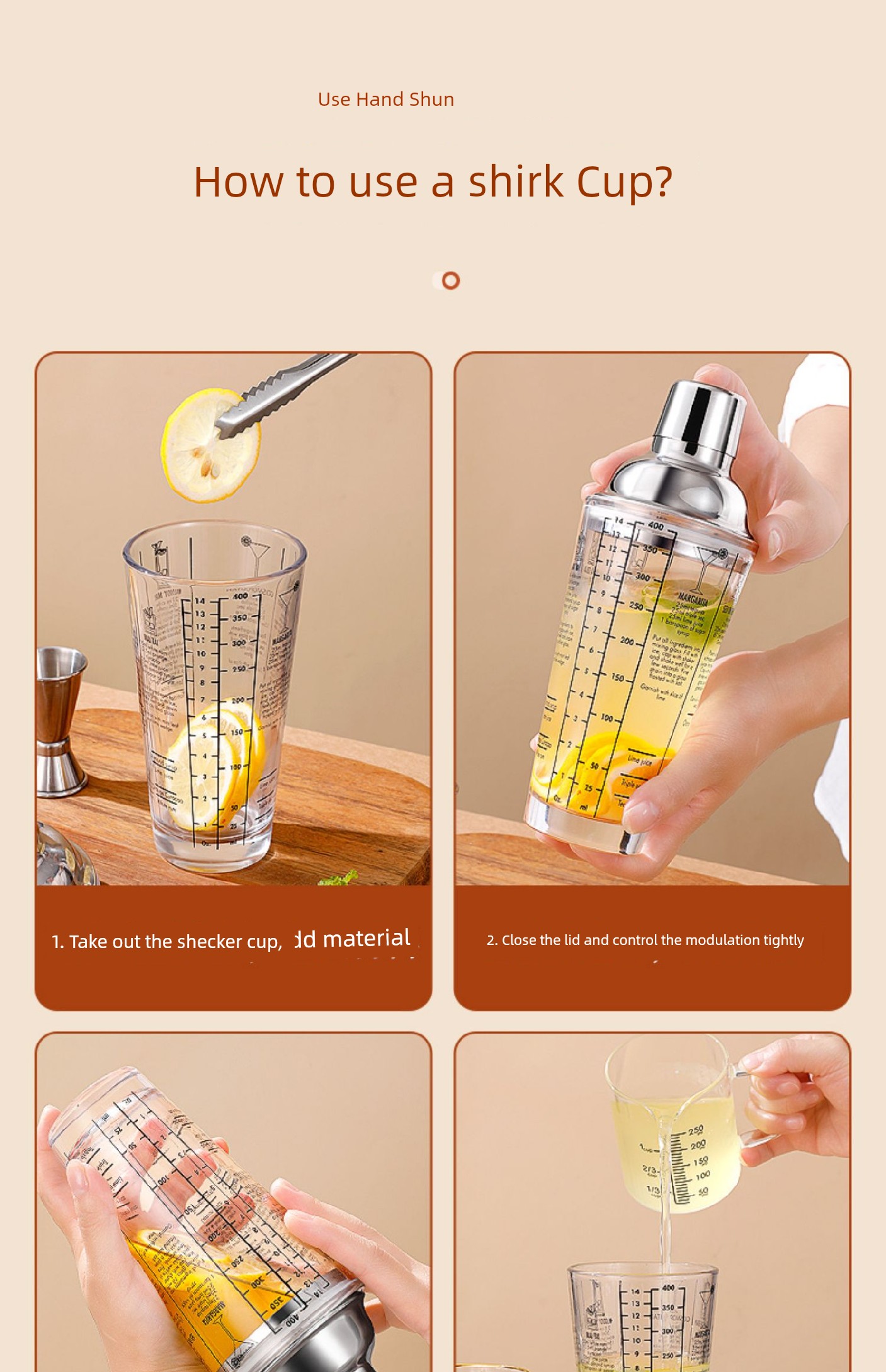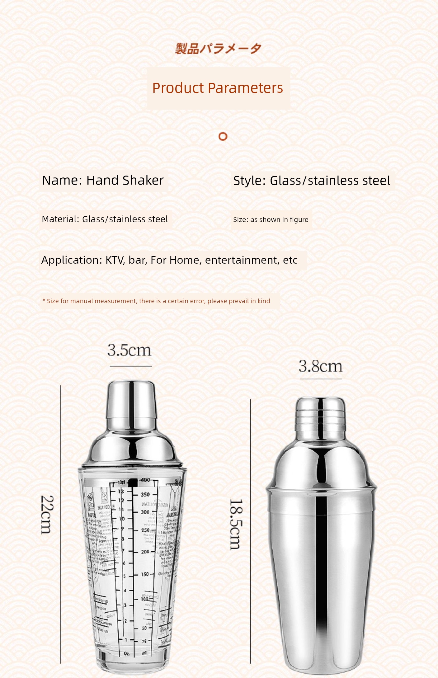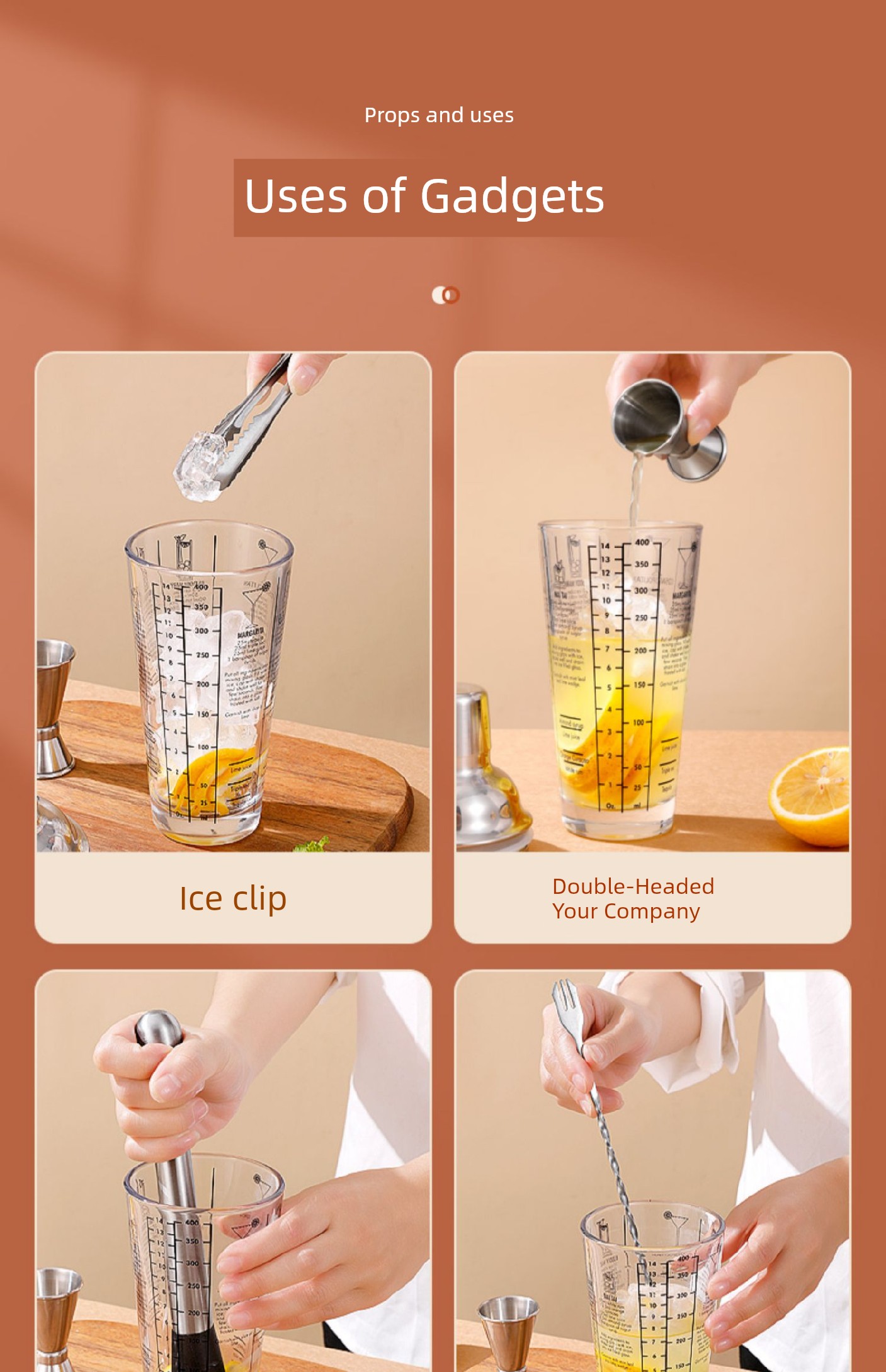 Stainless Steel Bartender Glass Shaker Cocktail Shaker Suit Mixing Glasses Hand Tool Entry Set