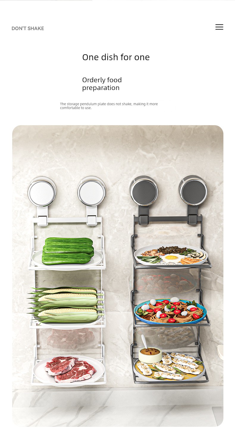 Suction Cup Kitchen Storage Rack 2024 Foldable Multi-Layer Side Dish Plate Wall-Mounted Multi-Functional Storage Rack