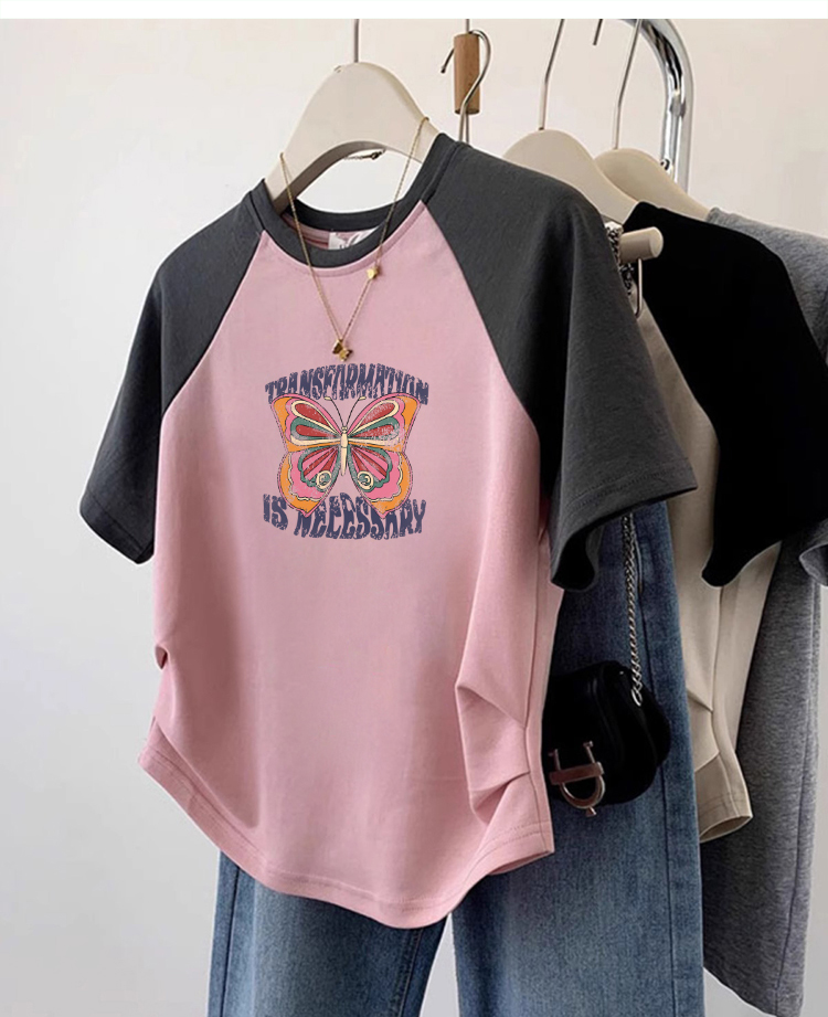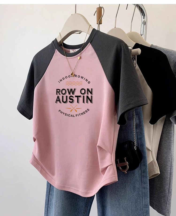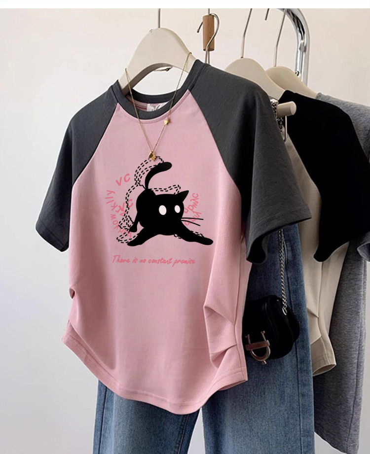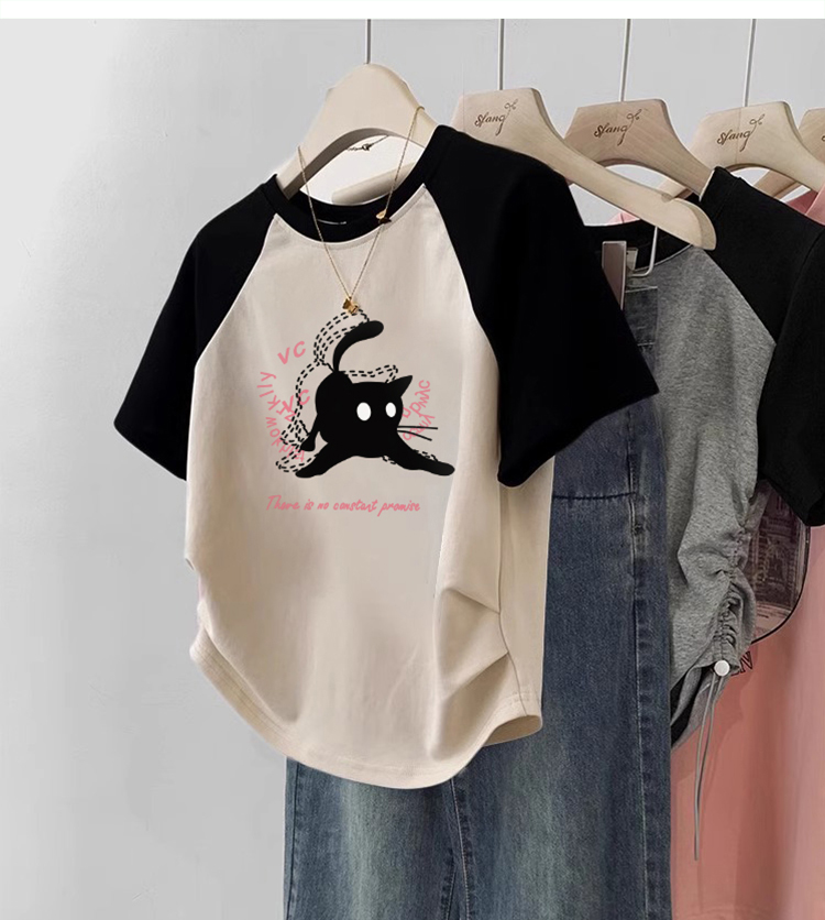 Summer European Goods round Neck Fashion Western Style Raglan Short-Sleeved T-shirt Women's Asymmetrical Hem Pleated Slimming Short Top