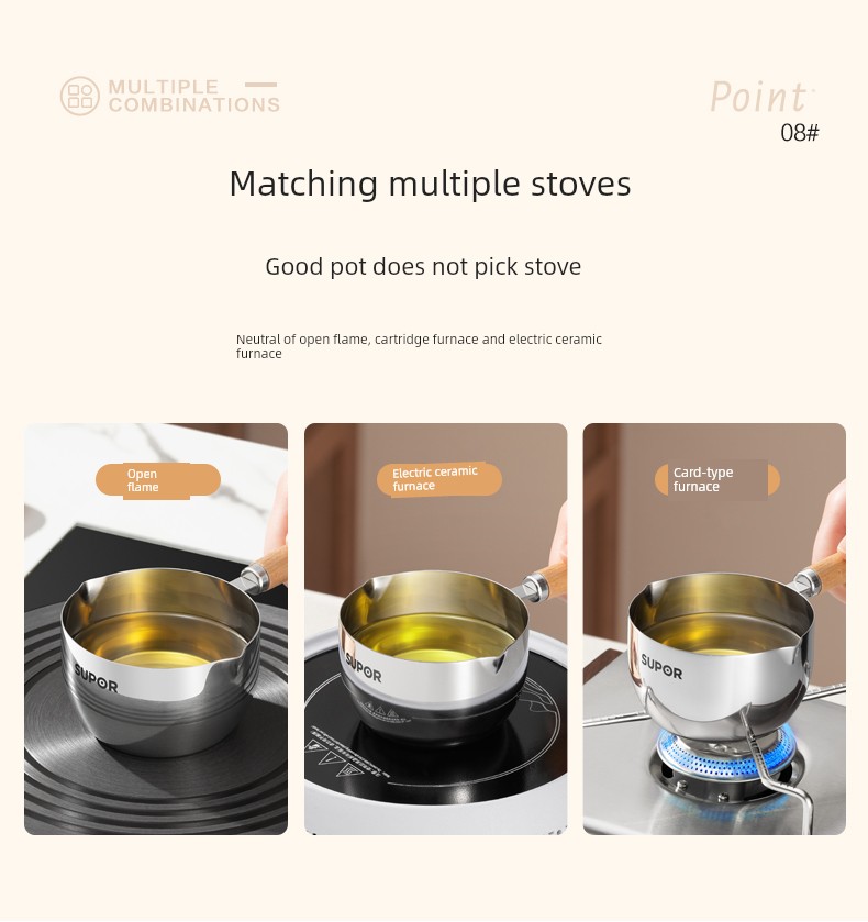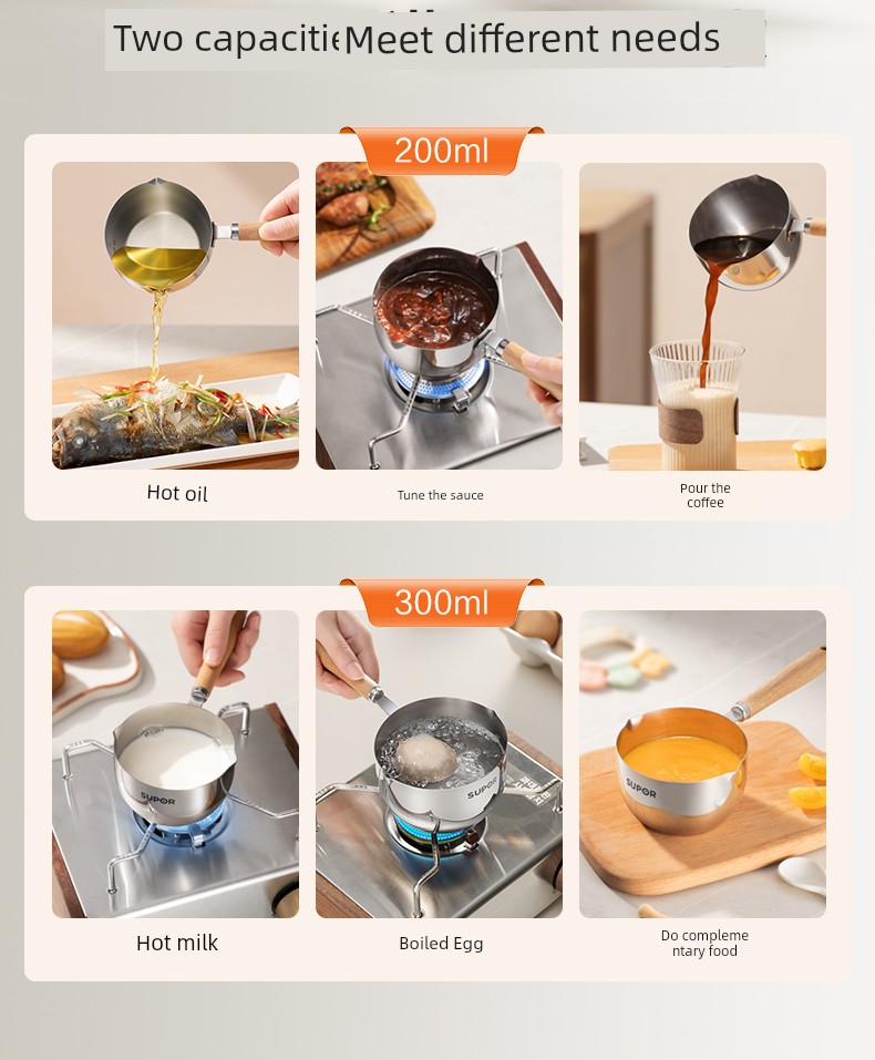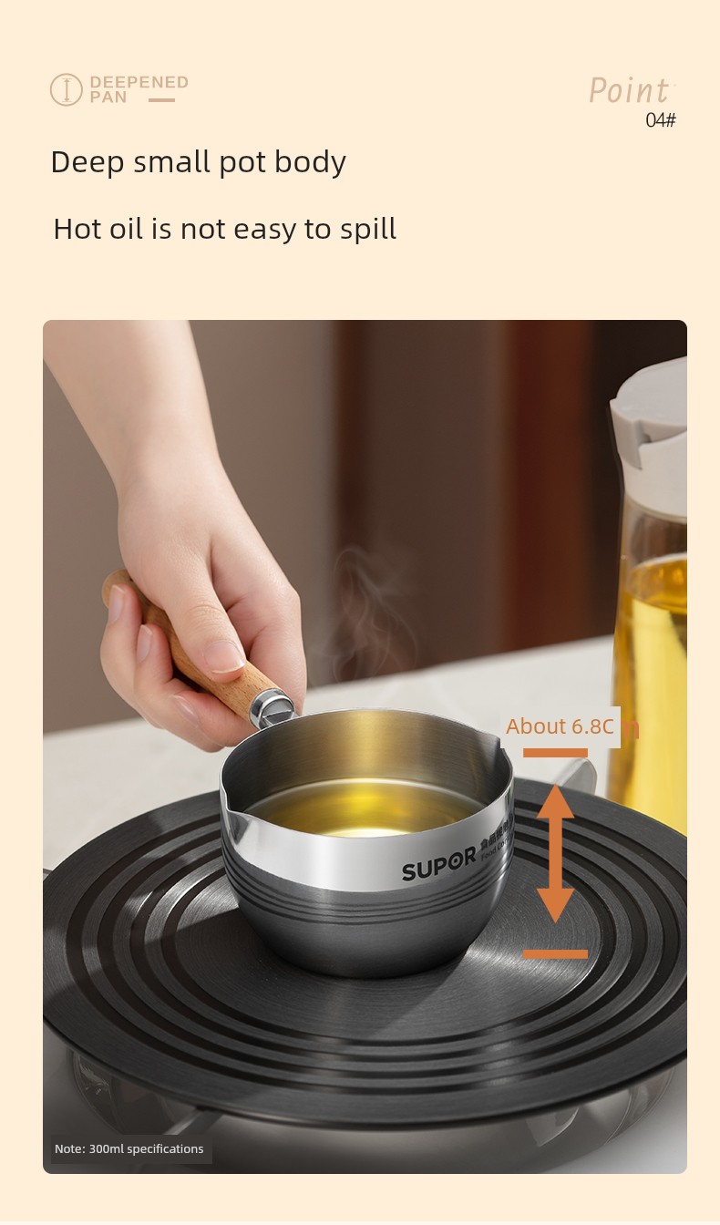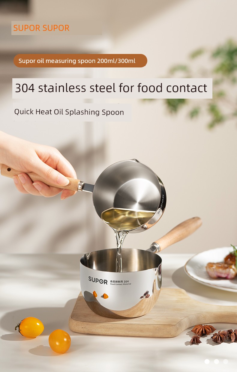 Supor Multi-Functional Oil Pouring Small Pot Stainless Steel Mini Hot Oil Pouring Pot Drip Oil Spoon Handy Gadget