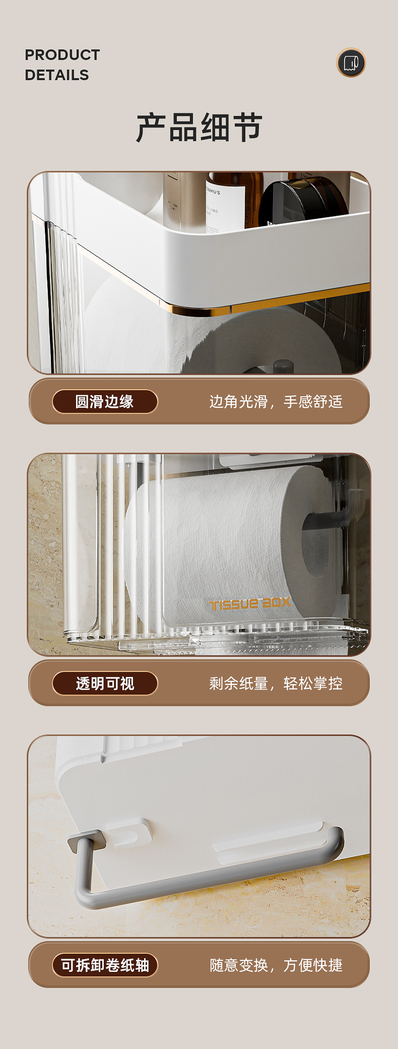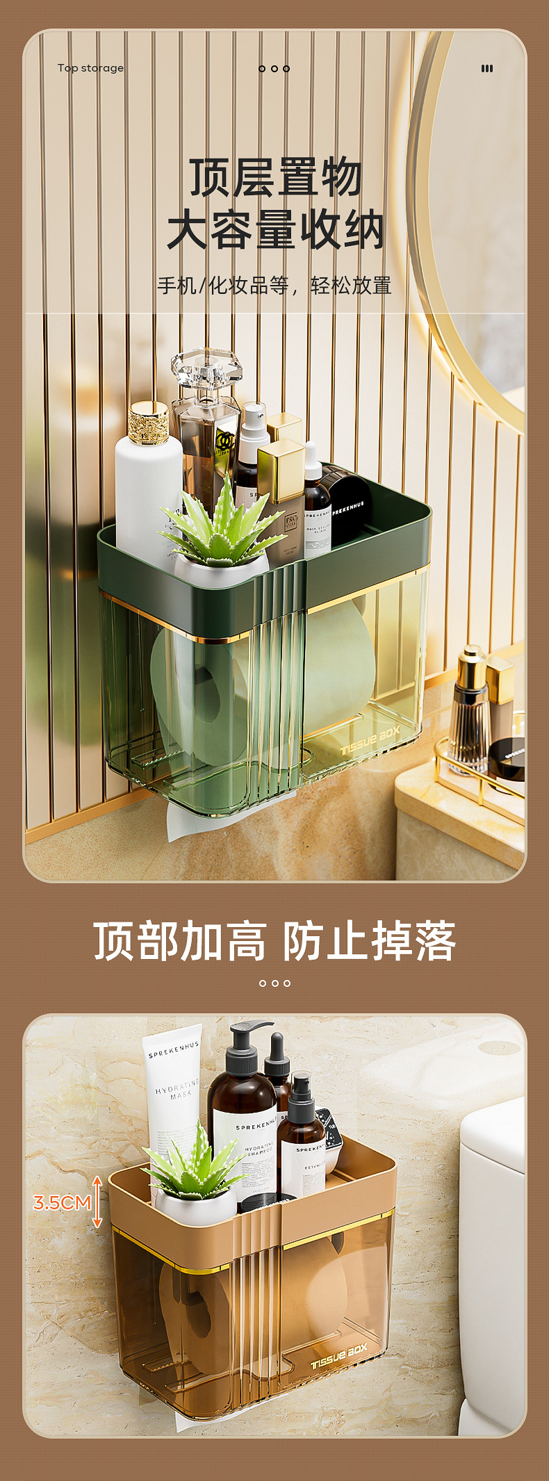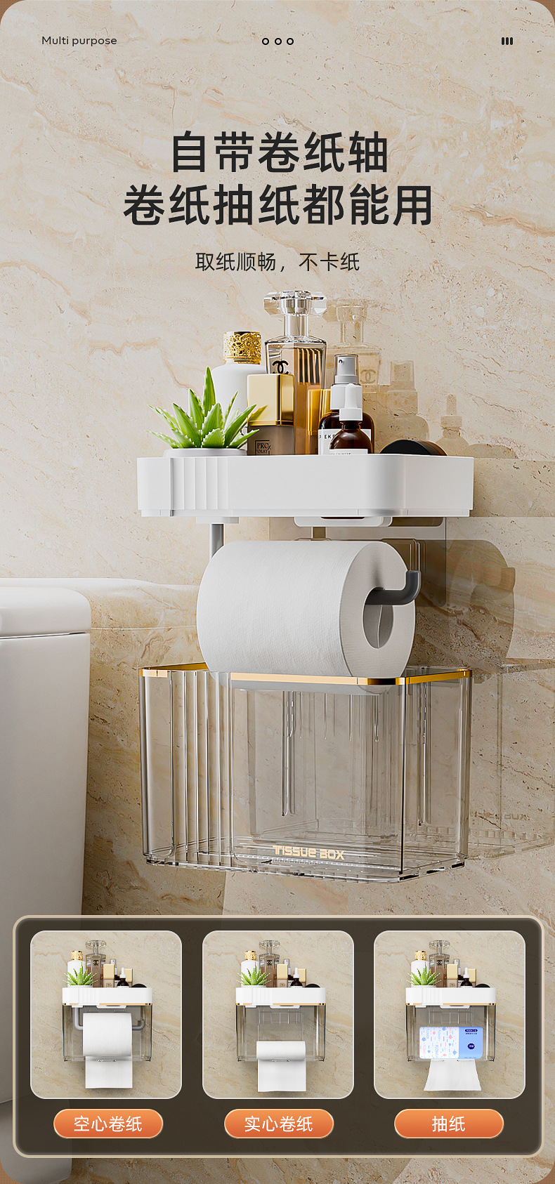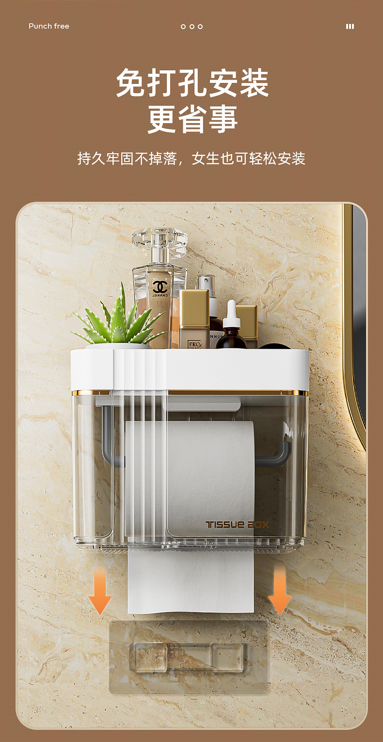 Toilet Paper Box Toilet Tissue Toilet Paper Storage Rack Toilet For Home Punch-Free Creative Waterproof Tissue and Toilet Paper Dispenser