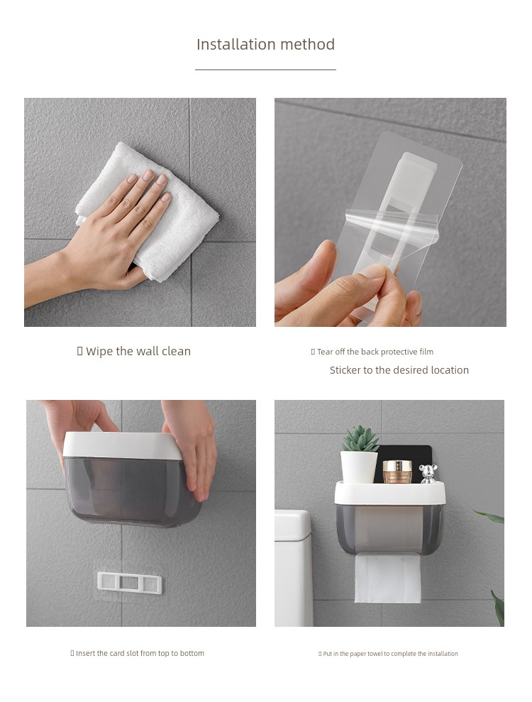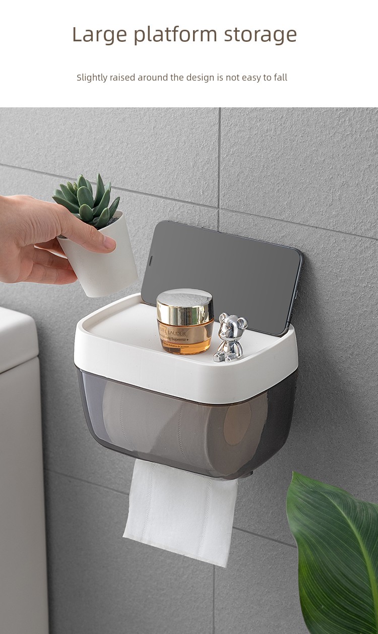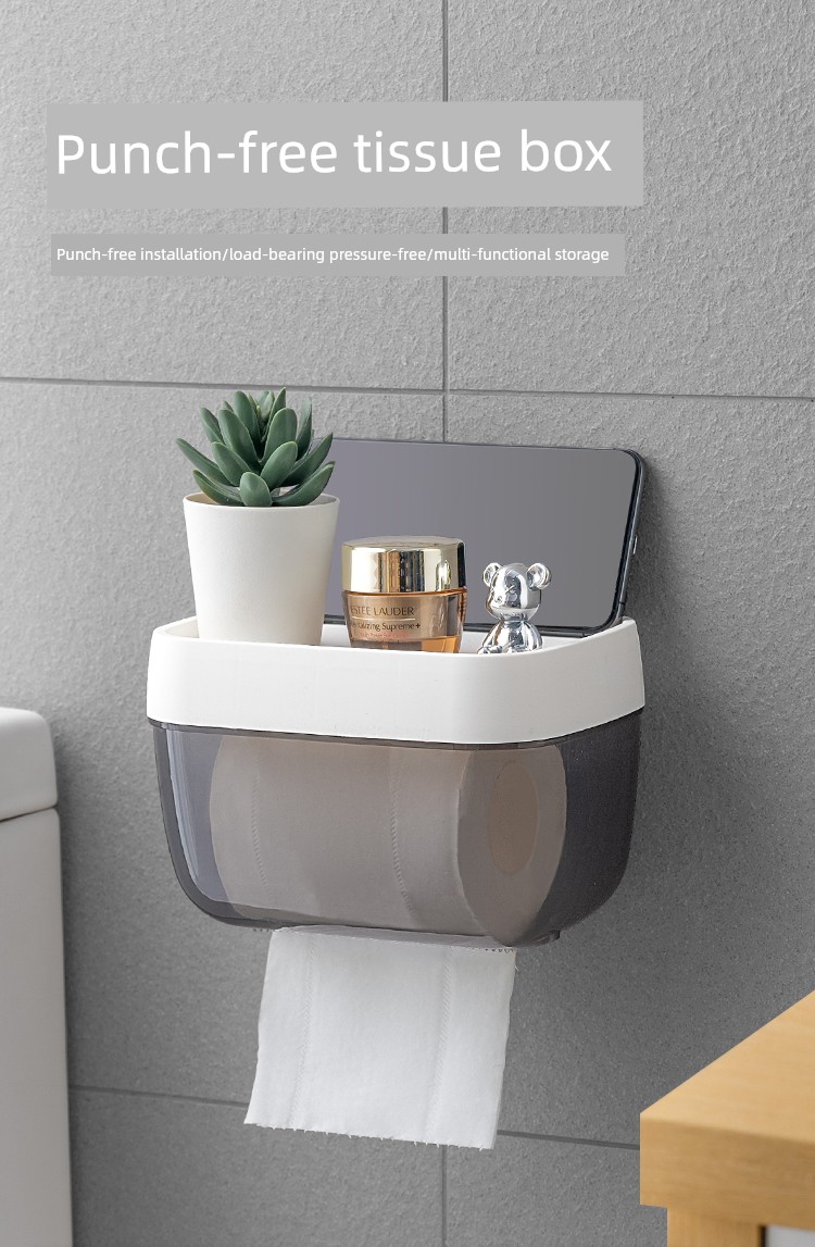 Toilet Toilet Paper Box Toilet Tissue Box Paper Extraction Box Roll Holder Waterproof Toilet Paper Rack Wall Hanging Punch-Free