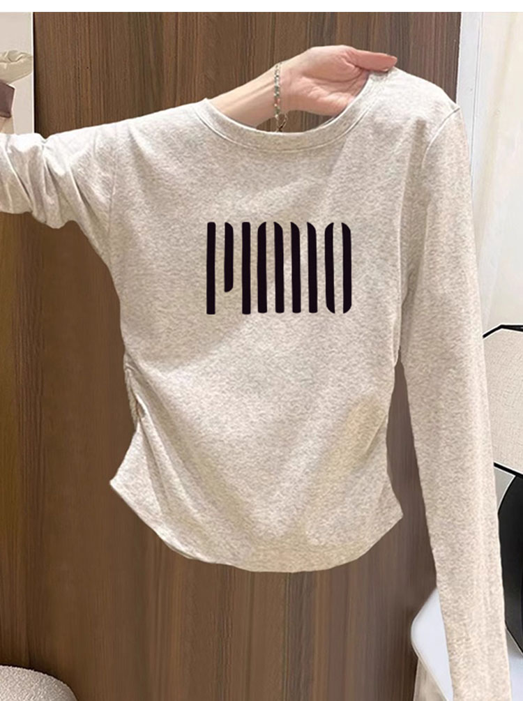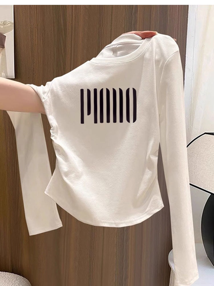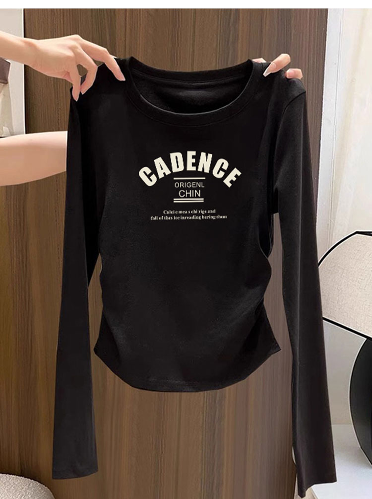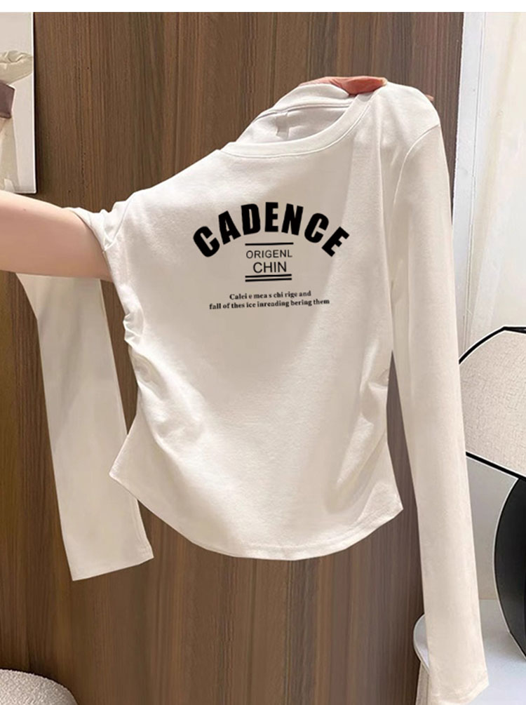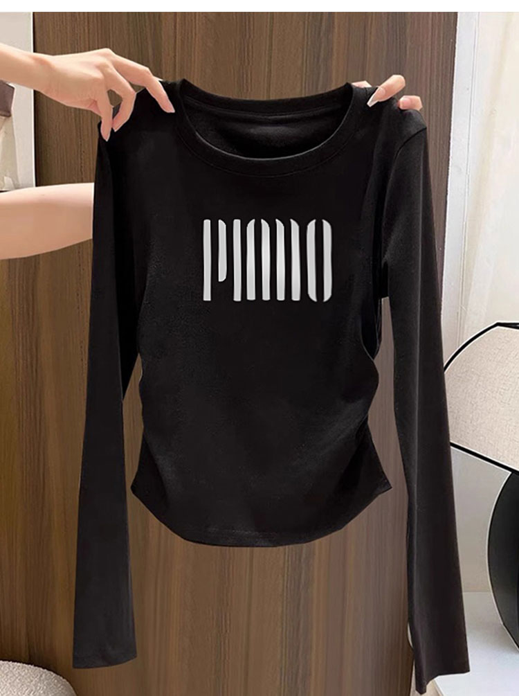 Women's Clothing in 13 Lines Autumn and Winter Shoulder Pure Cotton Long Sleeves T-Shirt Women's Short Silm Bottoming Shirt Inner Wear Pleating Tops