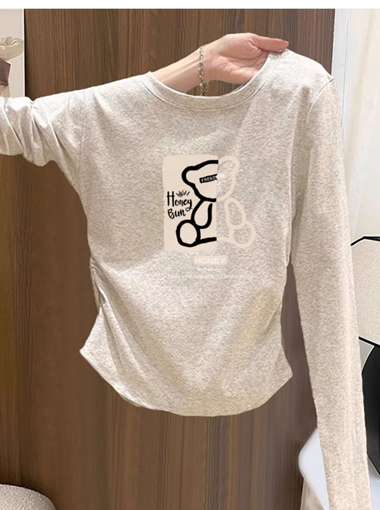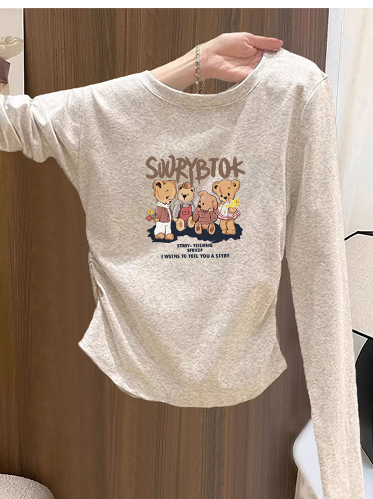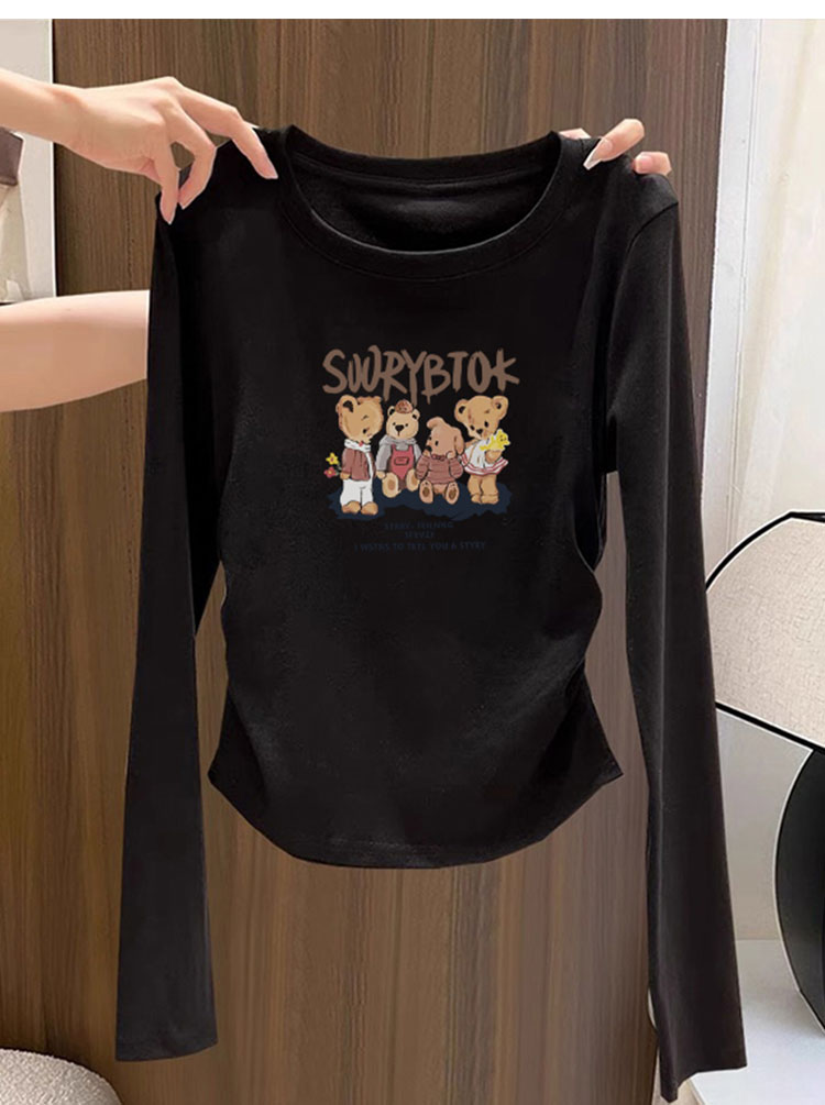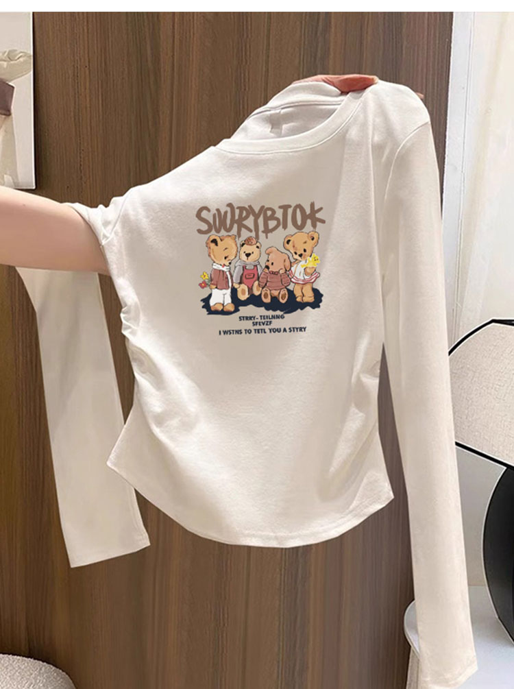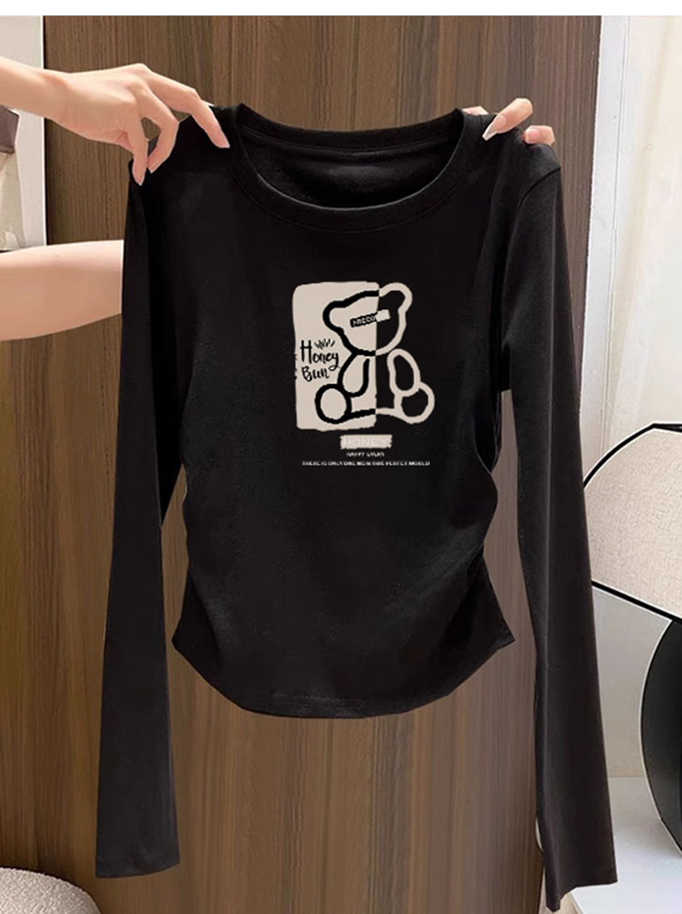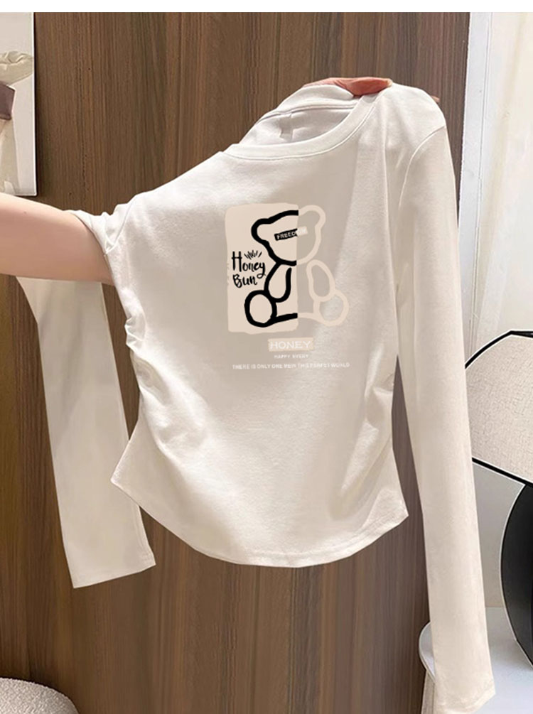 Women's Clothing in 13 Lines Autumn and Winter Shoulder Pure Cotton Long Sleeves T-Shirt Women's Short Silm Bottoming Shirt Inner Wear Pleating Tops