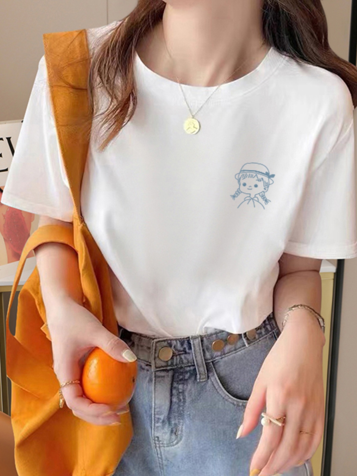 Women's Clothing Pure Cotton Short-Sleeved Shoulder T-Shirt Women's 2025 Loose Chic Minimalist Small Easiest for Match Tops Summer