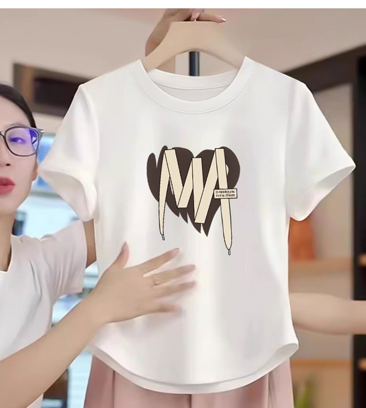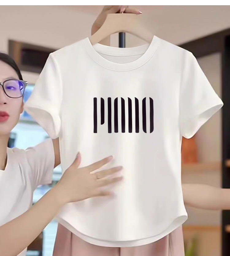 Women's Clothing Pure Cotton Shoulder Short Sleeve T-Shirt Women's Silm Slim Looking 2025 New Arrival Summer Asymmetrical Short Tops