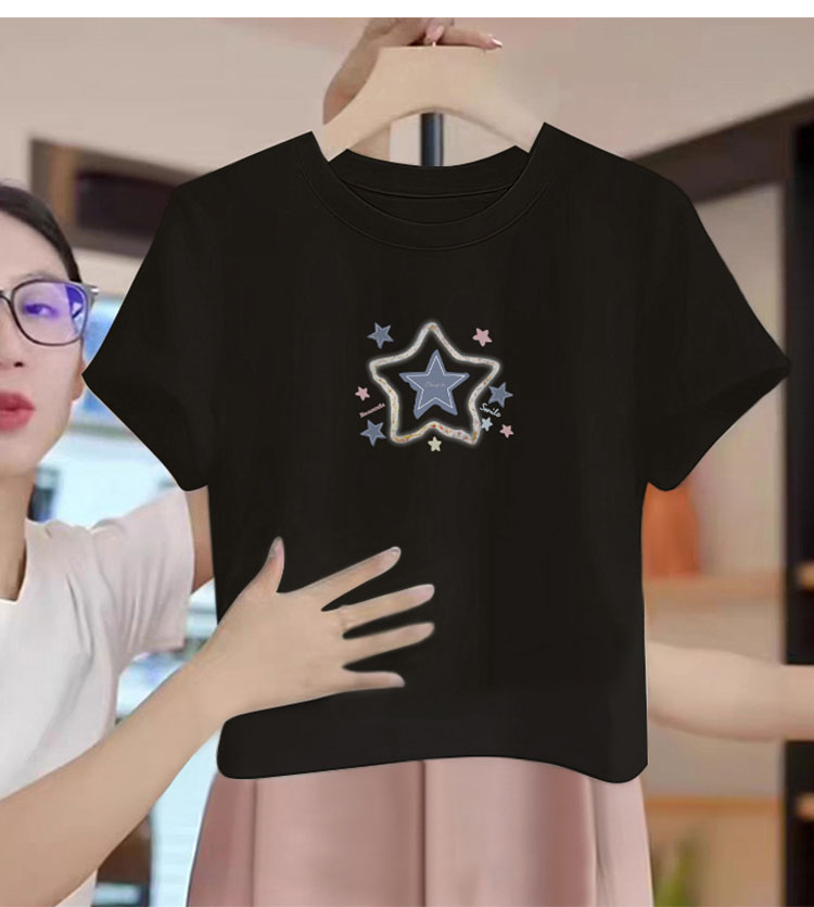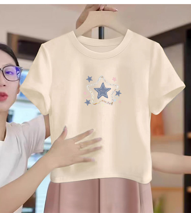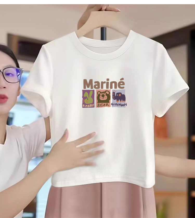 Women's Short-Sleeved White T-shirt Silm Slim Looking 2025 New Arrival Pure Cotton Short Western Style Youthful-Looking Tops