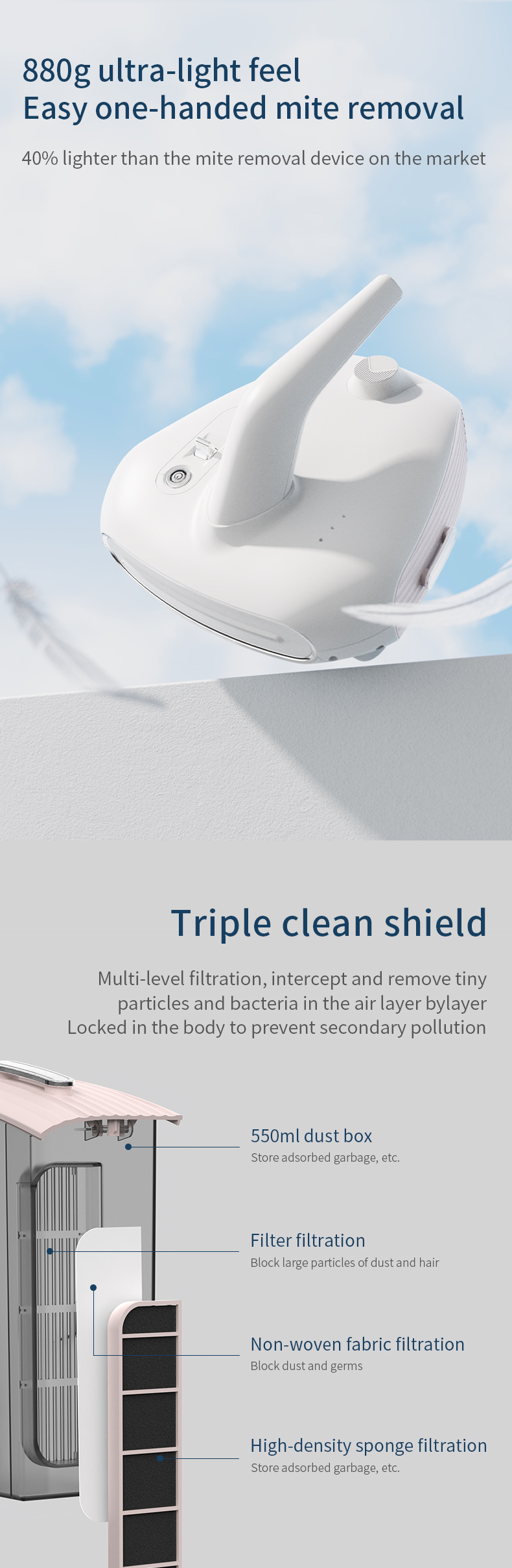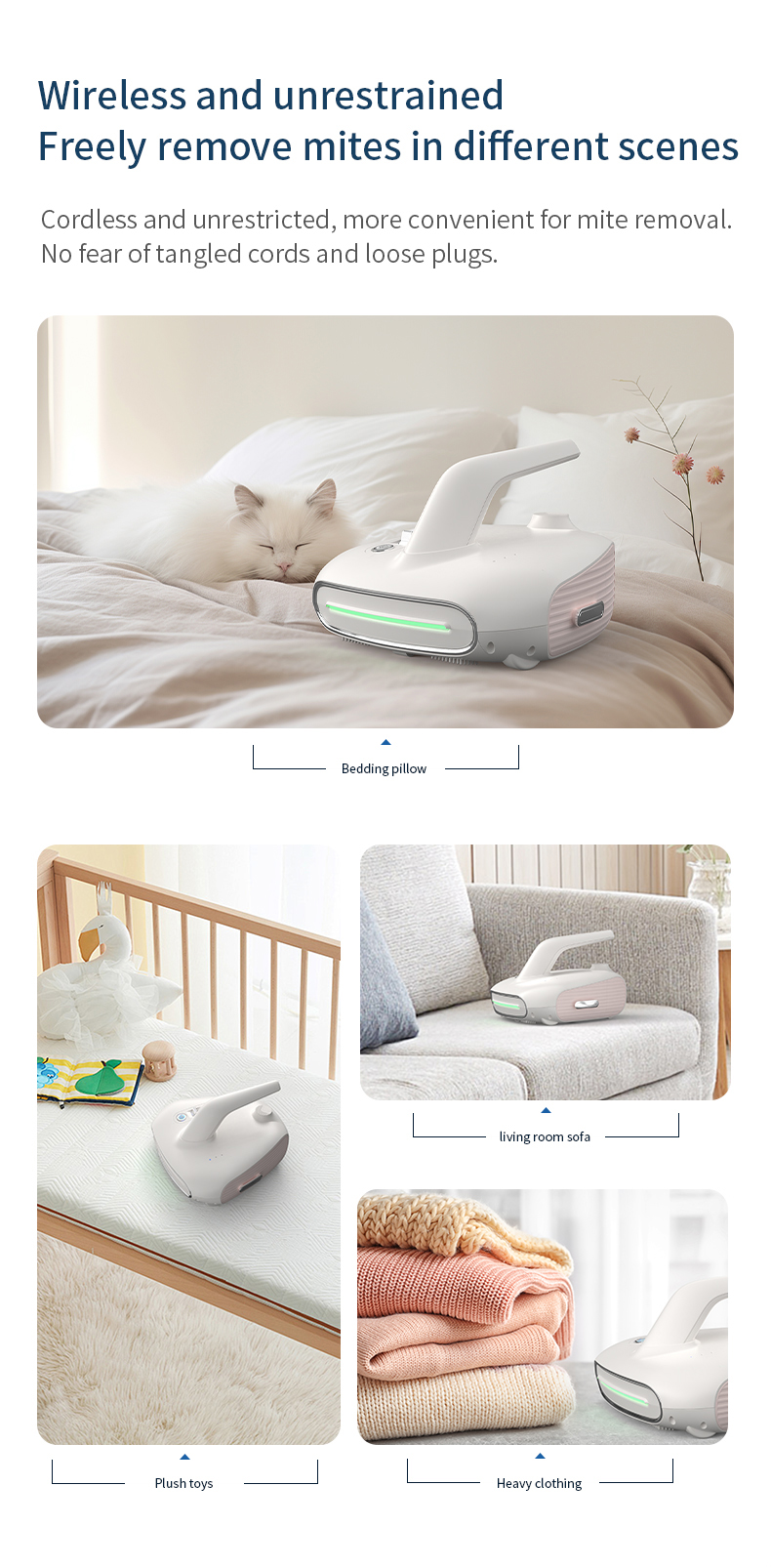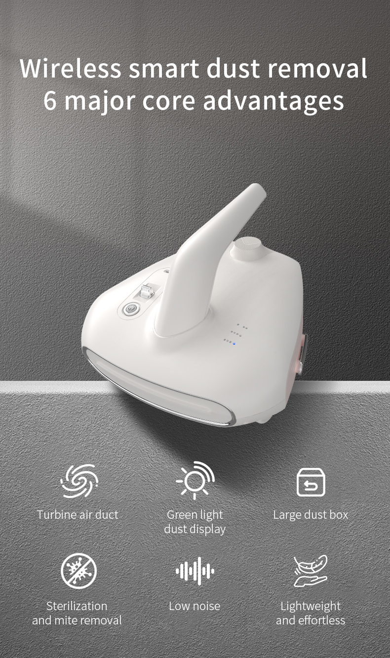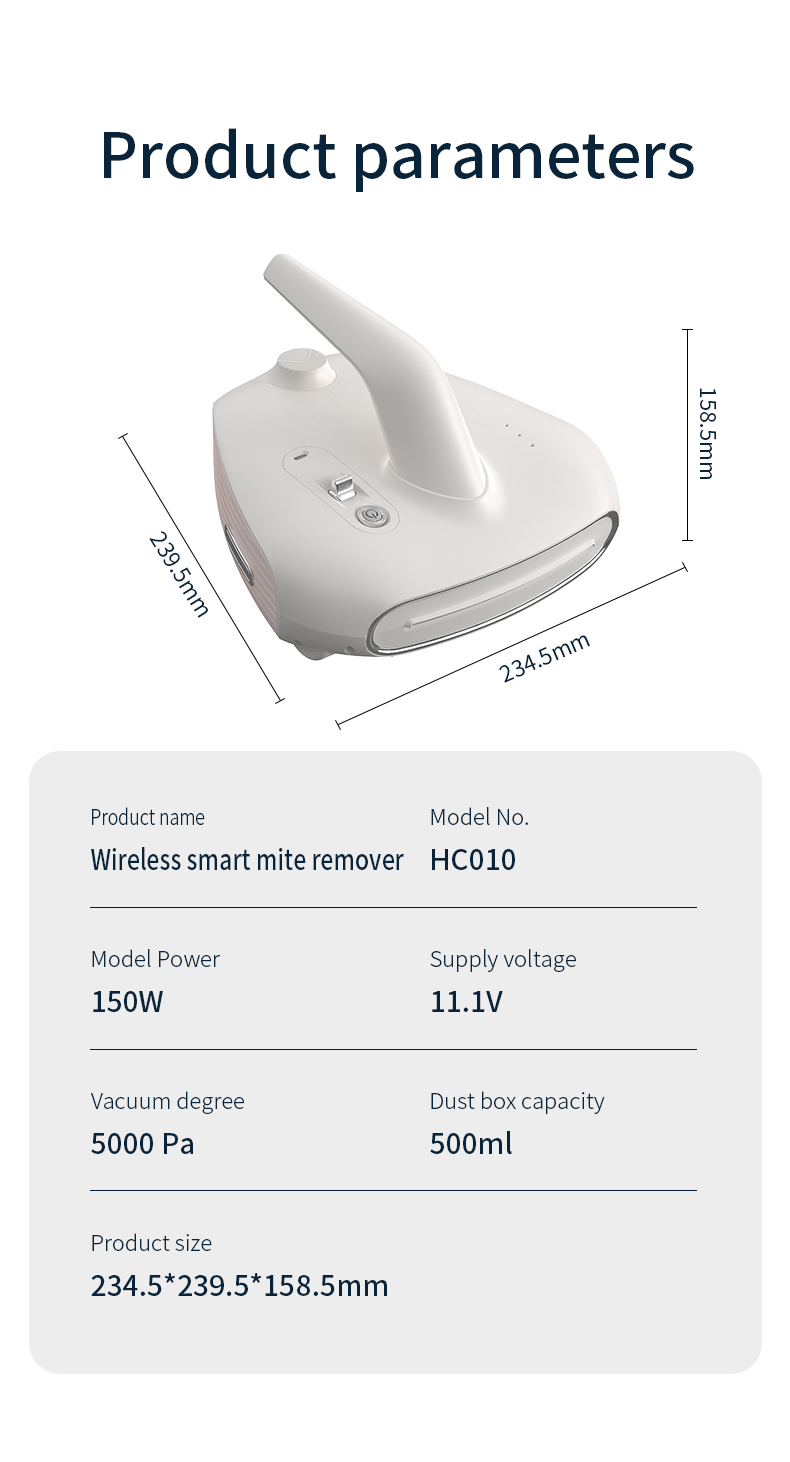 Wireless Smart Mite Removal Vacuum cleaner-150W Power, 4-5KPaSuction, 11.1v, 40-50min Runtime